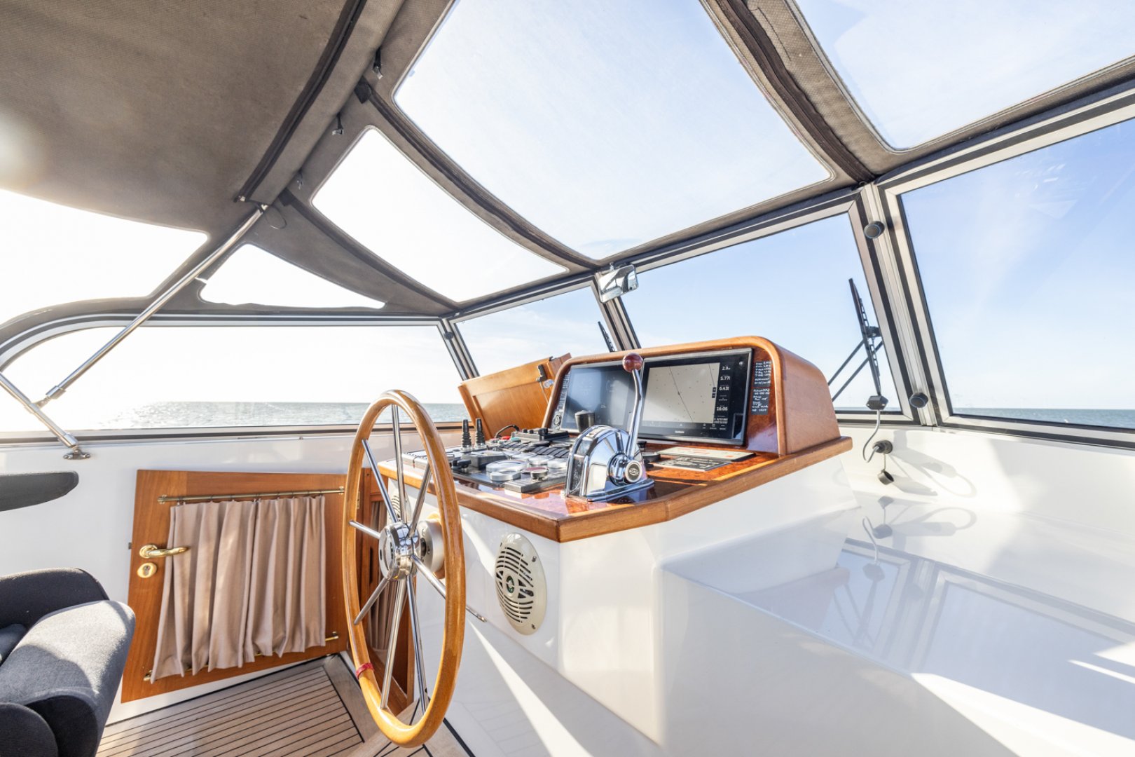 Prachtige robuuste spiegelkotter van de kwaliteitswerf Linden Jachtbouw. Rondspant gejoggeld en voorzien van stabilisatoren. Een echt all-season motorjacht vanwege de goede isolatie, dubbel glas en centrale verwarming (Kabola).