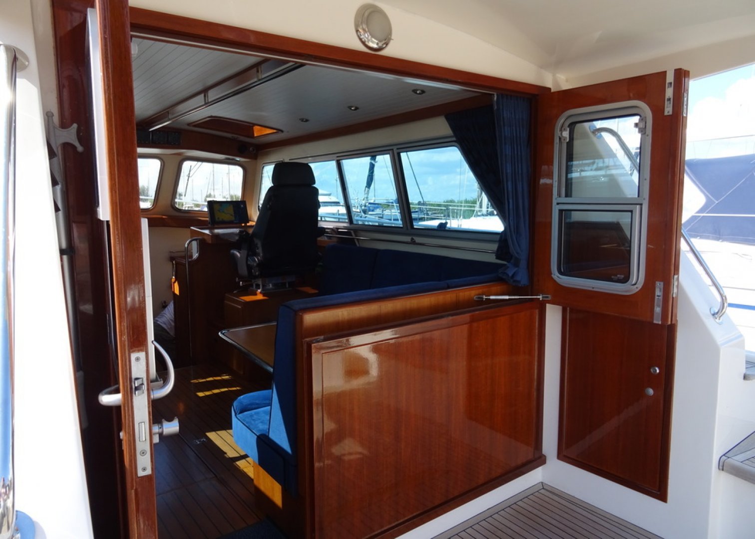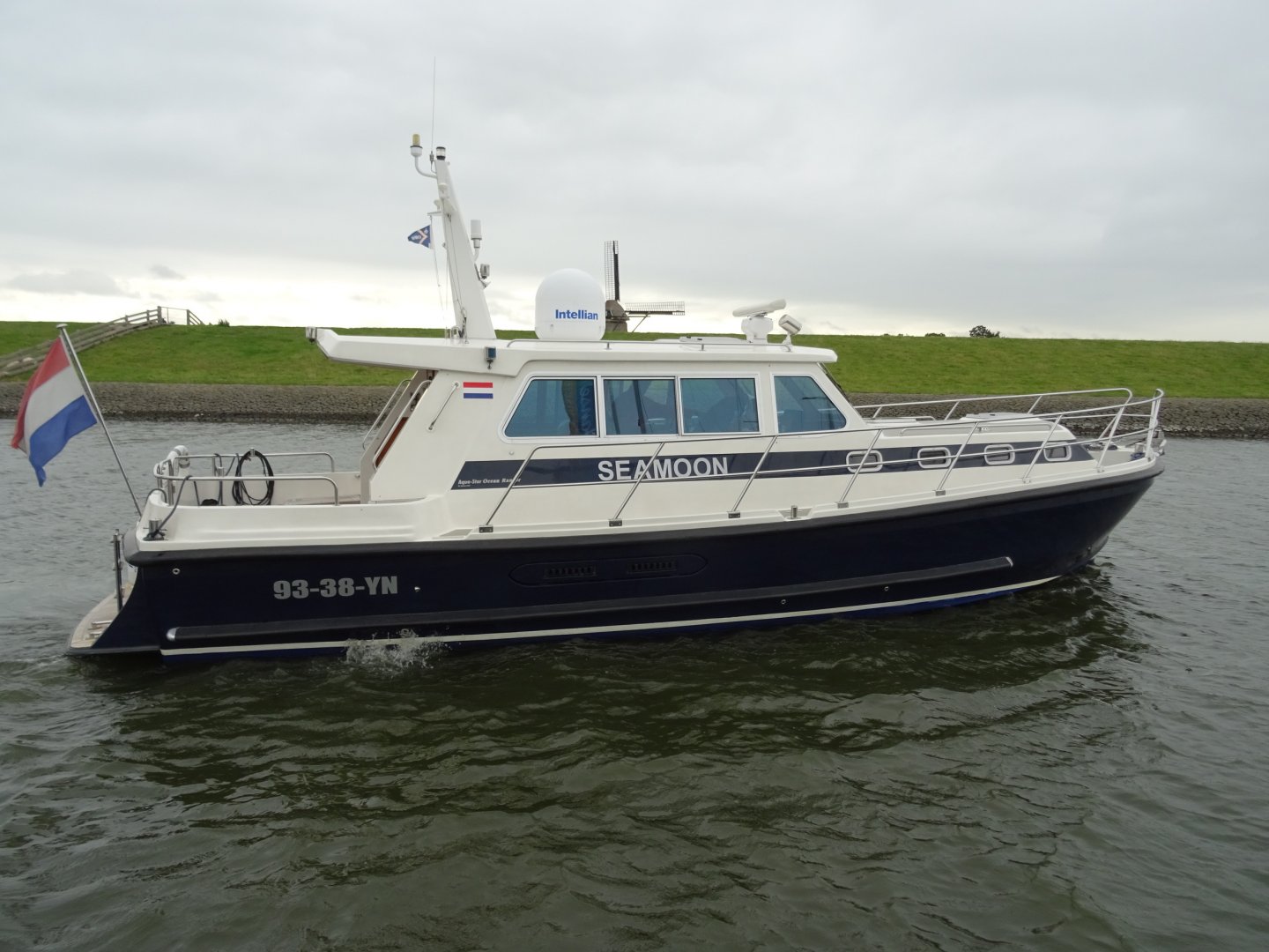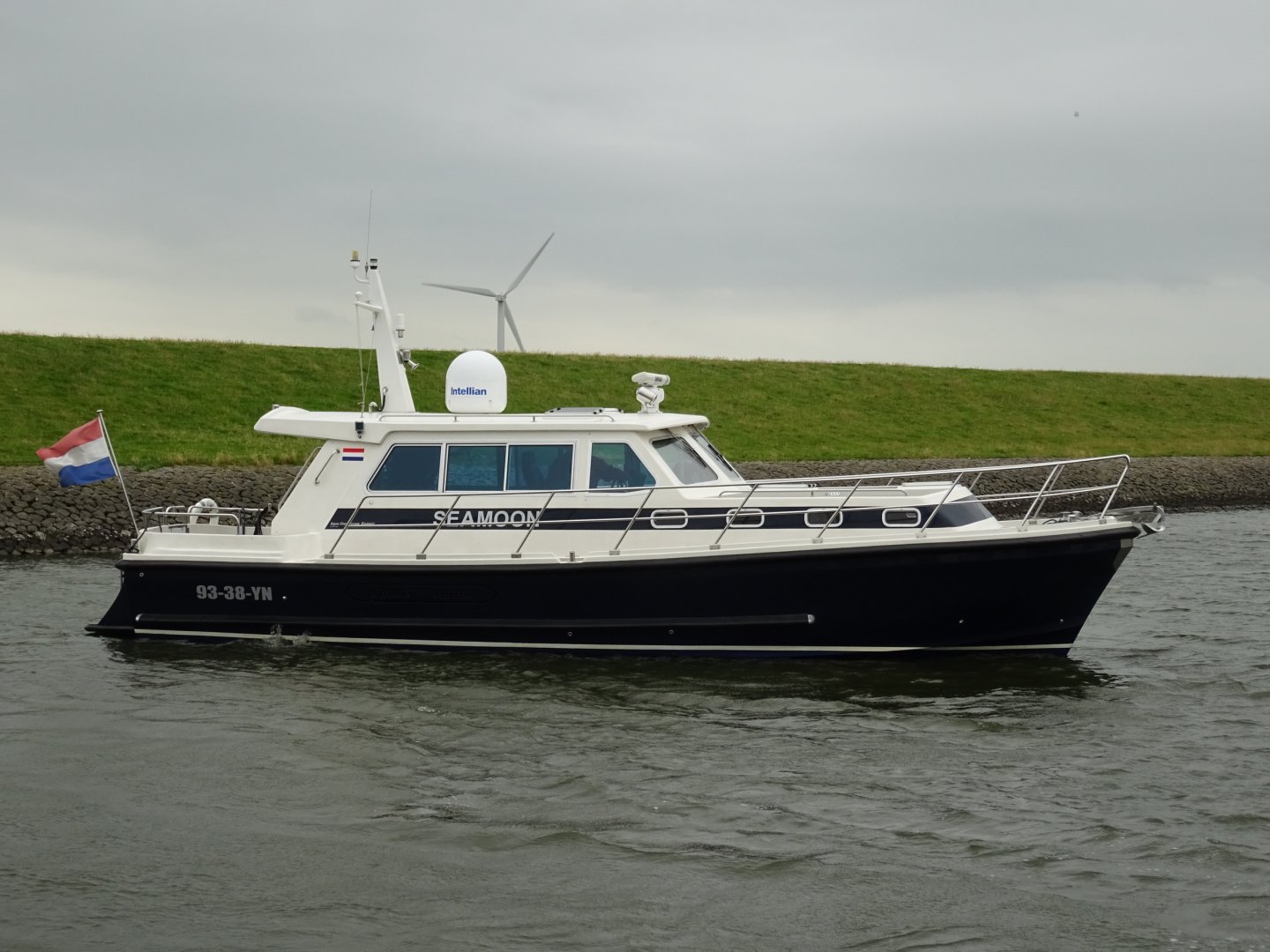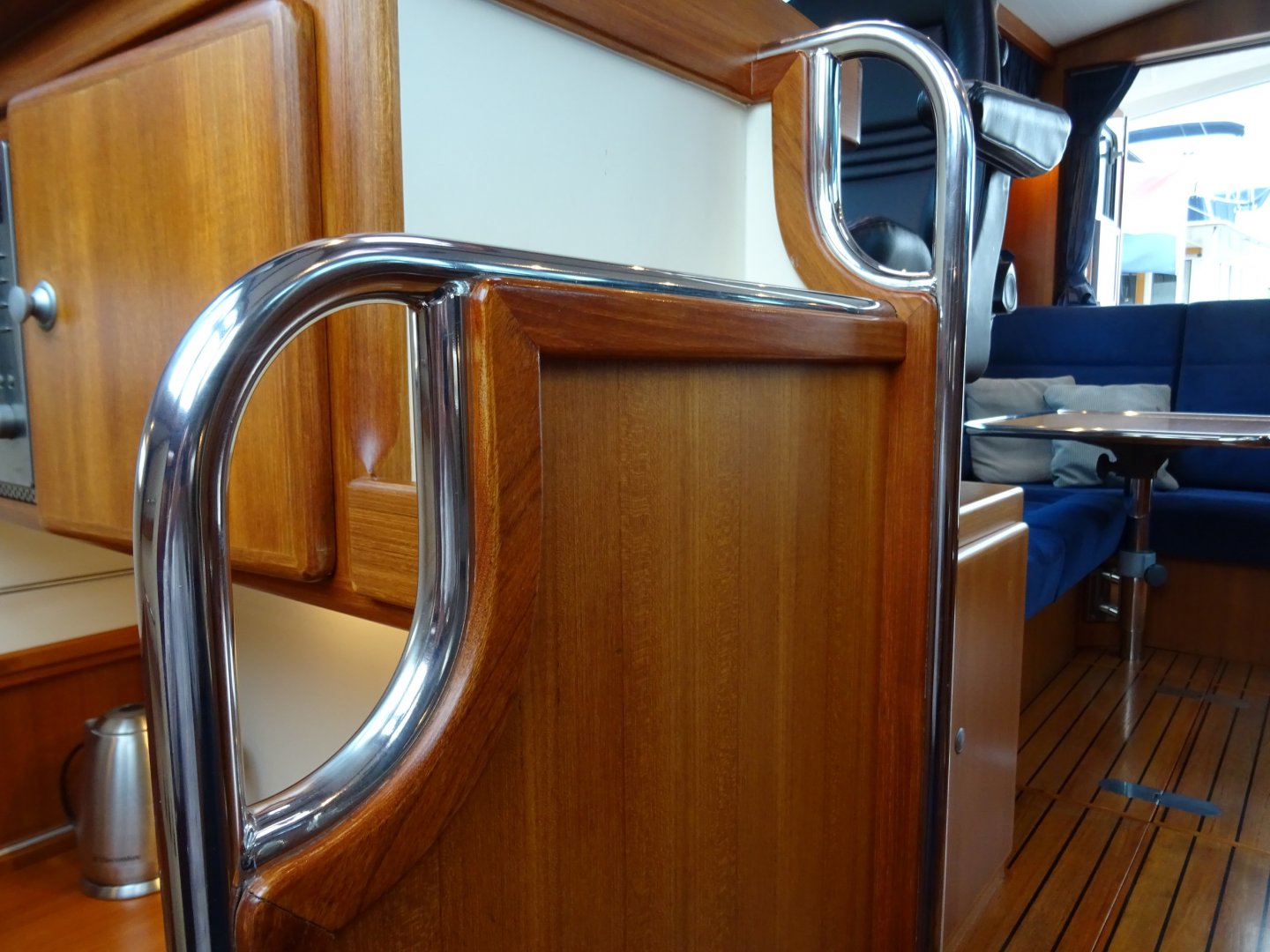 Full options en zeer goed onderhouden. Prachtige afwerking. Onder andere uitgerust met; teakdek in kuip, dubbel glas, CE categorie B, zoeklicht, sateliet, elektrische maststrijk installatie, dubbele railing, rvs slijtstrips, roestvrijstaal gepolijst anker, elektrische ankerlier, middenbolder, trimtabs met meters, sproei installatie, actieve rradarreflector, dubbel brandstoffilter, elektrische motorbediening, reddingsvlot, kuipdouche, dekwaspomp, generator, remote voor boegschroef/ankerlier/autopilot, dubbele koelkast met rvs front, teak vloer door hele schip, stereo in front cabin, luxe rvs details in het interieur, opblaasbare matrassen, Recaro lederen stuurstoelen op sledes. Recent keuringsrapport aanwezig. Geschikt voor binnenwater en kustwateren.