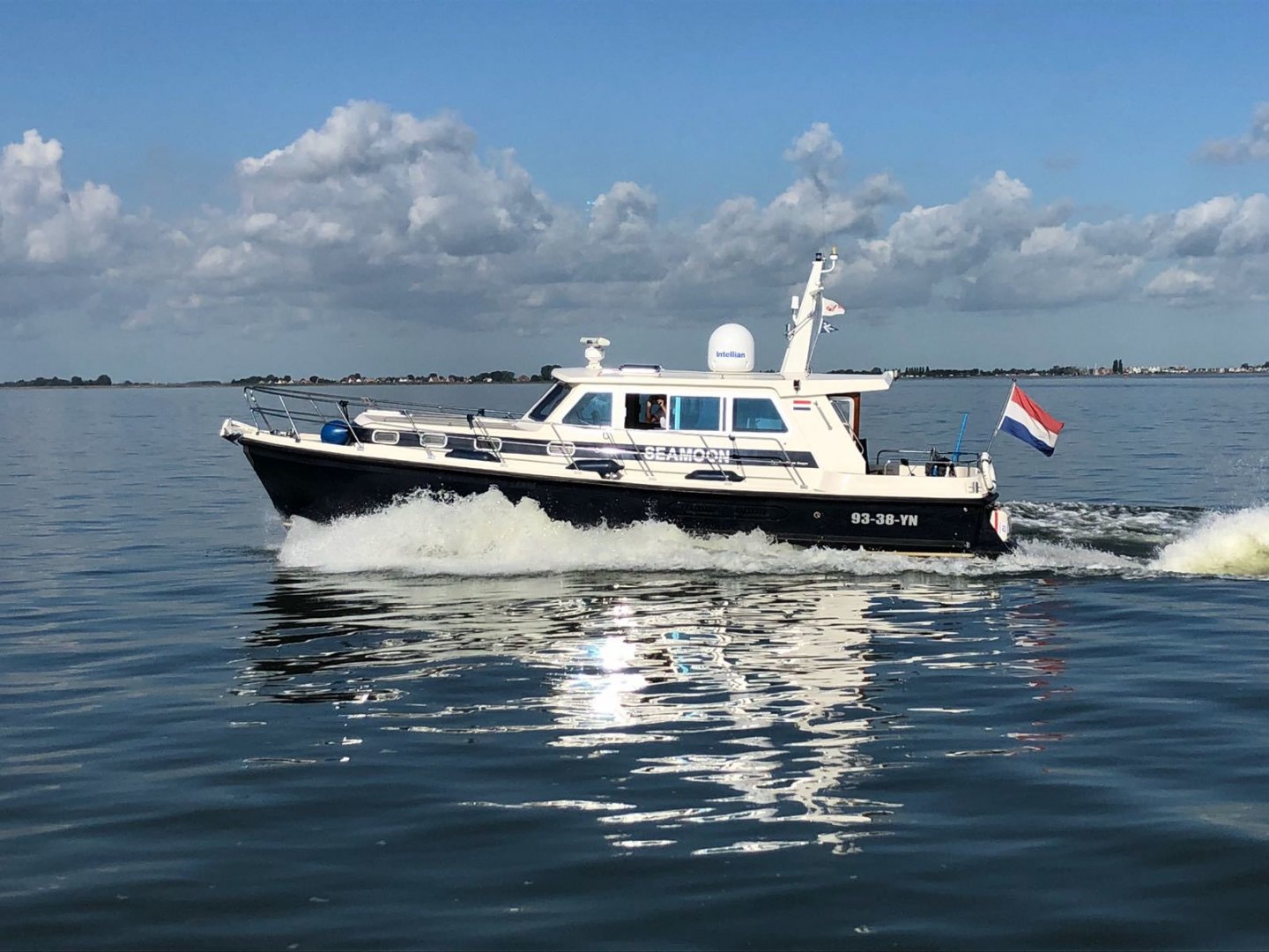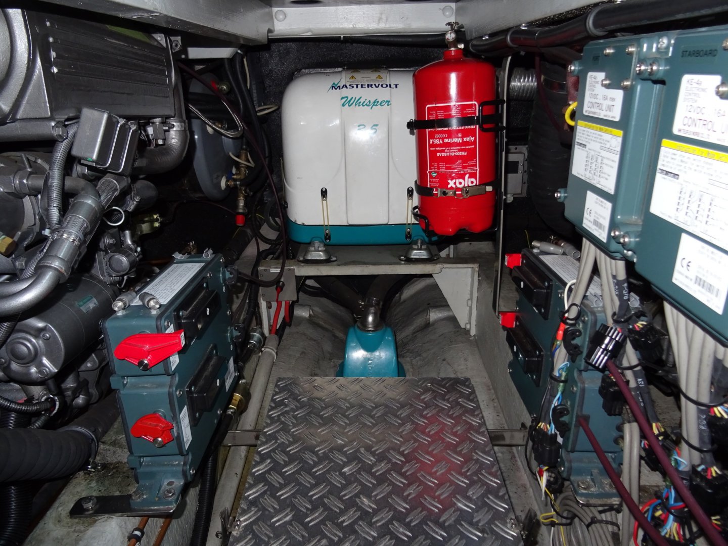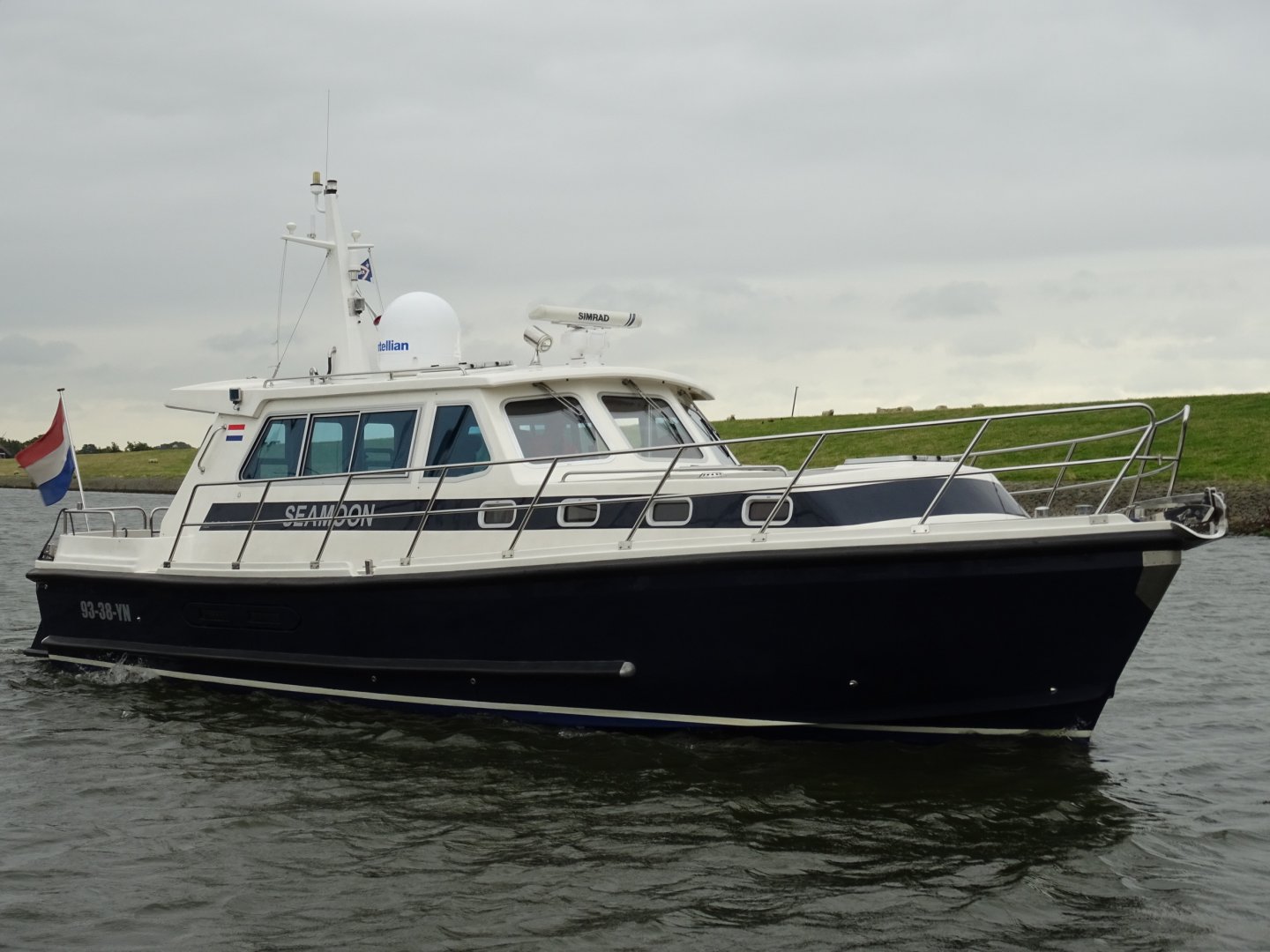 Full options en zeer goed onderhouden. Prachtige afwerking. Onder andere uitgerust met; teakdek in kuip, dubbel glas, CE categorie B, zoeklicht, sateliet, elektrische maststrijk installatie, dubbele railing, rvs slijtstrips, roestvrijstaal gepolijst anker, elektrische ankerlier, middenbolder, trimtabs met meters, sproei installatie, actieve rradarreflector, dubbel brandstoffilter, elektrische motorbediening, reddingsvlot, kuipdouche, dekwaspomp, generator, remote voor boegschroef/ankerlier/autopilot, dubbele koelkast met rvs front, teak vloer door hele schip, stereo in front cabin, luxe rvs details in het interieur, opblaasbare matrassen, Recaro lederen stuurstoelen op sledes. Recent keuringsrapport aanwezig. Geschikt voor binnenwater en kustwateren.