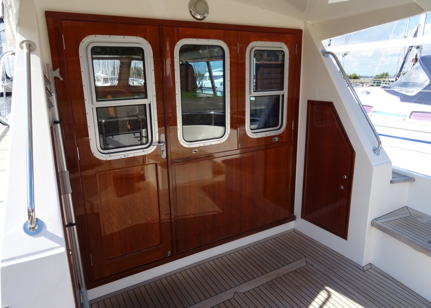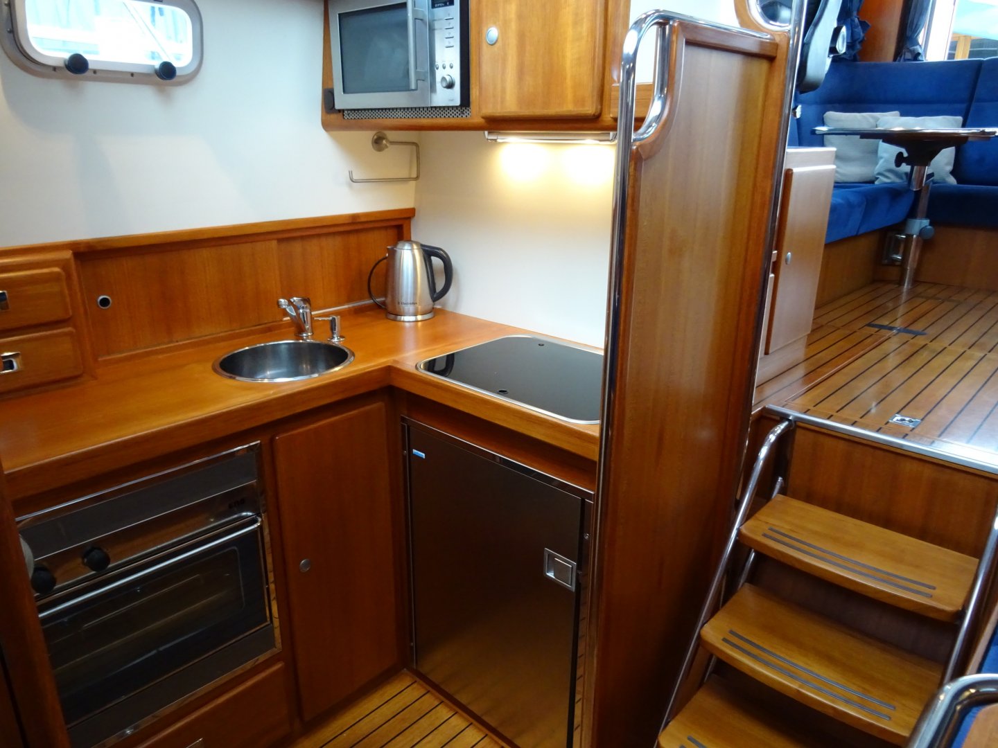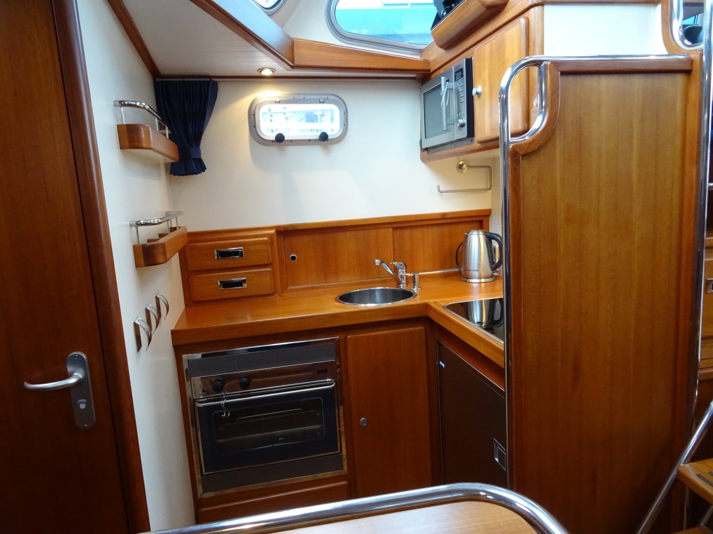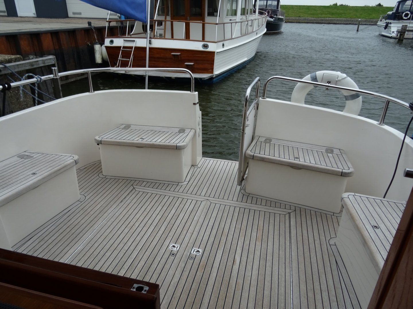Full options en zeer goed onderhouden. Prachtige afwerking. Onder andere uitgerust met; teakdek in kuip, dubbel glas, CE categorie B, zoeklicht, sateliet, elektrische maststrijk installatie, dubbele railing, rvs slijtstrips, roestvrijstaal gepolijst anker, elektrische ankerlier, middenbolder, trimtabs met meters, sproei installatie, actieve rradarreflector, dubbel brandstoffilter, elektrische motorbediening, reddingsvlot, kuipdouche, dekwaspomp, generator, remote voor boegschroef/ankerlier/autopilot, dubbele koelkast met rvs front, teak vloer door hele schip, stereo in front cabin, luxe rvs details in het interieur, opblaasbare matrassen, Recaro lederen stuurstoelen op sledes. Recent keuringsrapport aanwezig. Geschikt voor binnenwater en kustwateren.