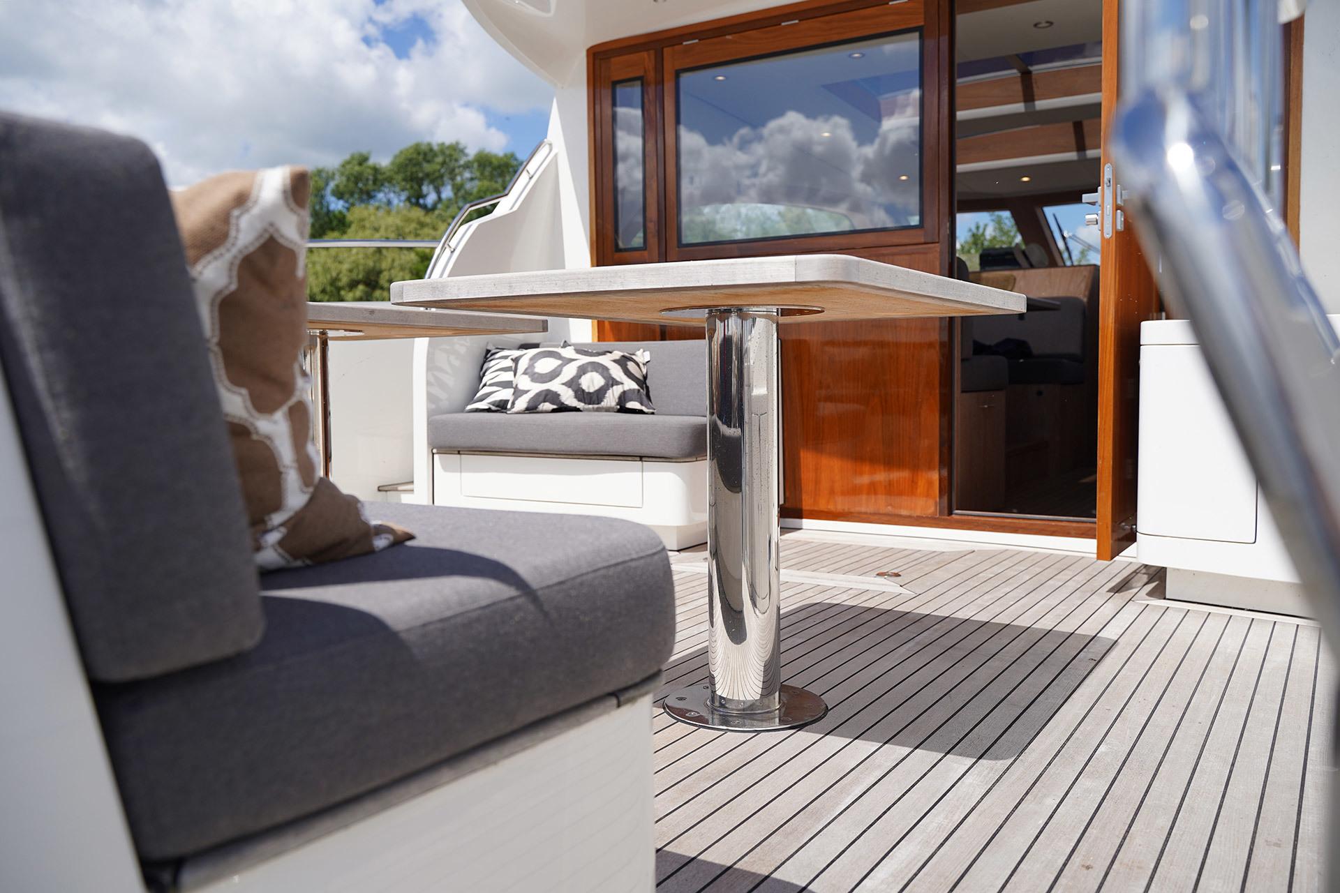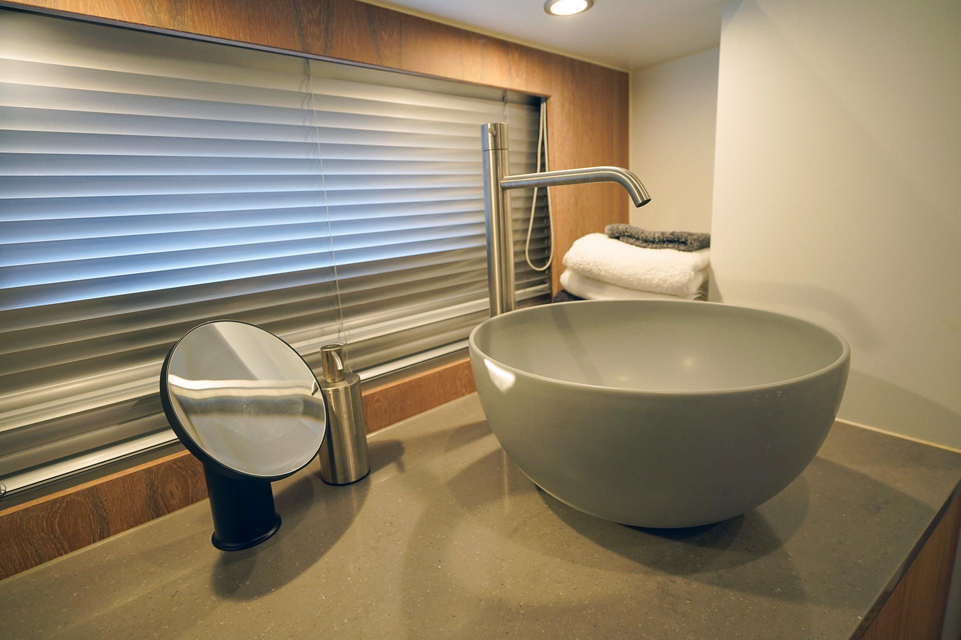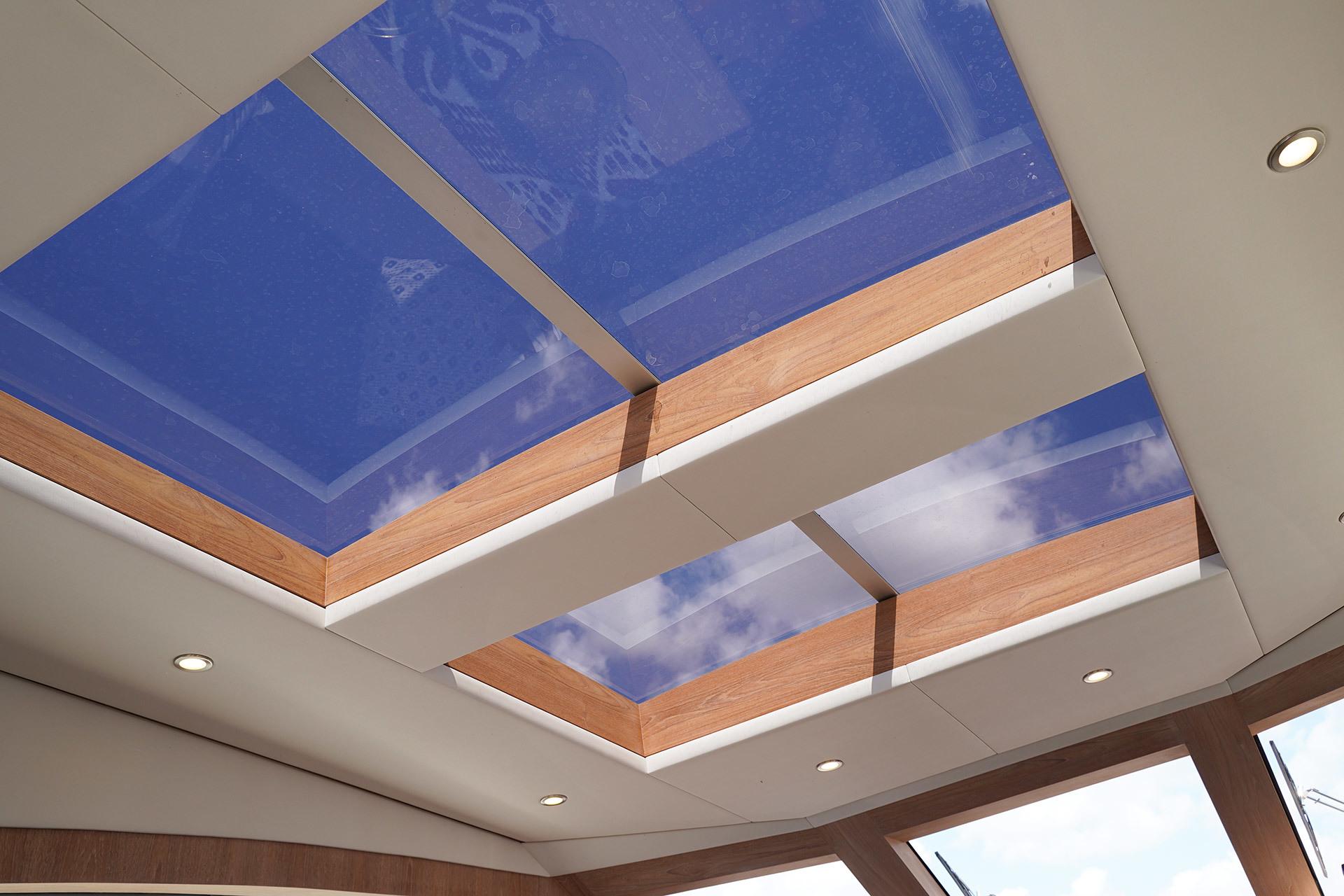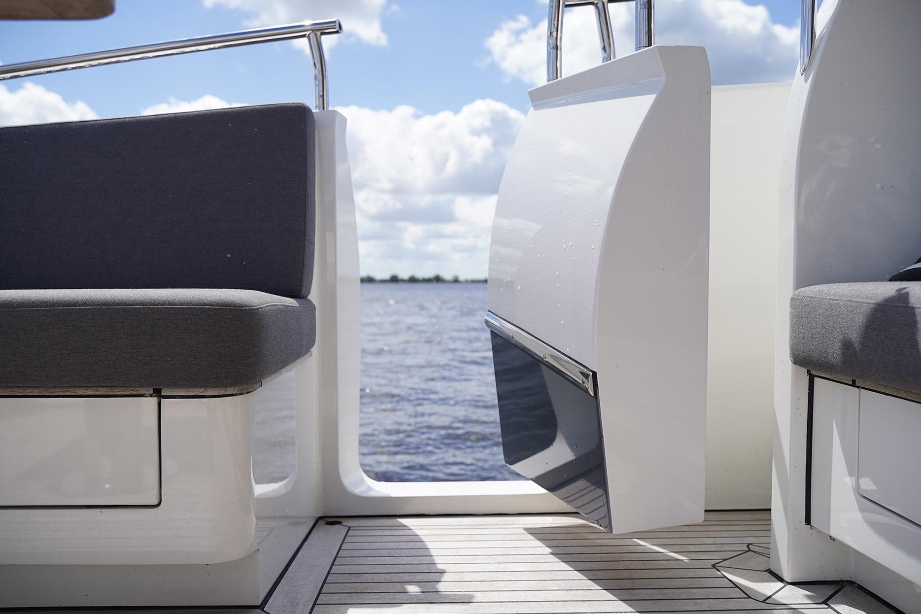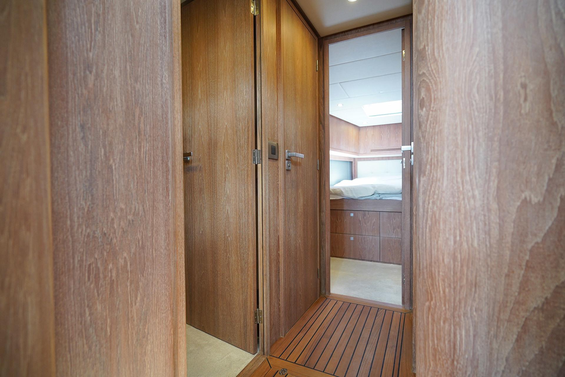 Heerlijk comfortabel teakhouten interieur. Voorzien van vloerverwarming met massief teakhouten vloerdelen. In de keuken is een wasmachine (Candy 8 kg) een vaatwasser (Siemens) en Corean werkbladen. Dit is echt een jacht voor alle seizoenen door de perfecte isolatie en dubbel glas. Het salonluik kan elektrisch geopend worden.