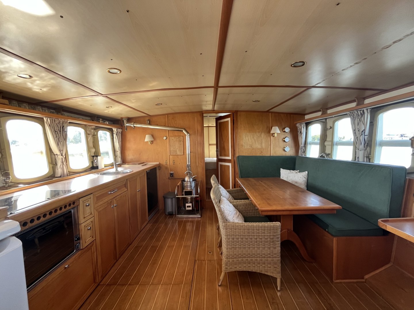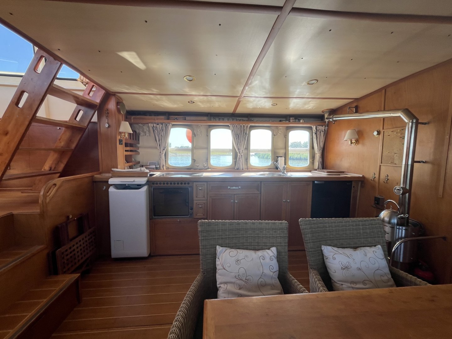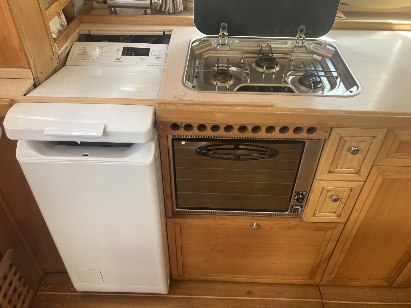 De keuken is voorzien van 4 pits kooktoestel, vaatwasser, wasmachine, magnetron. Er zijn apothekerskasten en een separate koelkast en vriezer.