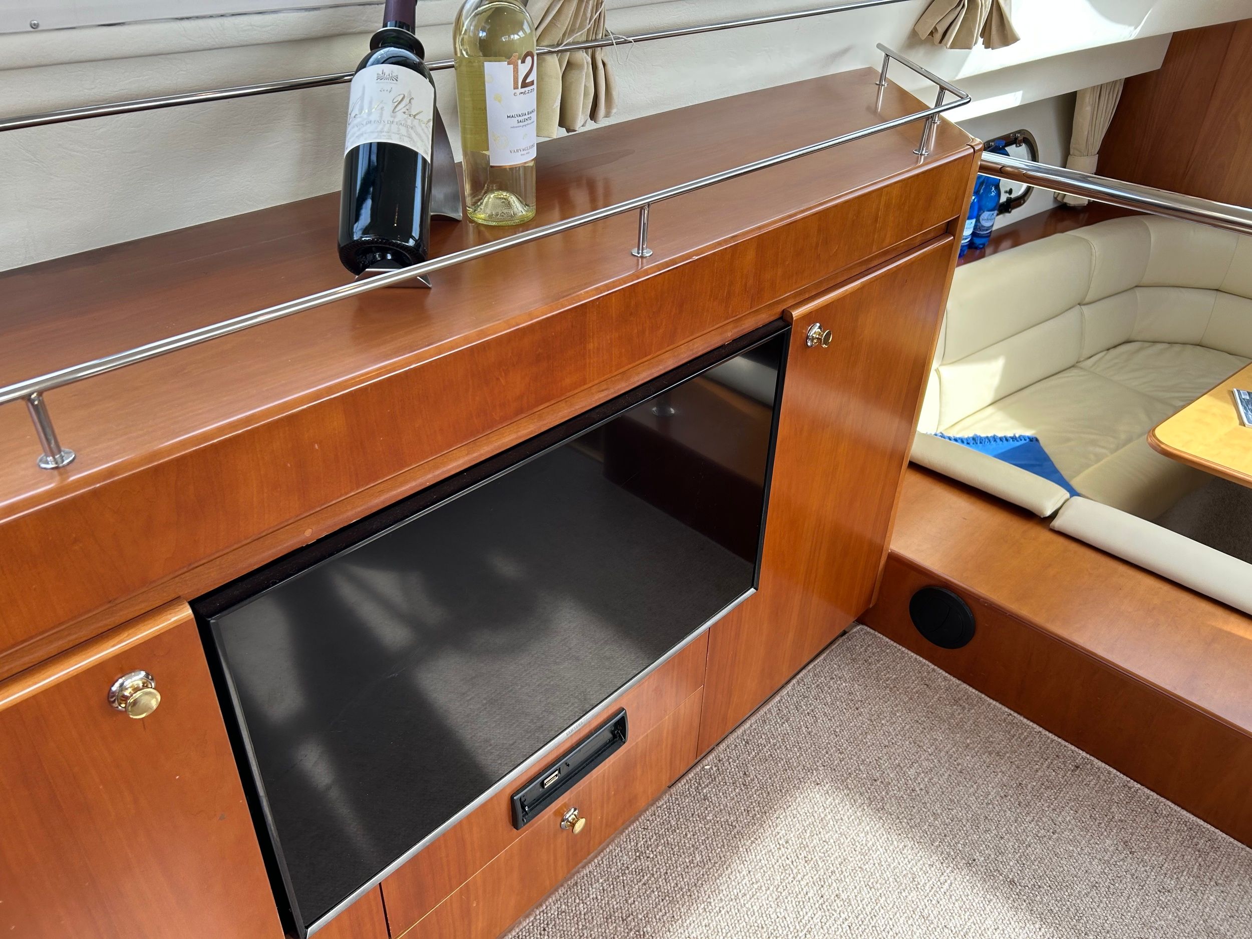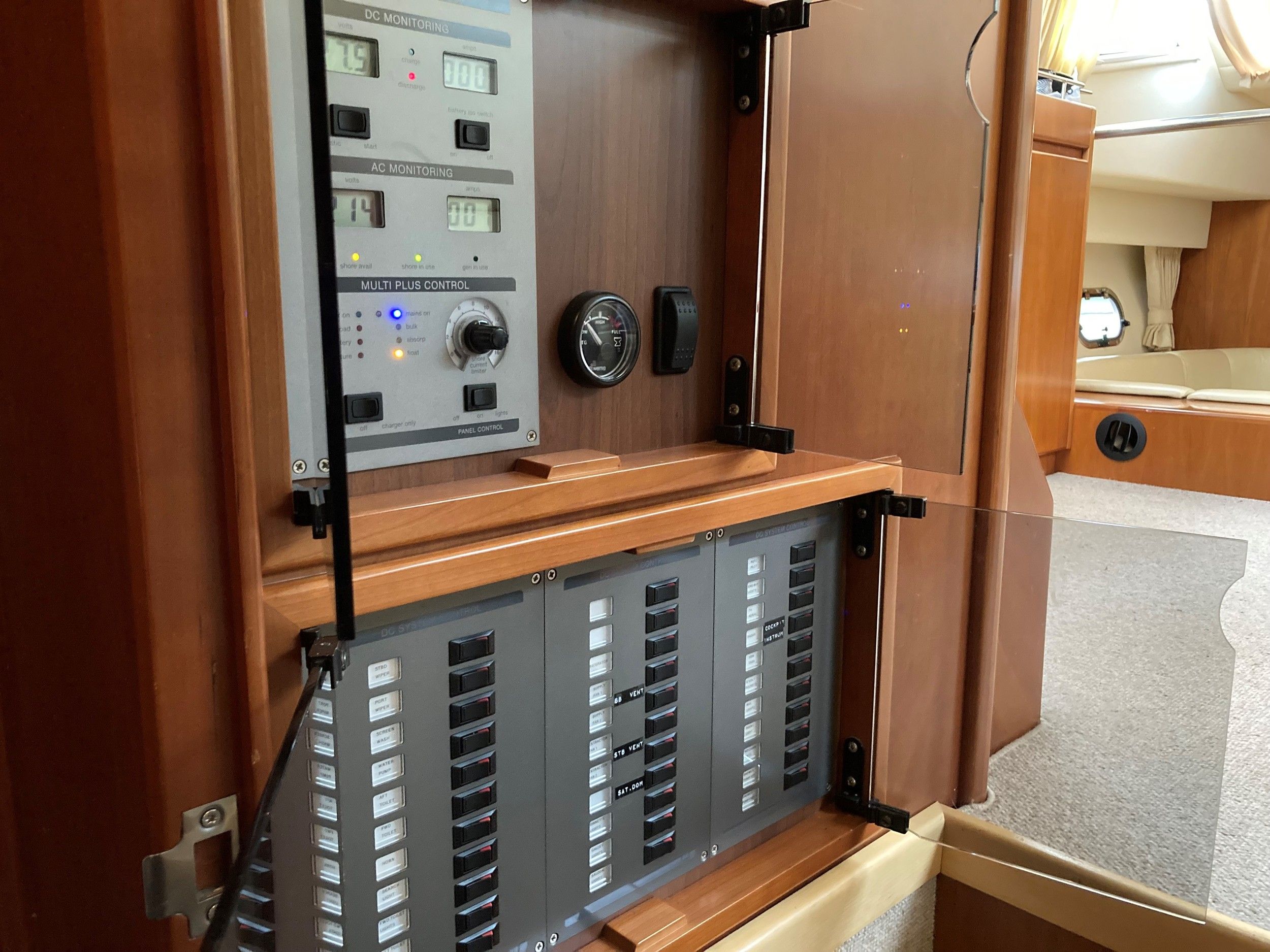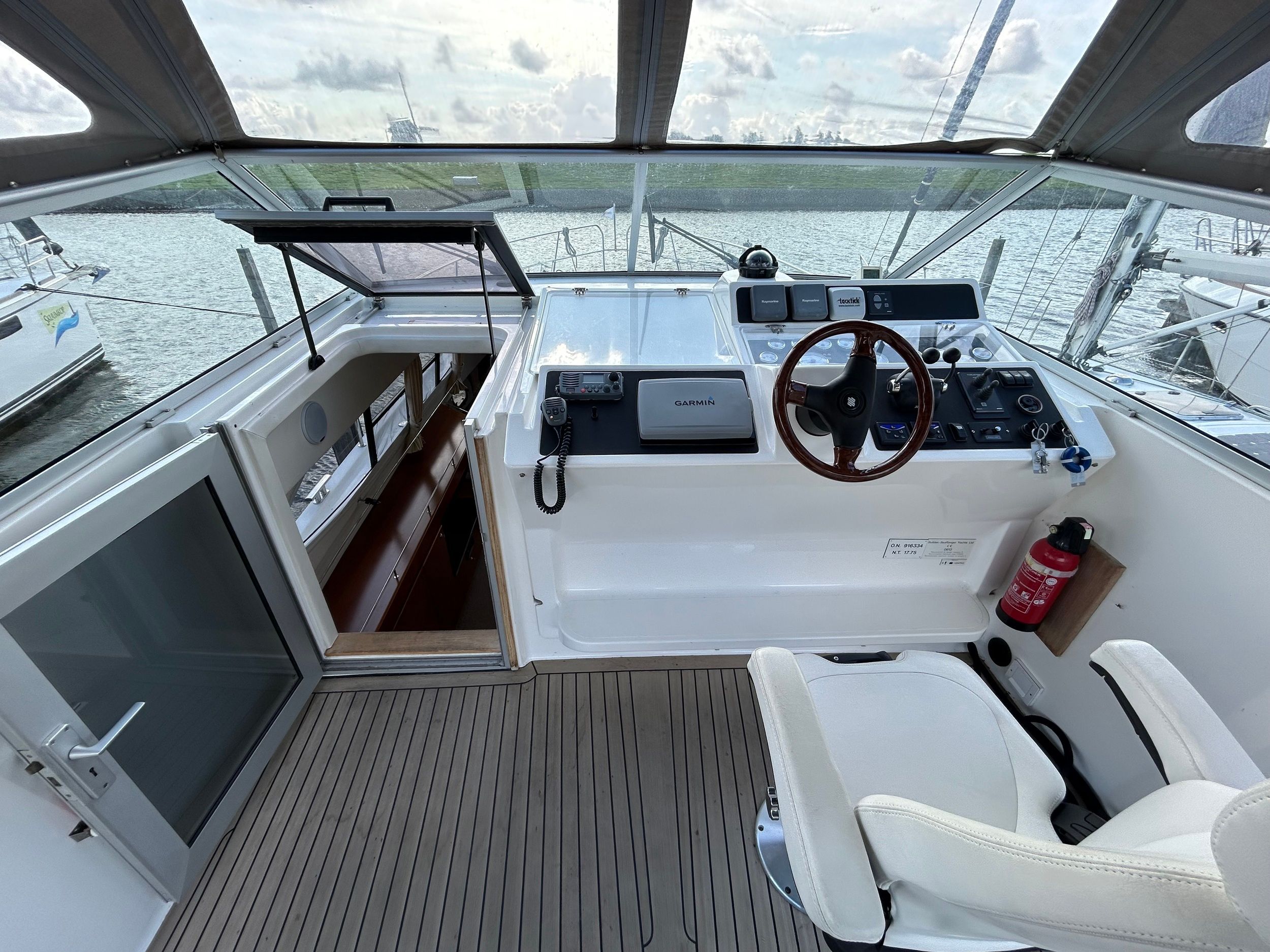 Onder andere uitgerust met: dubbele railing met fenderkorfen, klapbare radarbeugel, boegschroef, hekschroef, Flexiteak op achterdek en zwemplateau, zij-instap in de railing, volledige navigatie, zonnepanelen, elektrische ankerlier, neerklapbare radarbeugel, lederen bekleding, luxe stuurstoel, buitendouche, zoeklicht, Corean op werkbladen, houten vloer bij de keuken, elektrisch toilet in mastercabin, pomptoilet in gastentoilet, omvormer.