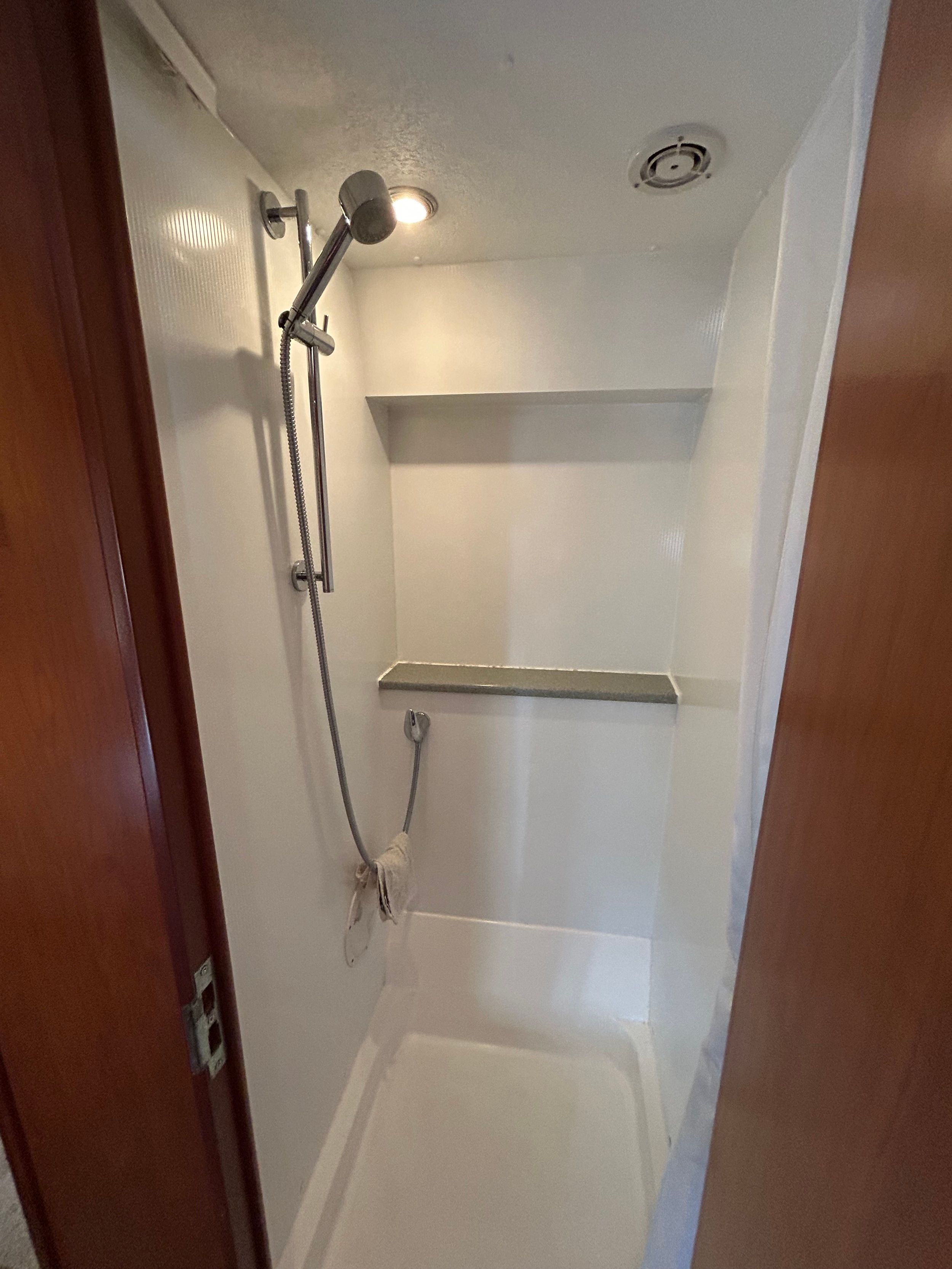Zeer praktische indeling. In de mastercabin is een separate douche en toilet.