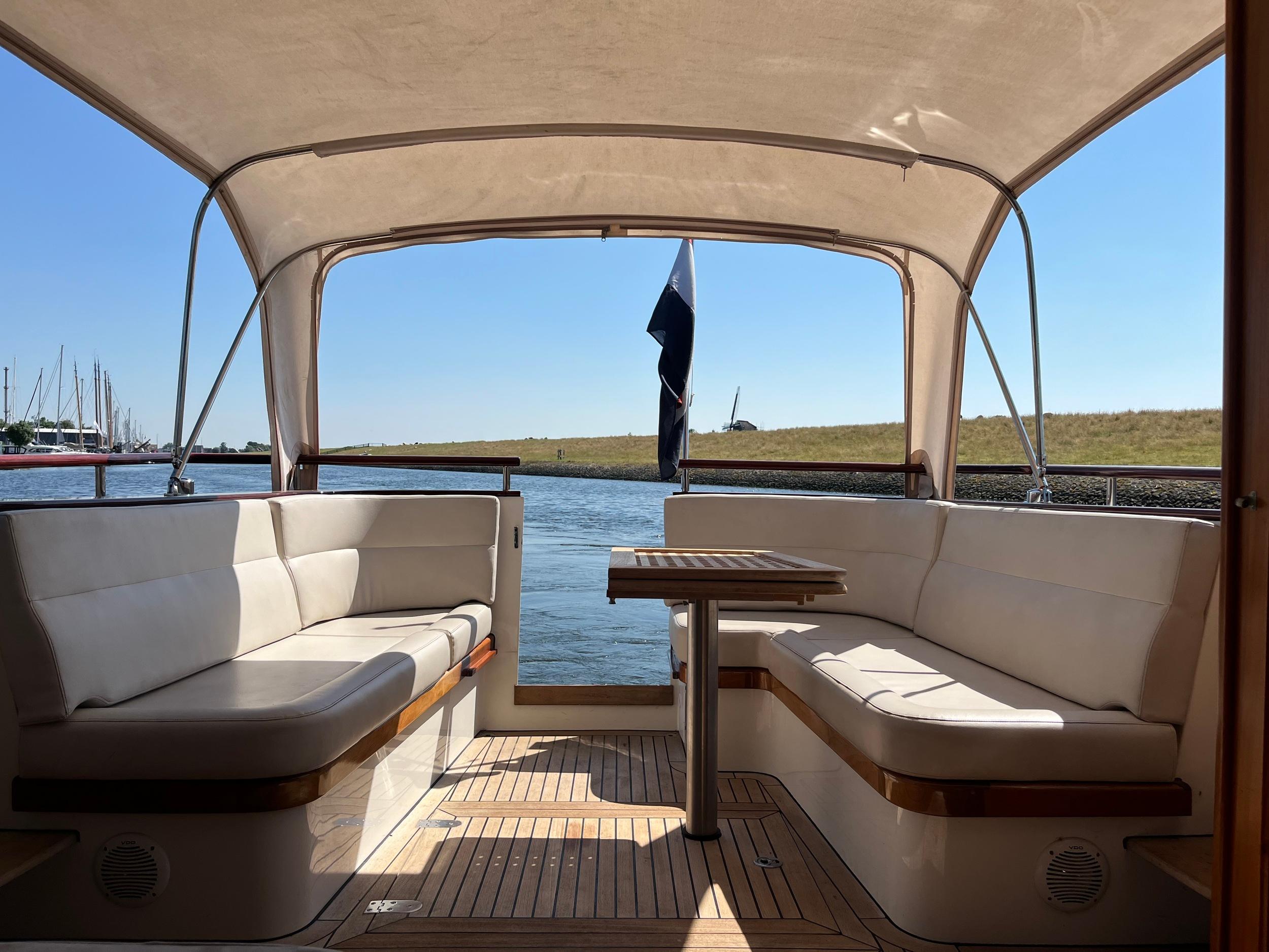 Bij deze IJlstervlet komt u aan luxe niet te kort. Een echt zwaar gebouwd en kwalitatief hoogwaardig afgebouwd jacht. Het sfeervolle interieur heeft paneeldeuren en een teakhouten vloeren. De boot heeft 2 royale hutten. Onder de salon is een opbergruimte waar u een wasmachine aantreft.