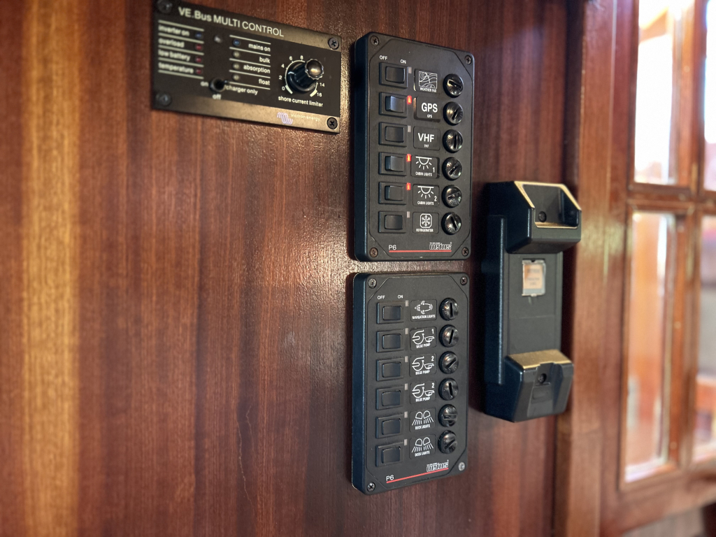 Er is bovendien een moderne Victron lader/omvormer geïnstalleerd, wat bijdraagt aan het gebruiksgemak en de autonomie aan boord.