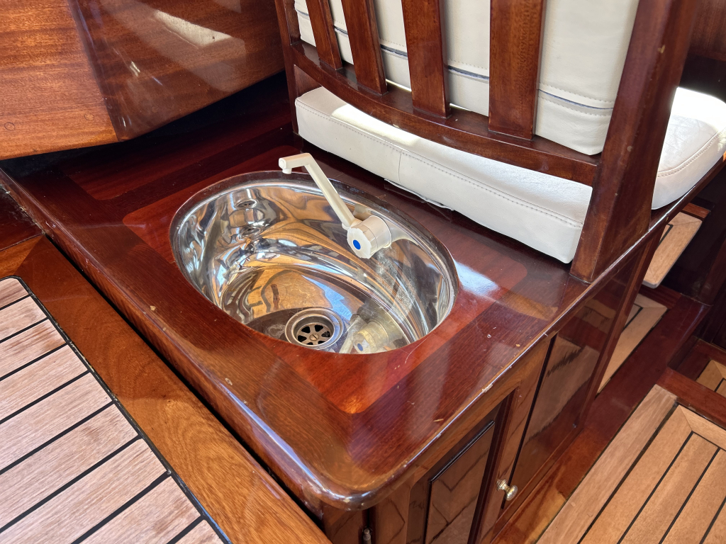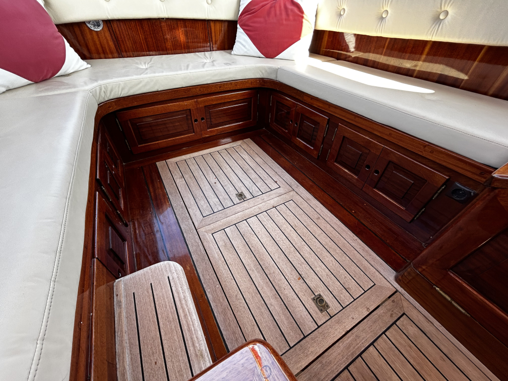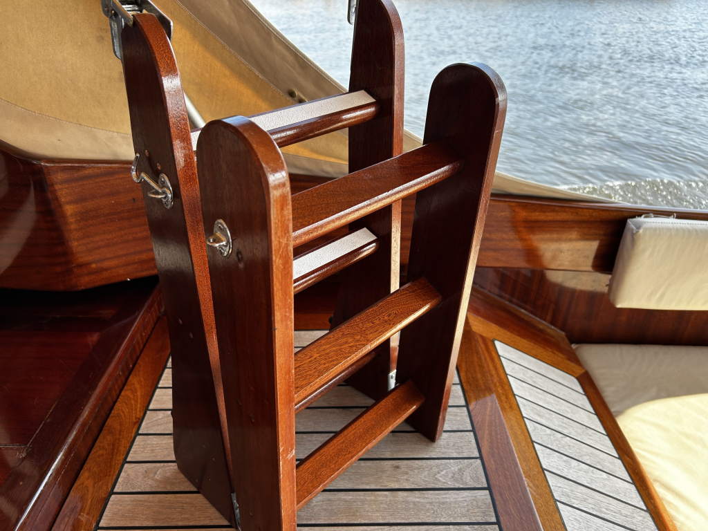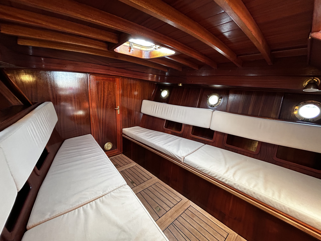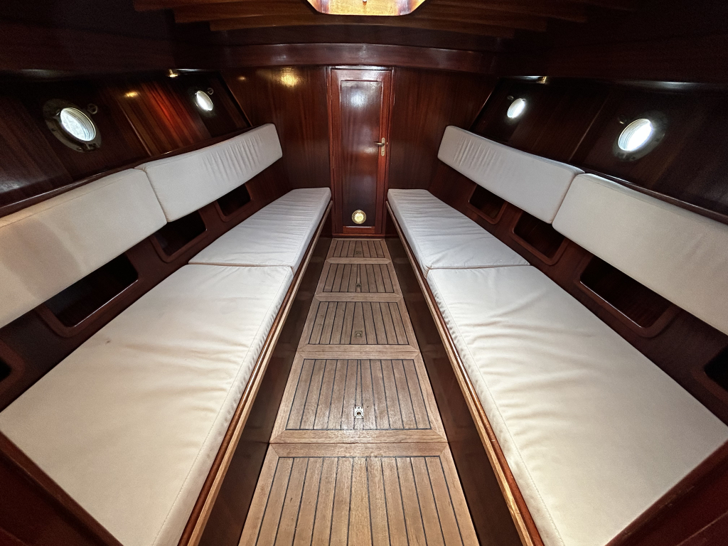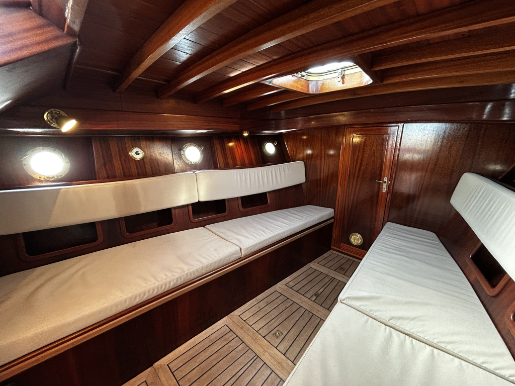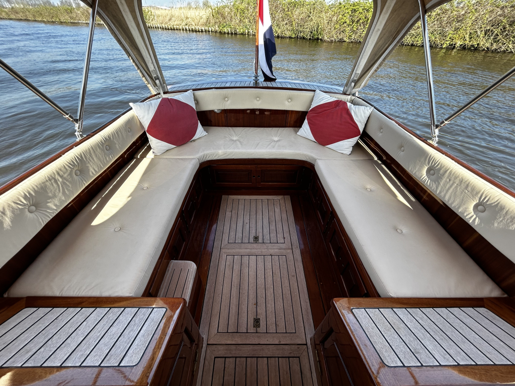 Aan boord vindt u een praktische en sfeervolle indeling. De salon biedt beschutting bij minder weer, maar is tevens eenvoudig om te bouwen tot een royaal tweepersoonsbed. In het voorschip bevindt zich een afgesloten toiletruimte, wat het verblijf aan boord extra comfortabel maakt. De ruime kuip, voorzien van een tent, nodigt uit tot lange dagen op het water met familie en vrienden.