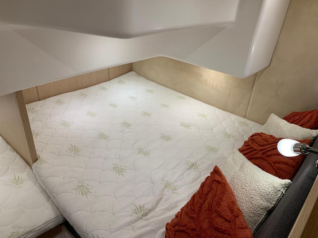 Sfeervol interieur van zeer hoge kwaliteit. In het hele jacht is ruime stahoogte van circa 2 meter. De gastenhut onder de salon zal u verbazen: ruim en licht. Op alle matrassen zijn extra traagschuim toppers wat het ligcomfort nog groter maakt. De salonvloer is vervaardigd van massief teakhout.