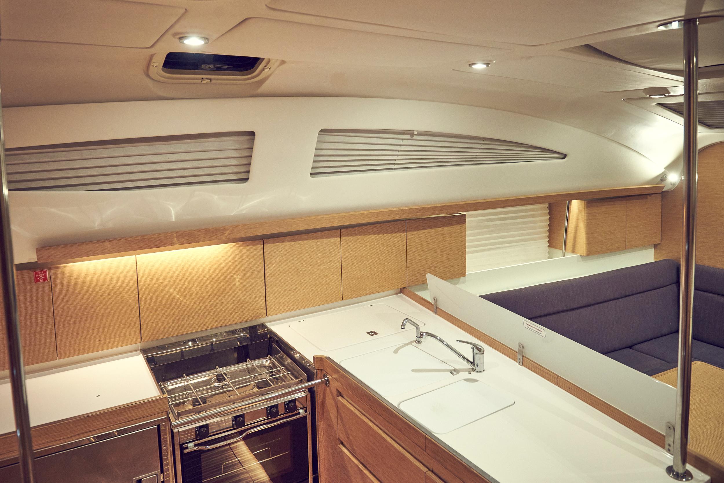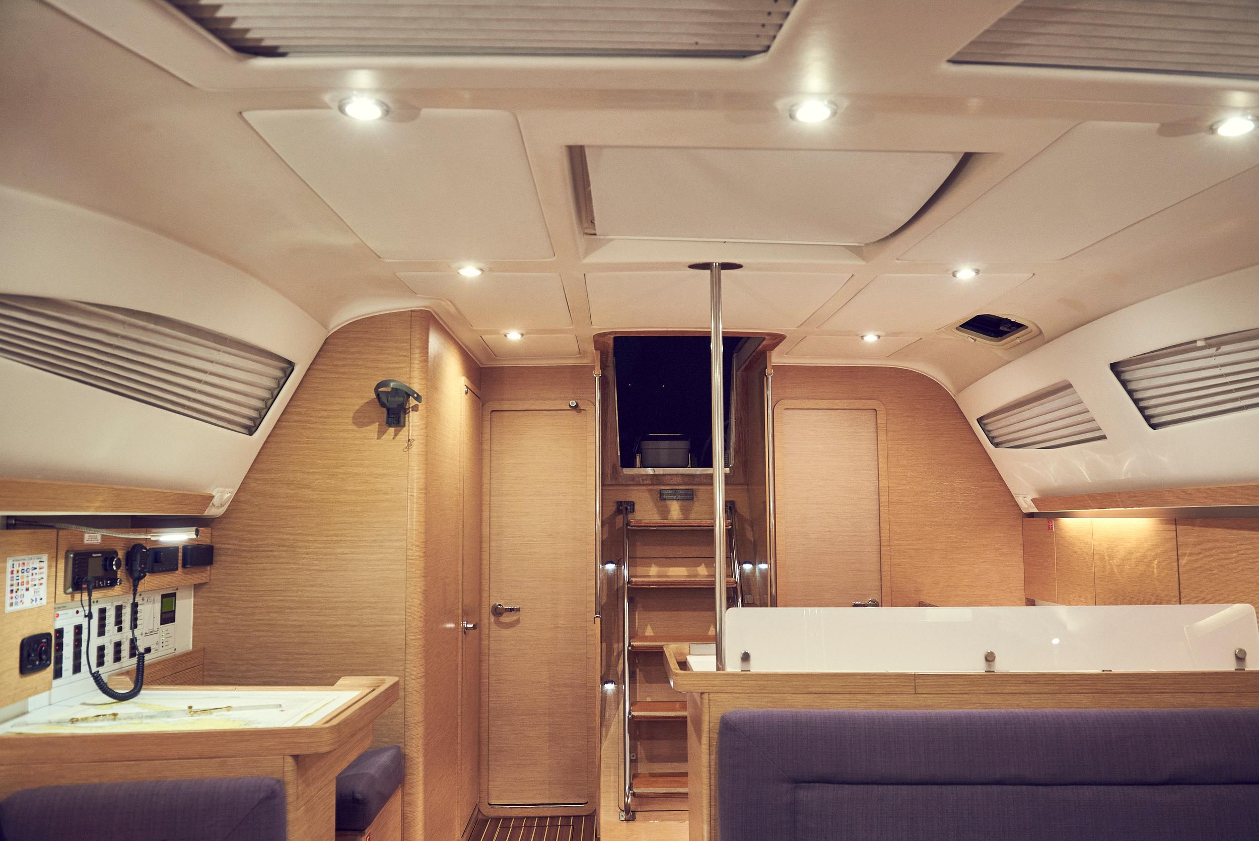 De Elan Impression 45 is een ruim comfortabel zeiljacht met een lichte salon en uitstekende zeileigenschappen.