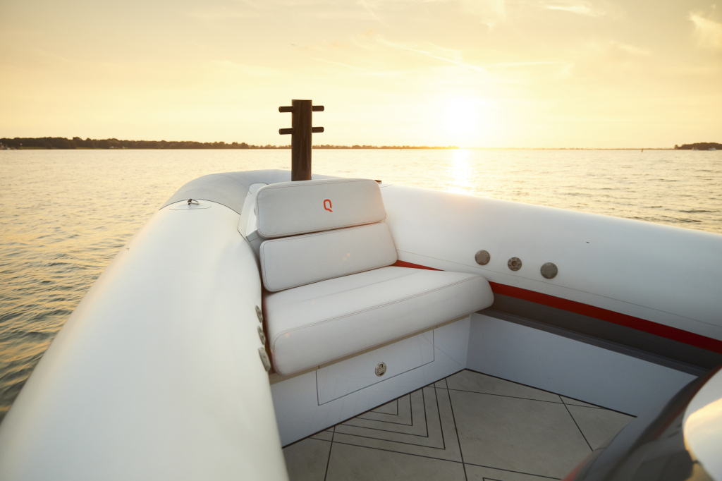 De Q39 Superb Rib is een indrukwekkende Rib in zijn klasse op de huidige markt en heeft uitzonderlijke eigenschappen op het gebied van snelheid, veiligheid, met oog voor details, kwaliteit en luxe. De Q39 vaart niet op zijn tubes, maar is echt een schip. De krachtige romp garandeert veilige zeewaardigheid. Het —-vrijboord — aan de binnenzijde van de Q39 is zo uniek, dat op geen enkele andere RIB voorkomt, het minimaliseert de kans dat passagiers overboord vallen in ruwe zee of bij het nemen van bochten met hoge snelheid. Bovendien houden de veiligheidsgordels en schokabsorberende stoelen iedereen op zijn plaats, zelfs in de ruigste zeeën. De CE-A Ocean classificatie van de boot is uniek voor een RIB.
