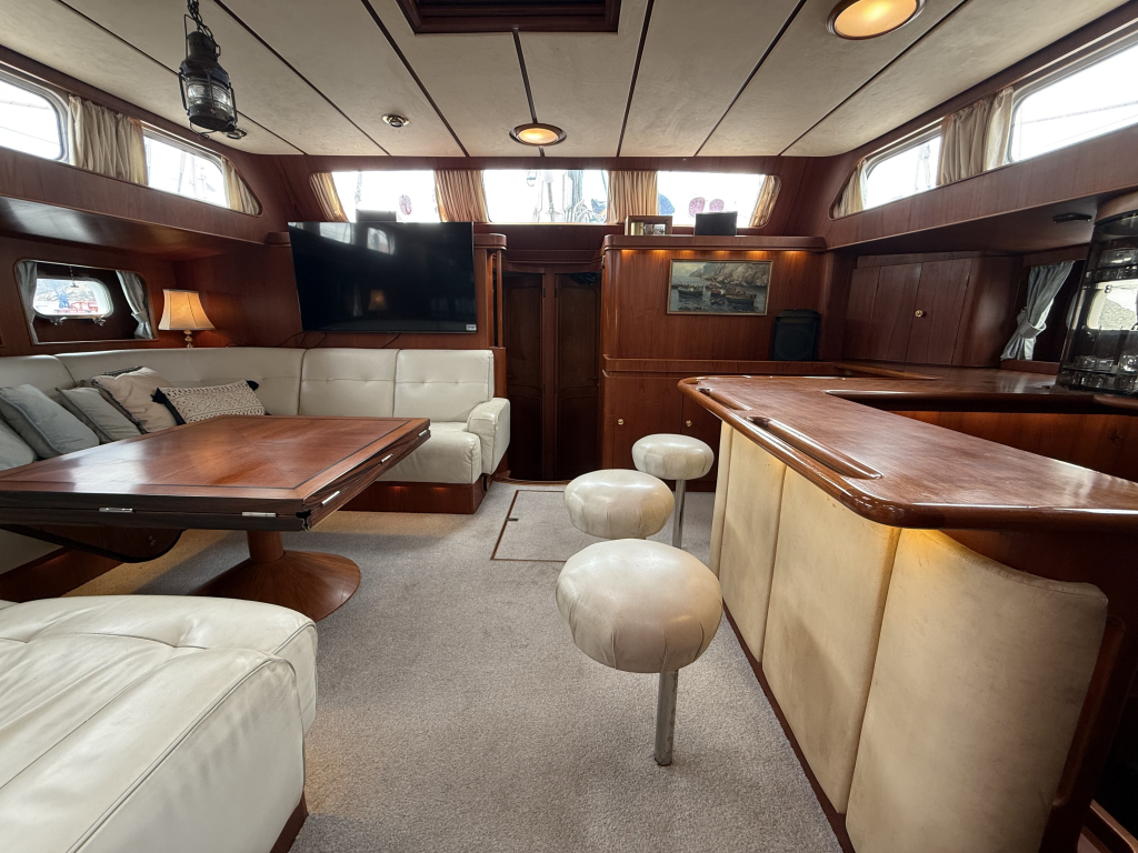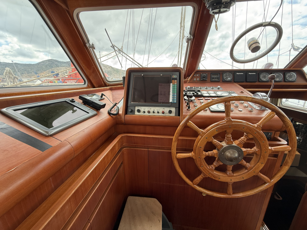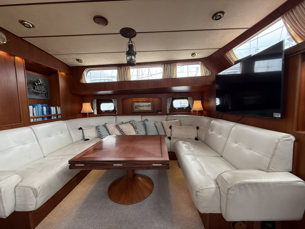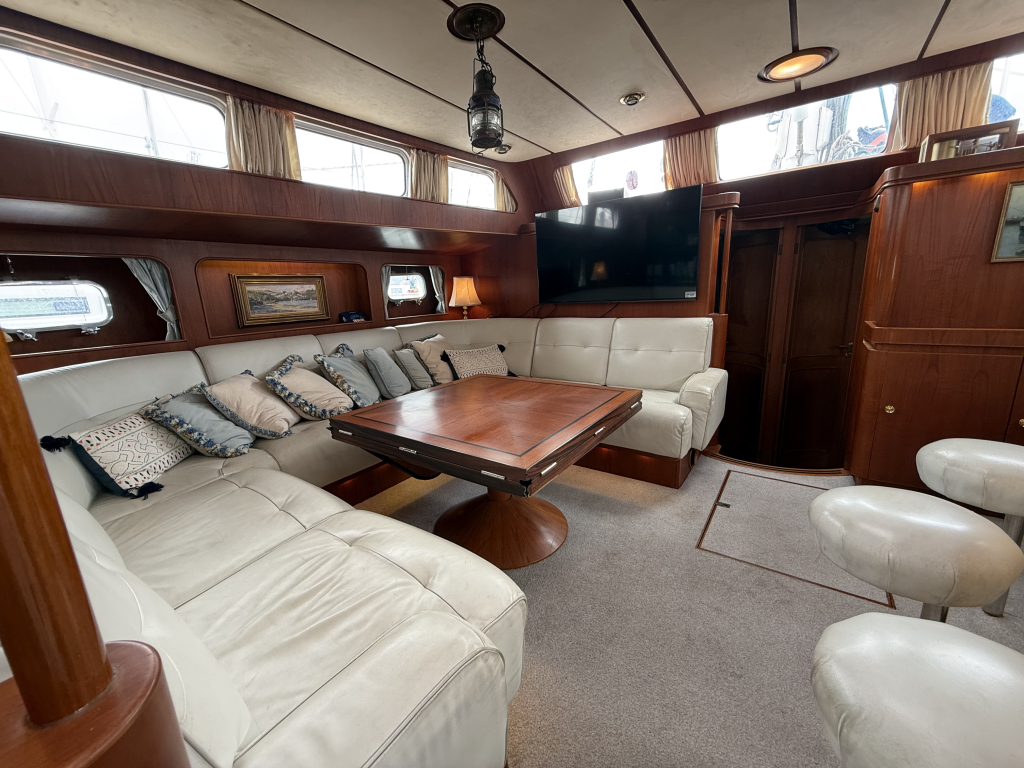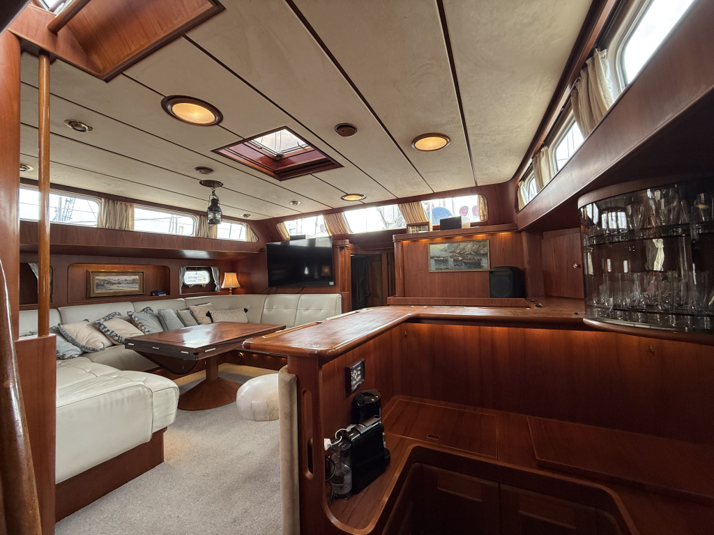 Exclusiviteit en Comfort Het jacht onderscheidt zich door een exquis houten interieur, een opvallend ruime machinekamer en een riant cockpitgebied. Uniek aan dit exemplaar is het uiterst praktische Jongert-platform aan de achterzijde. De goed beschutte stuurhut biedt een veilige haven onder alle weersomstandigheden.