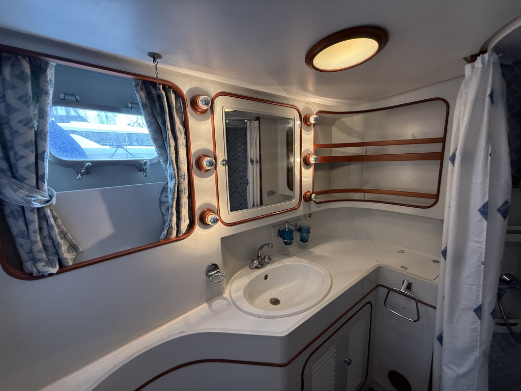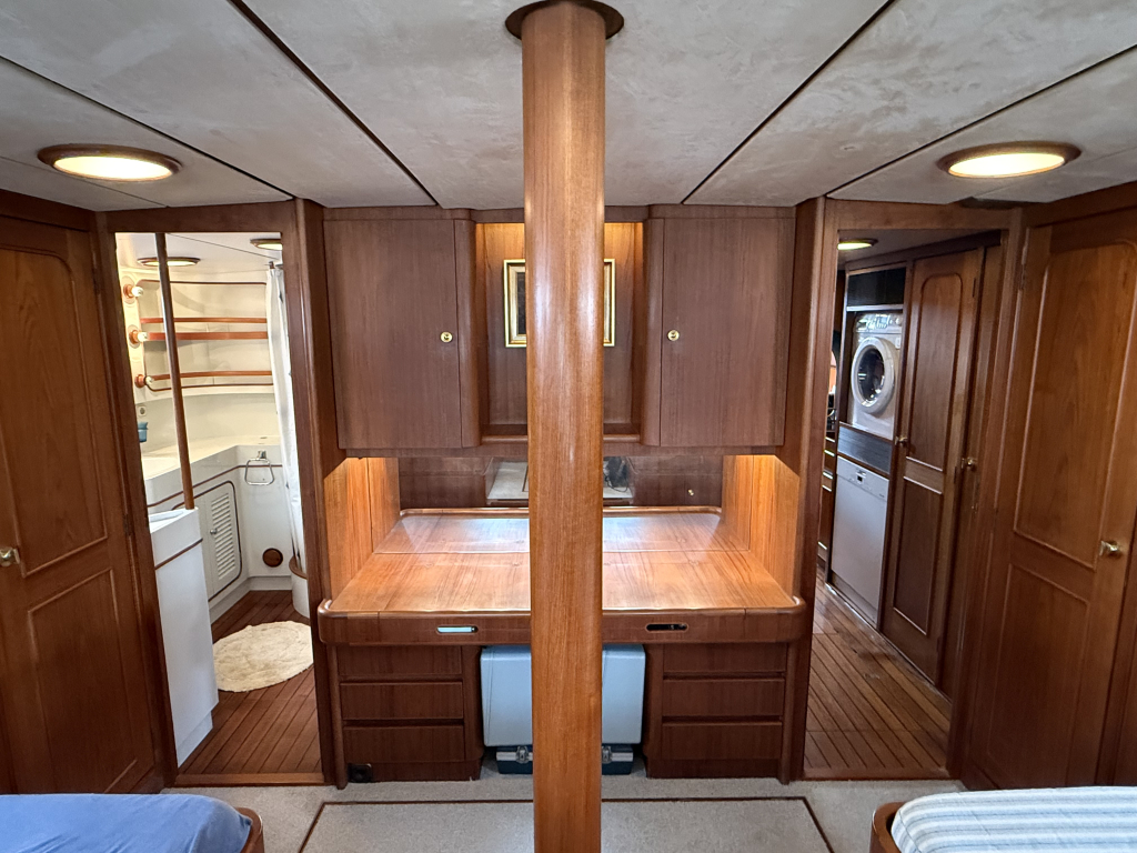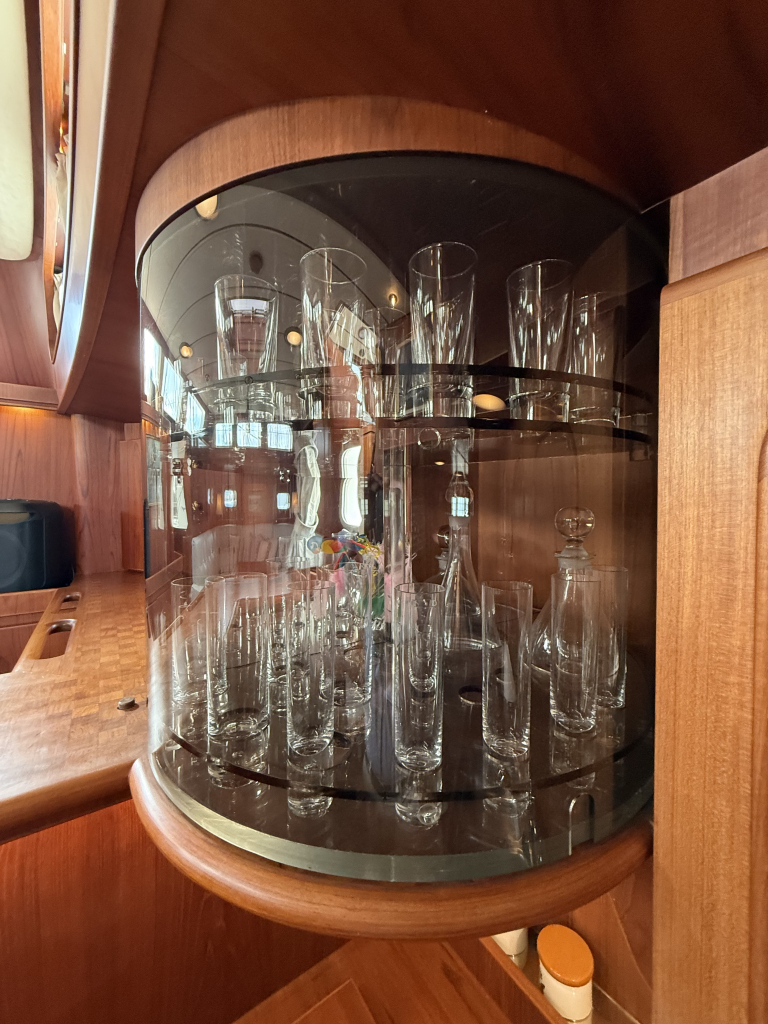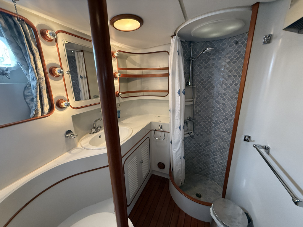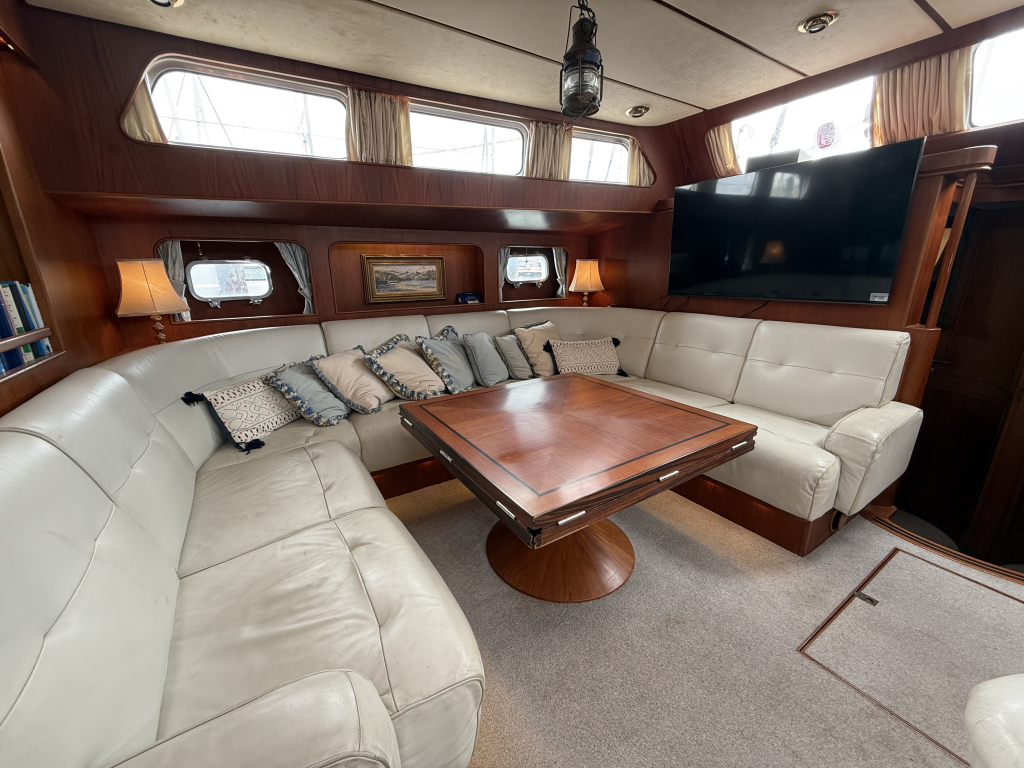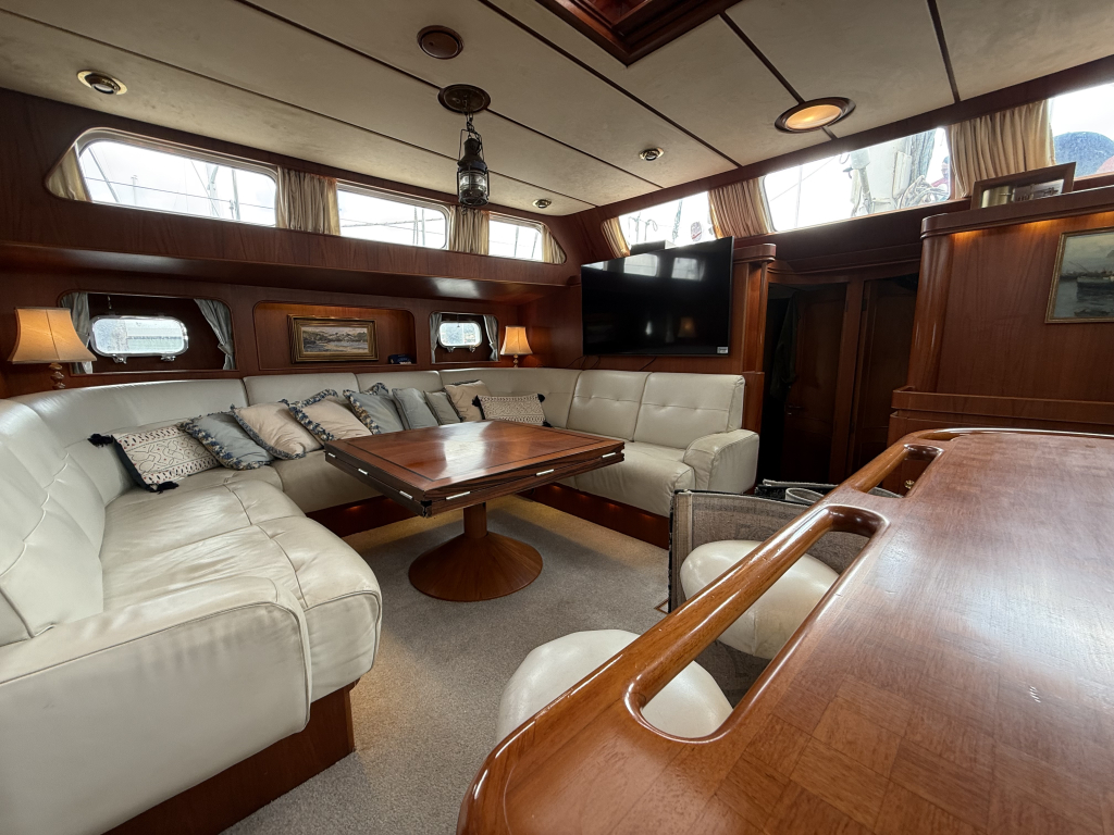 Exclusiviteit en Comfort Het jacht onderscheidt zich door een exquis houten interieur, een opvallend ruime machinekamer en een riant cockpitgebied. Uniek aan dit exemplaar is het uiterst praktische Jongert-platform aan de achterzijde. De goed beschutte stuurhut biedt een veilige haven onder alle weersomstandigheden.