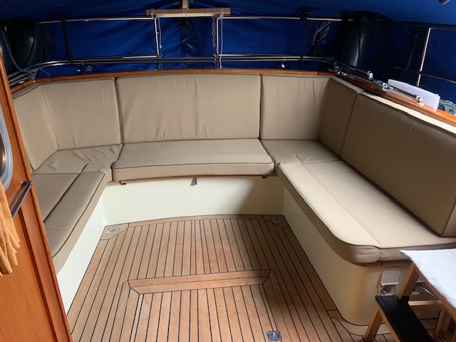 Binnen treft u een warm en functioneel interieur, perfect voor langere verblijven aan boord: