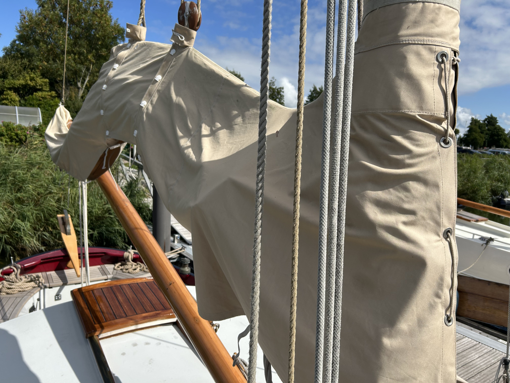 De zeilgarderobe is uitgebreid en telt 5 zeilen, gemaakt door Molenaar Zeilen in Grou. De huiken zijn recent vernieuwd.