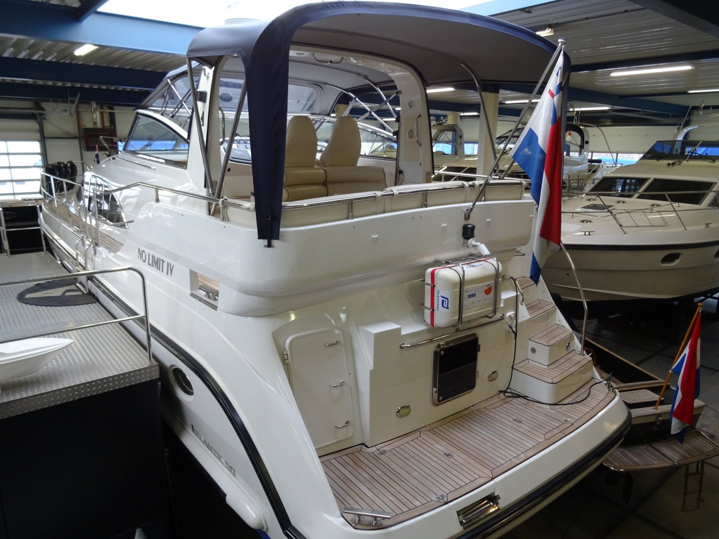 Meest complete Atlantic ooit gebouwd met zeer ruim achterdek, veel bergruimte voorraadkamer, granieten werkbladen in keuken en badkamers. Voorzien van camerasysteem, digitale tankmeters, afstandsbediening voor boeg- en hekschroef en stuurautomaat. Elektrisch bedienbare radarbeugel. nieuwe cabriokap en achtertent met RVS frame, gemaakt van hoogwaardig dubbelzijdig doek. KVH tracvision 4, set reserveschroeven, airco, wasmachine, vaatwasser, raamsproeiers etc.