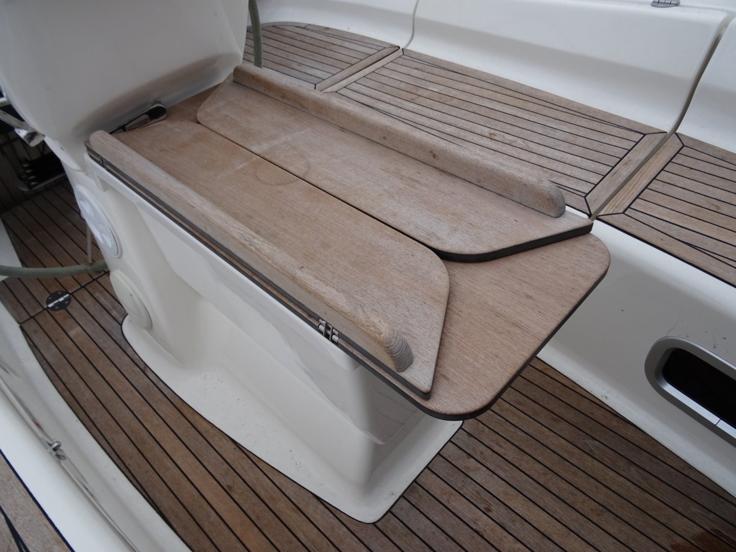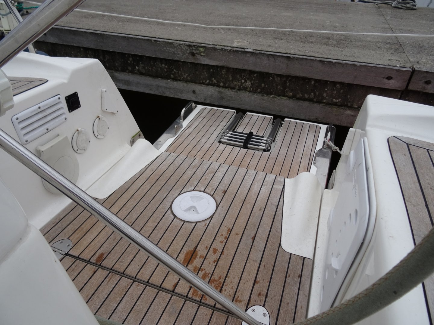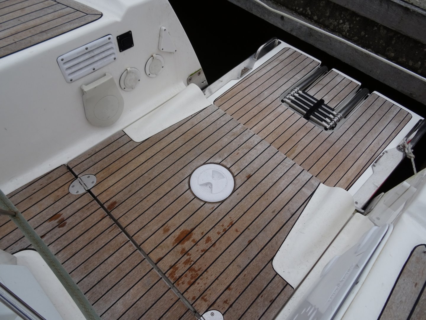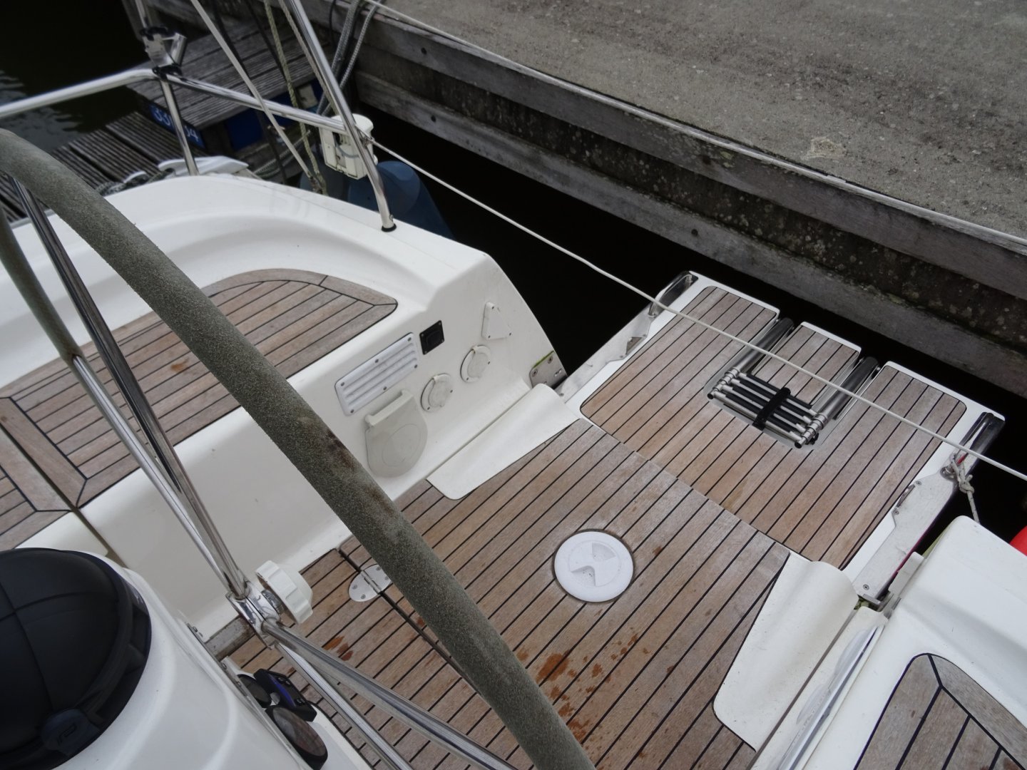 Reserve schroeven, dubbelzijdige cabriotent, fenderkorfen in railing, trappen in railing, buitendouche.