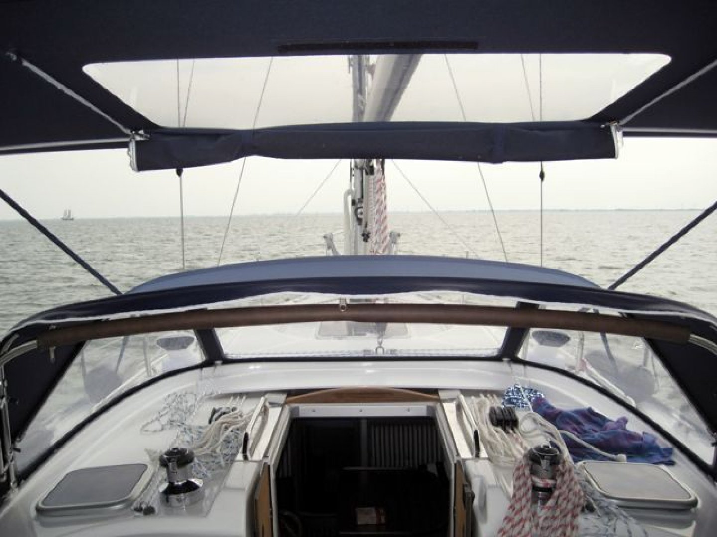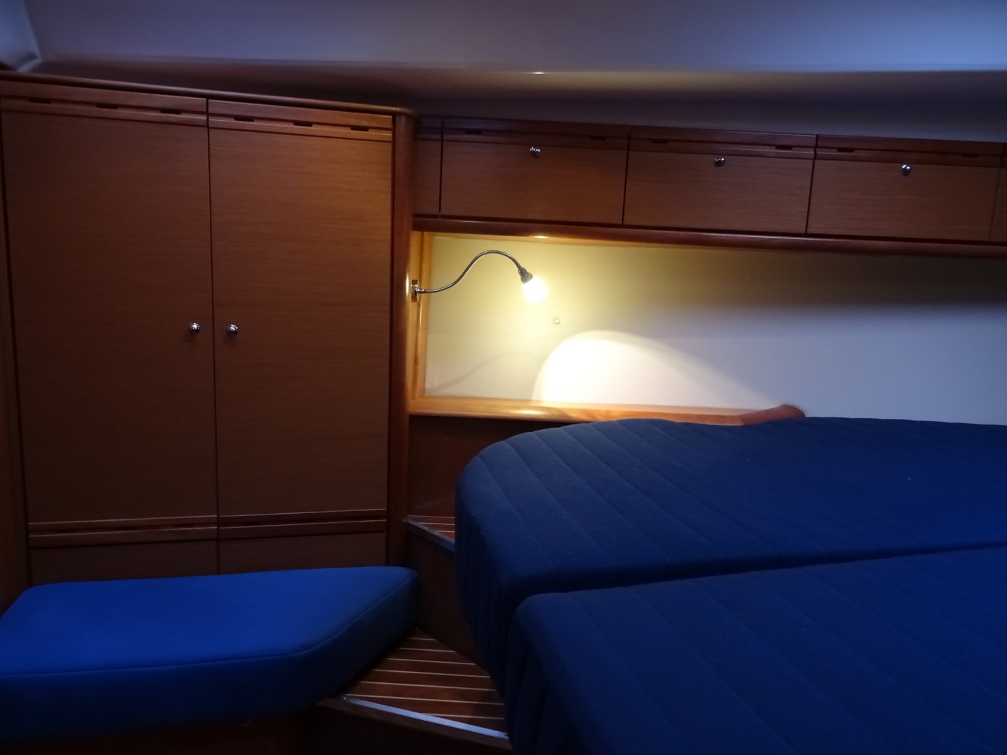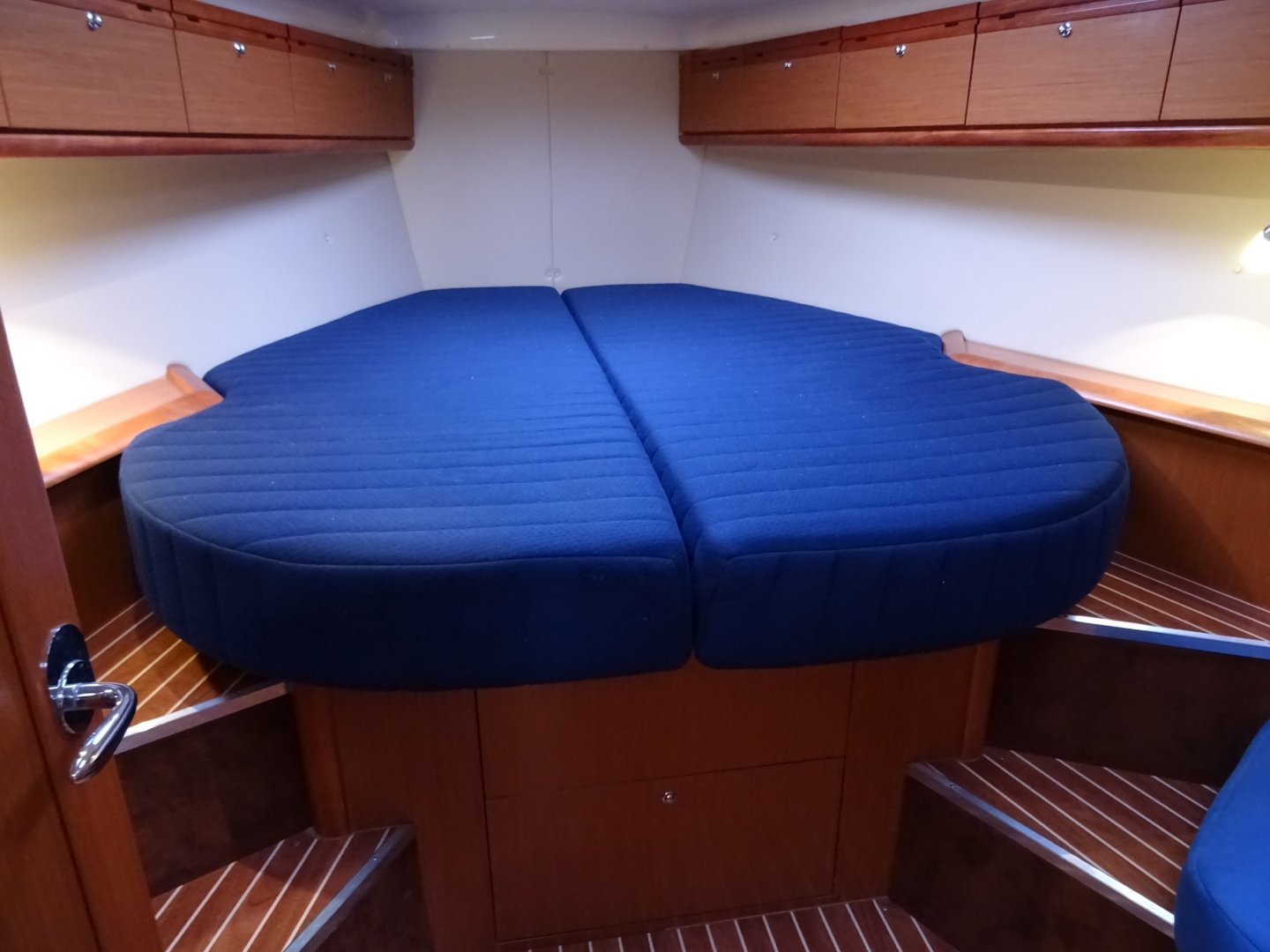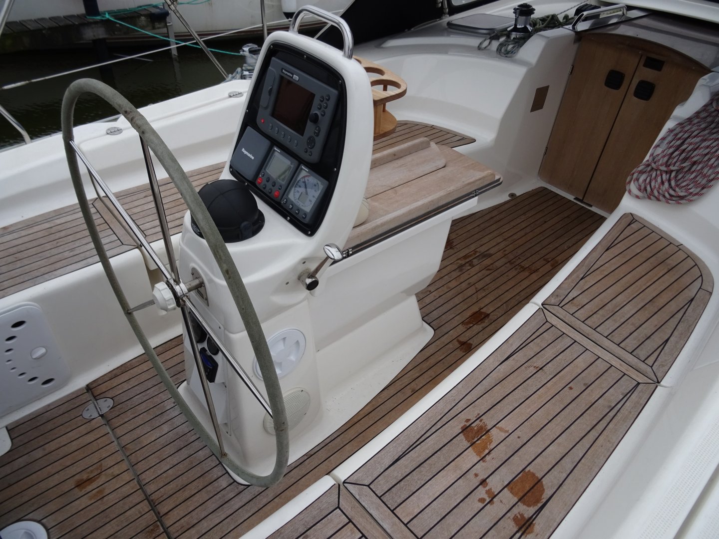 Reserve schroeven, dubbelzijdige cabriotent, fenderkorfen in railing, trappen in railing, buitendouche.