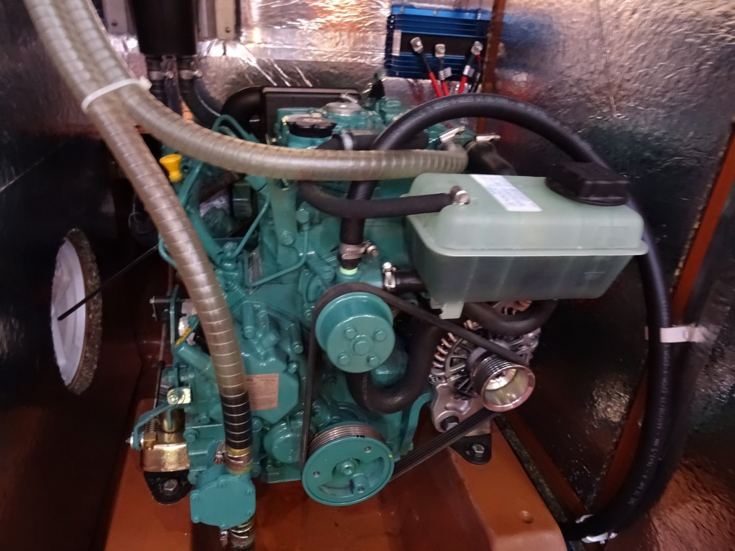 Tranenplaat in motorkamer, dubbel brandstoffilter met omschakeling.