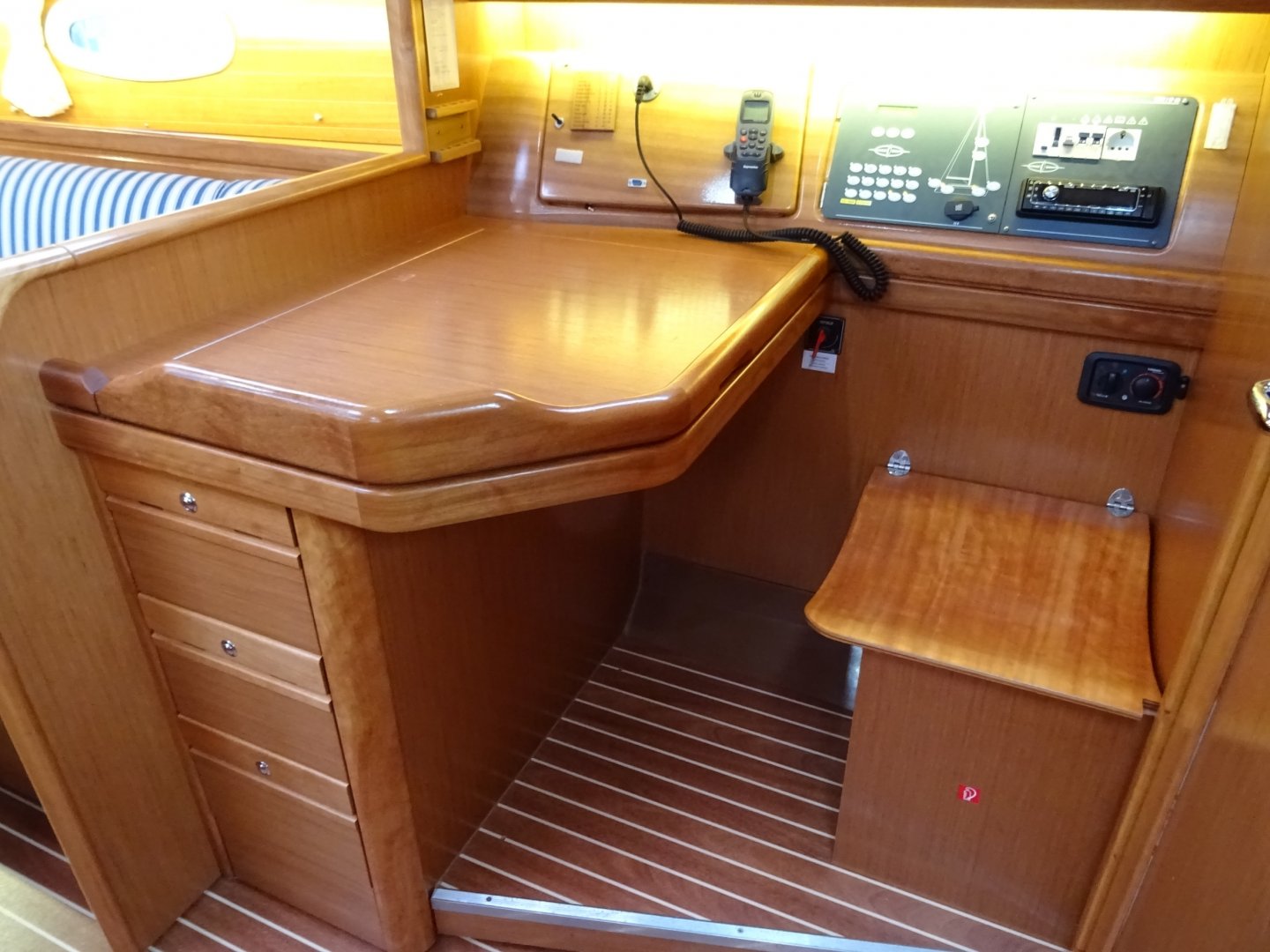 Zeer complete Bavaria 38-2. Eerste eigenaar. Klaar voor vertrek. Furlex, Furling, Rodkicker, Raymarine navigatie, buitendouche, kuiptafel, kuipspeakers, extra middenklampen, ledverlichting met dimmer, afdekzeil voor kuip, handgreep bij sprayhood, MP3 speler, verwarming, boiler, 2 vouwfietsen. Nieuwprijs €147.000,--