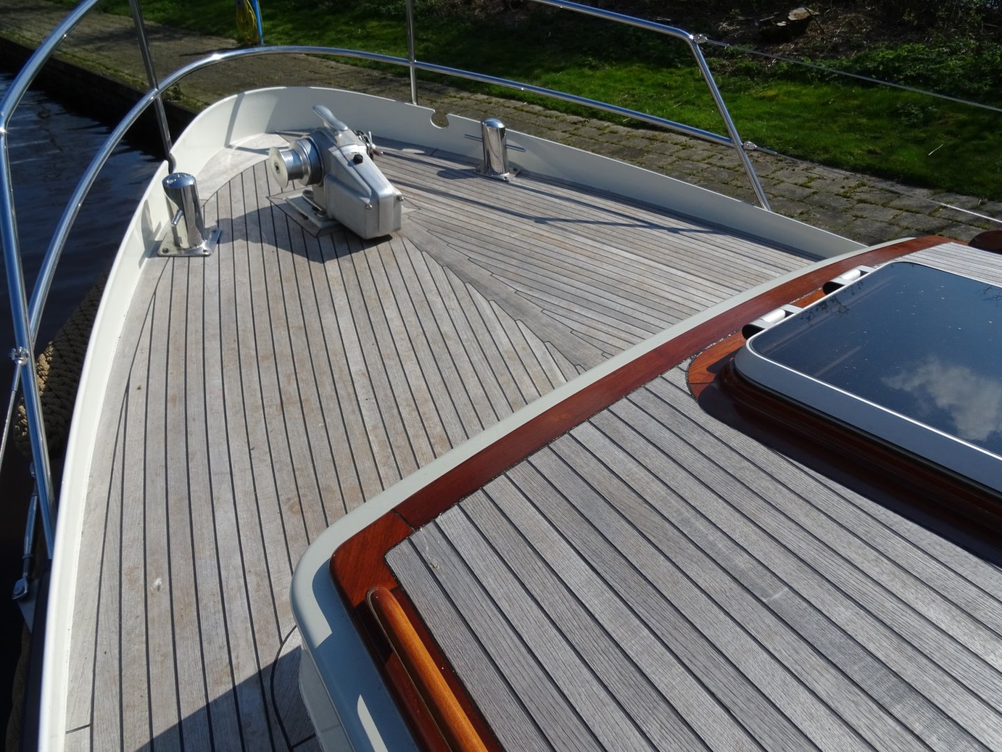 Slechts 1200 draaiuren. Werkelijk prachtig onderhouden Valkvlet. Dit schip heeft altijd in een schiphuis gelegen. Het interieur is keurig en u ziet nagenoeg geen aantasting door zonlicht. De Valkvlet kenmerkt zich als veelzijdig jacht omdat ruim water en het binnenwater goed te bevaren is. Lage doorvaarthoogte, zeewaardig, geringe diepgang. Droogvallen is mogelijk. U kunt binnen sturen en het grote salonluik openen of met de elektrische bediening in de kuip buiten staan. Dit schip heeft een ruime open kuip, prettige meevaar zit met kaartenbak en een royale natte cel. Antifouling september 2016.