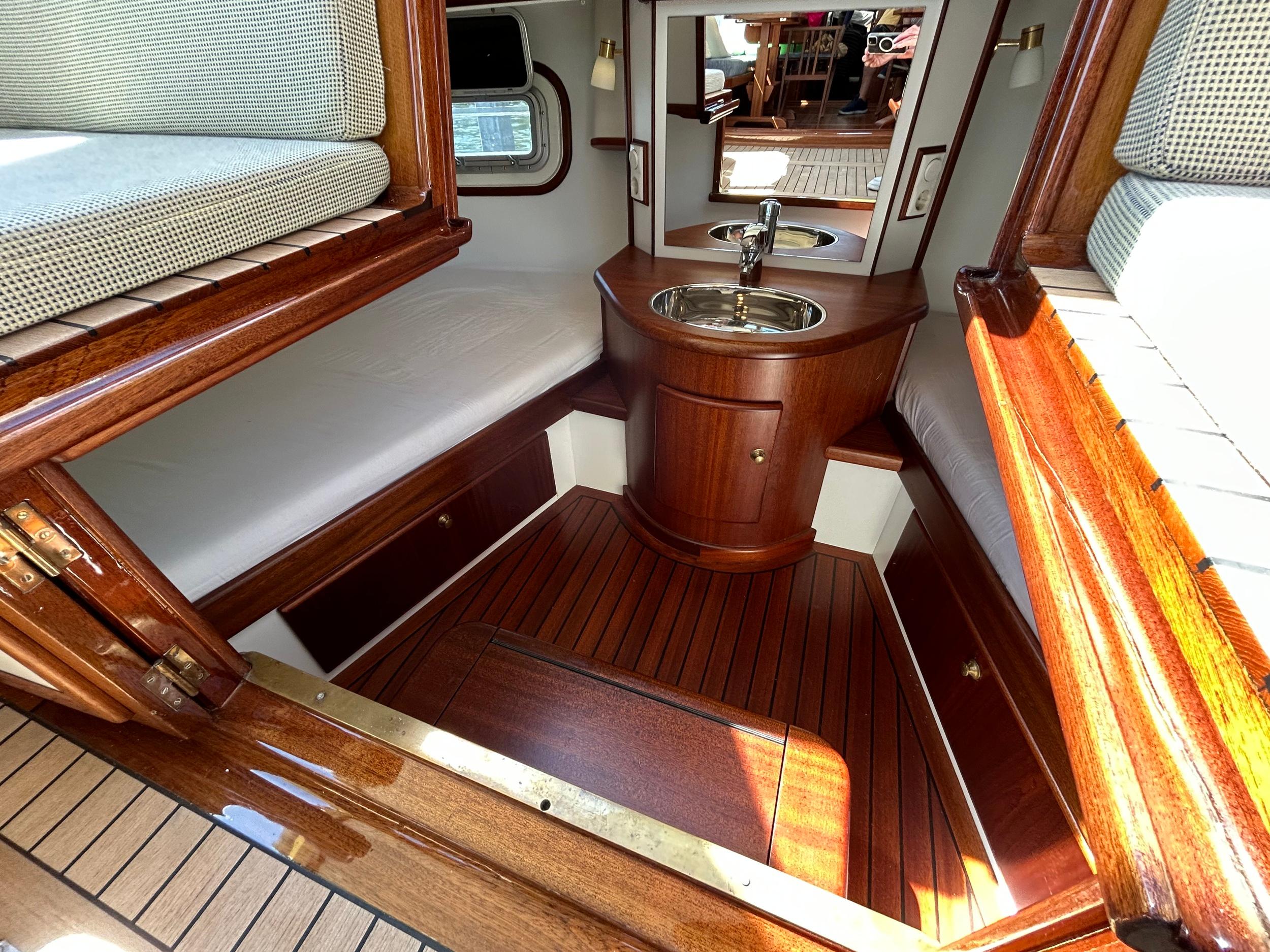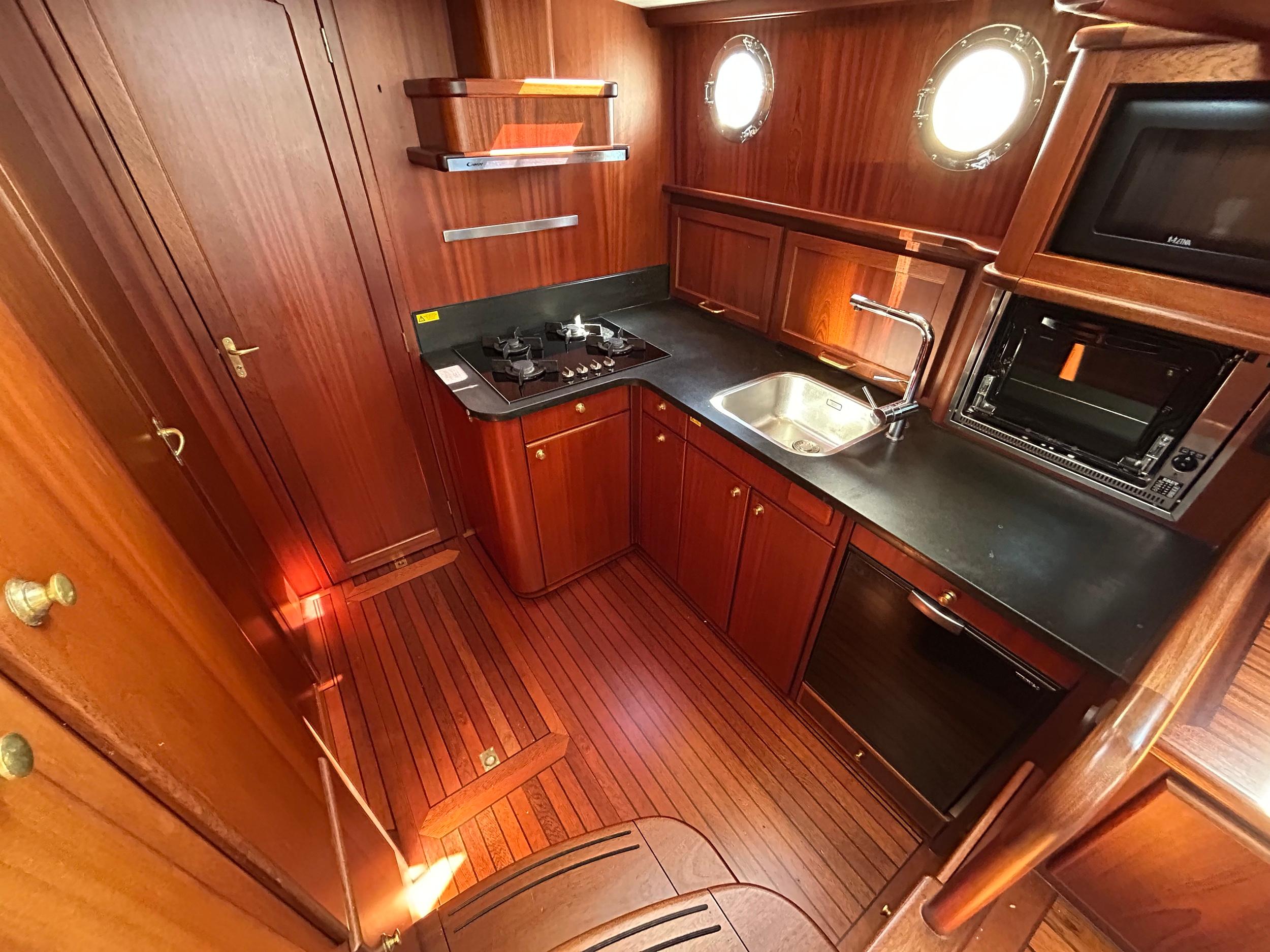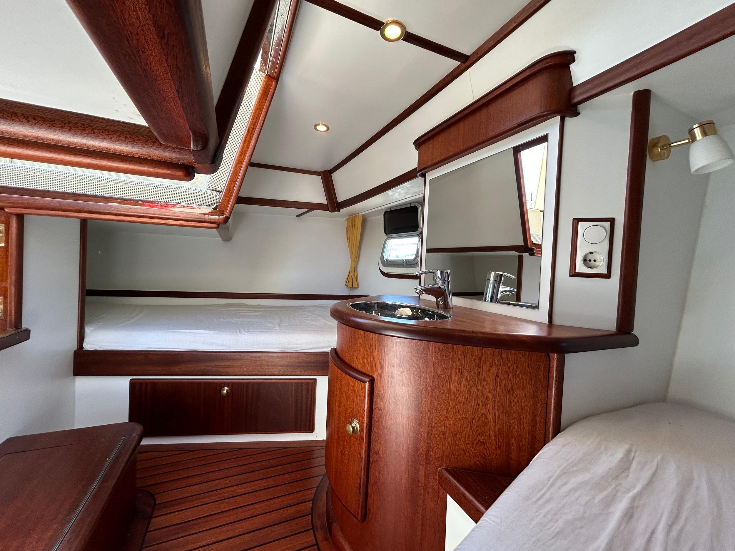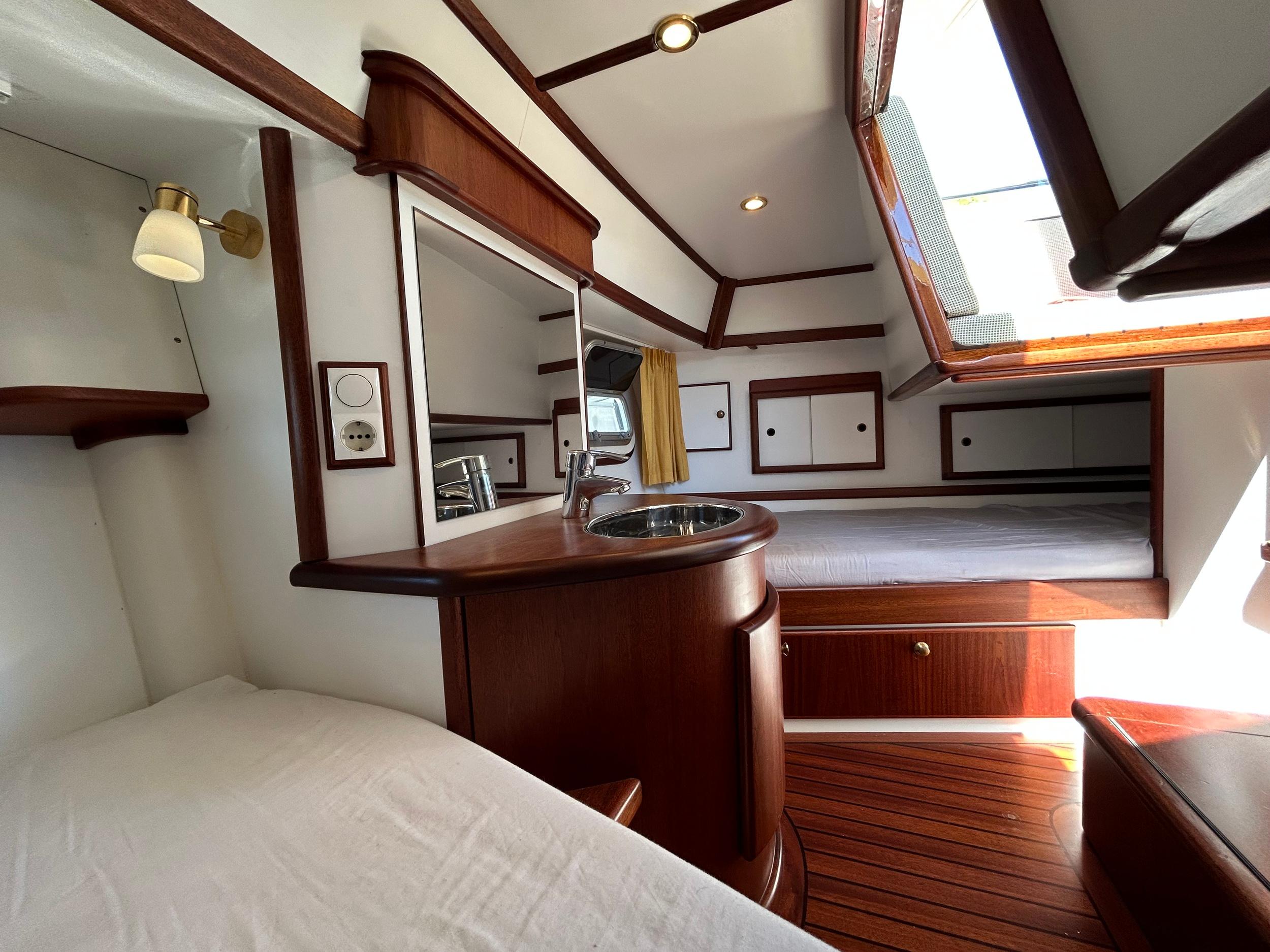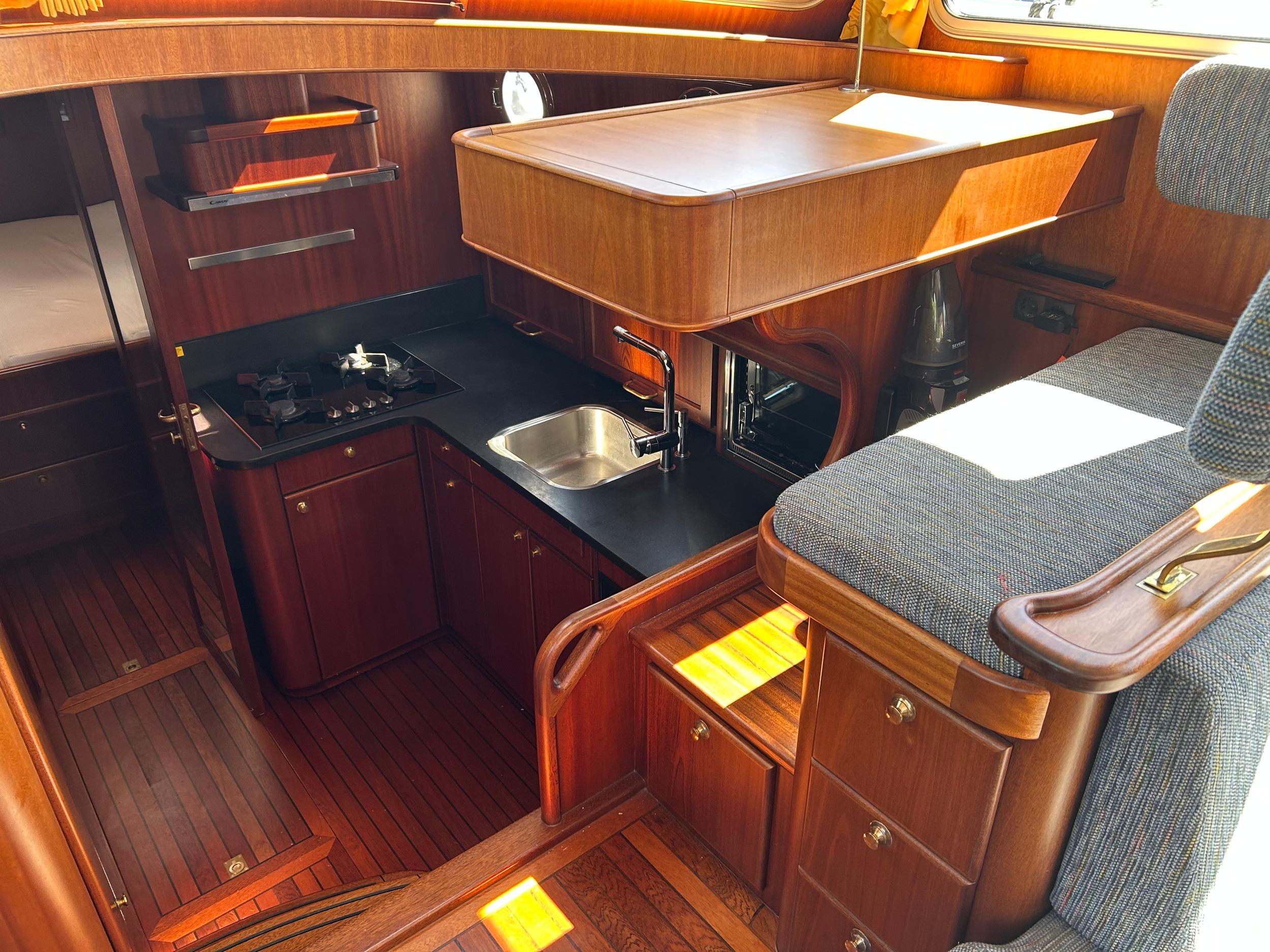 Onder andere uitgerust met; 210 PK Deutz met elektrische motorbediening, boeg- en hekschroef voorzien van RMC control (ook voor ankerlier en hydraulische maststrijkinstallatie), dubbele railing met zij-instappen, thermopane beglazing, groot salonluik, teakdek met vissing en verhoogde lijfhouten bij luiken, zonnepanelen, dubbele bolders, doorgestoken kuipdak, verborgen achterhut, buitendouche, generator, volledige navigatie inclusief AIS en radar, dubbel brandstoffilter, mangat in dieseltank, dubbel wierfilter, keuken met 4 pits, oven/magnetron en afzuigkap, dubbele dynamo, massief houten vloerdelen op vlam gebouwd, was/droog combinatie, zonnepanelen.