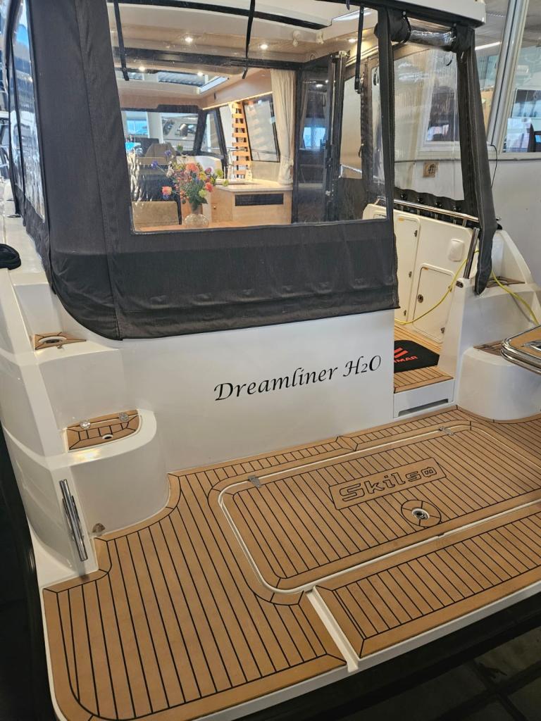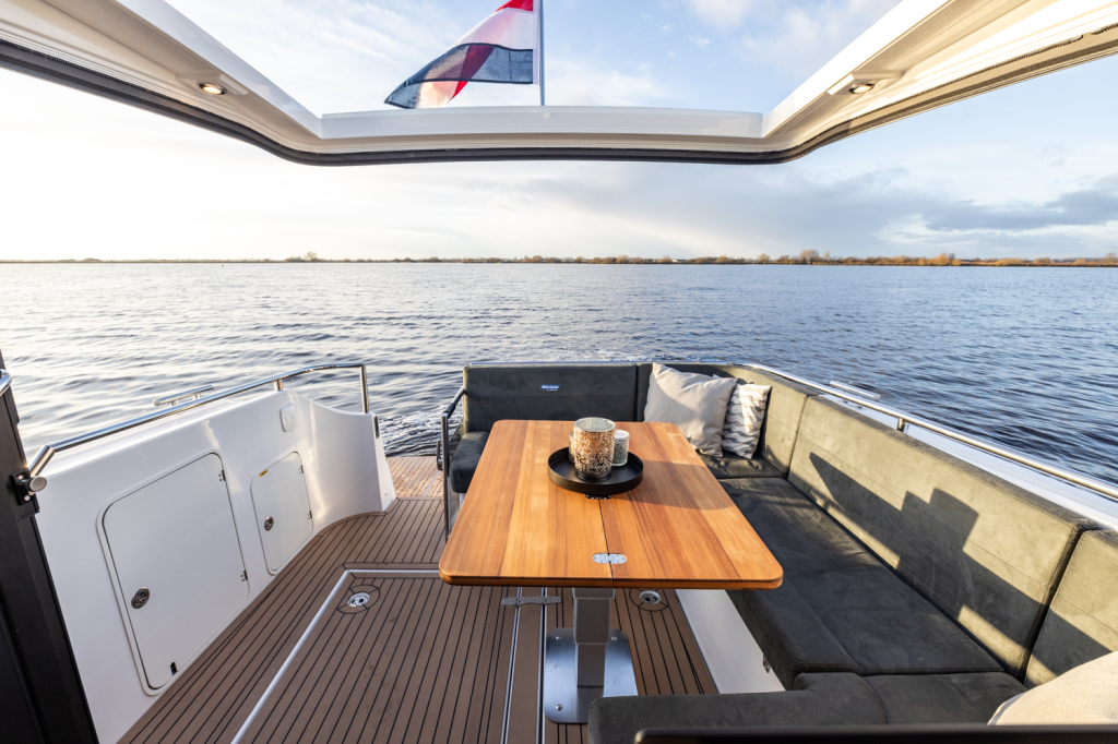 Buiten geniet je van een fraai en ruim zitgedeelte , perfect voor gezellige momenten op het water. Het royale zwemplatform biedt extra comfort en maakt het instappen of zwemmen eenvoudig en plezierig.
