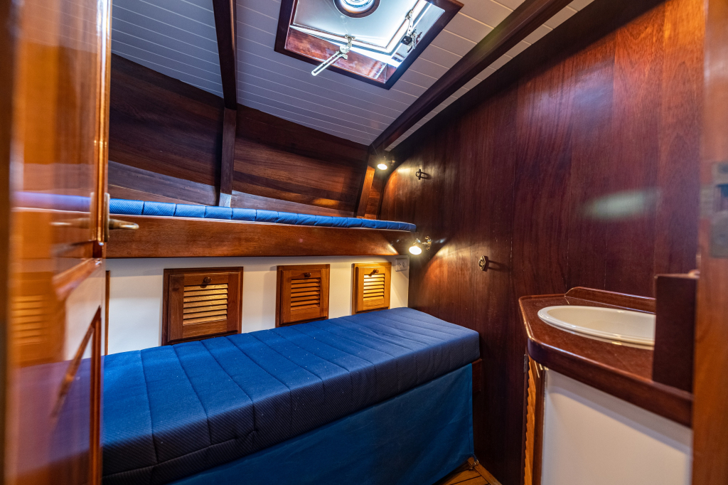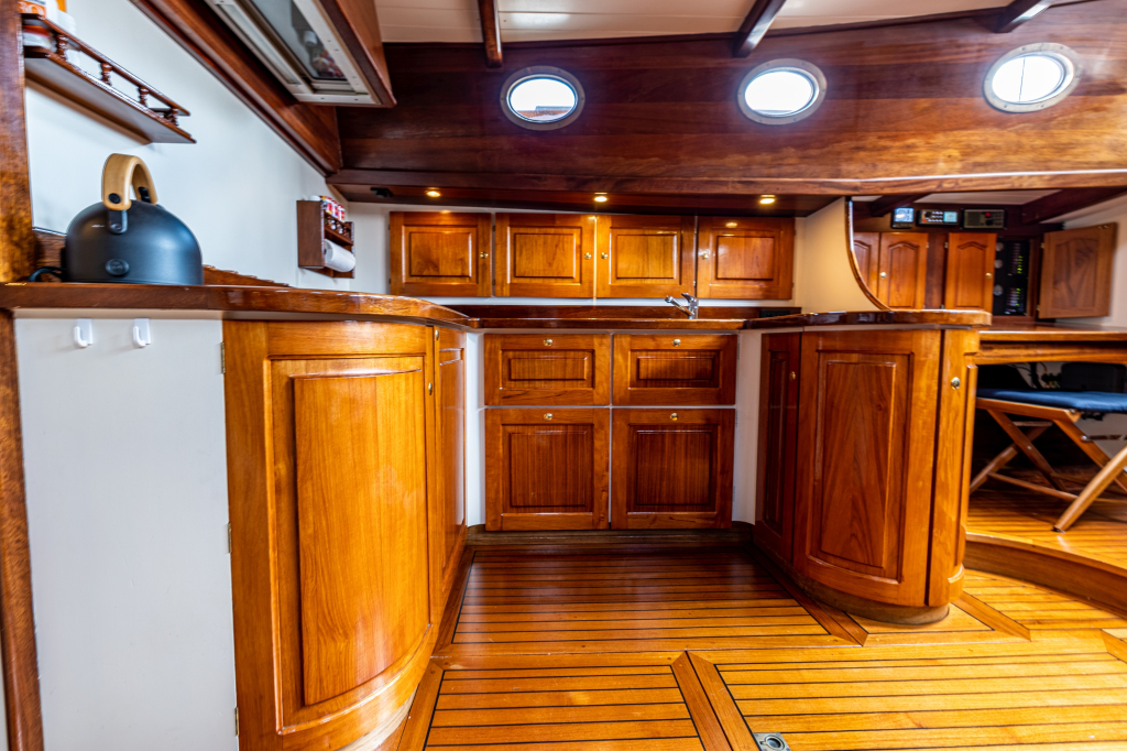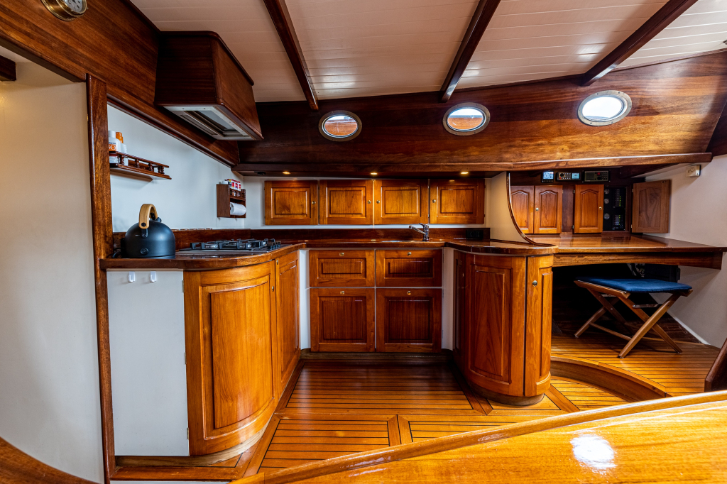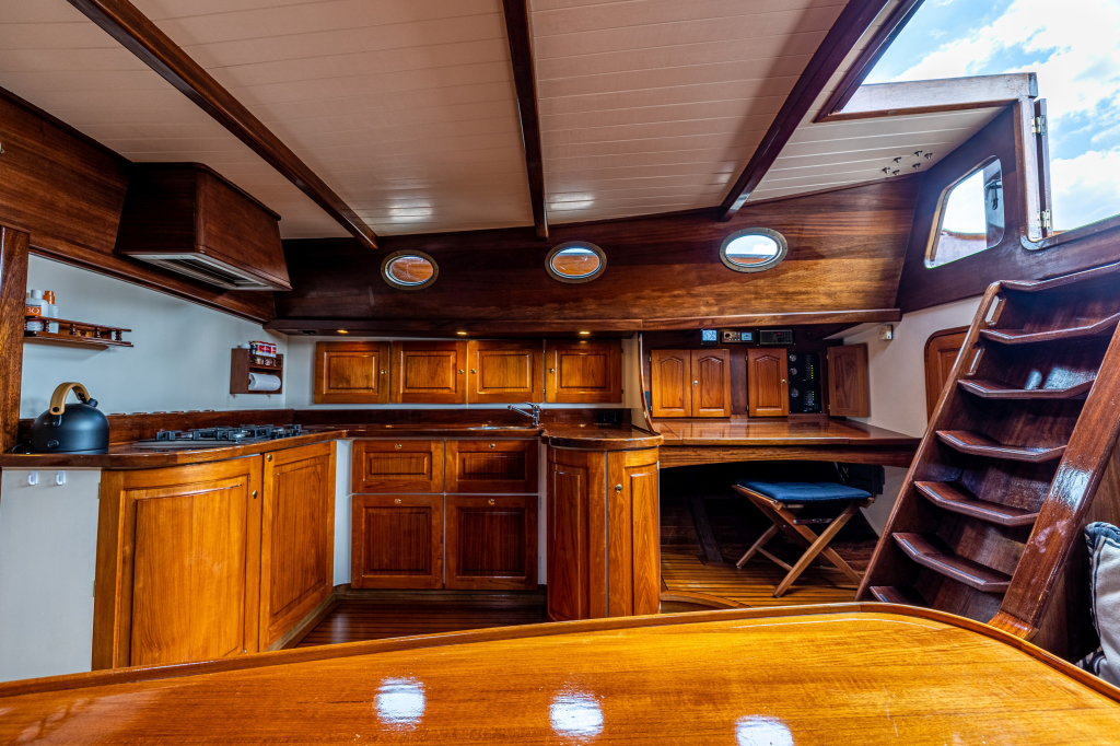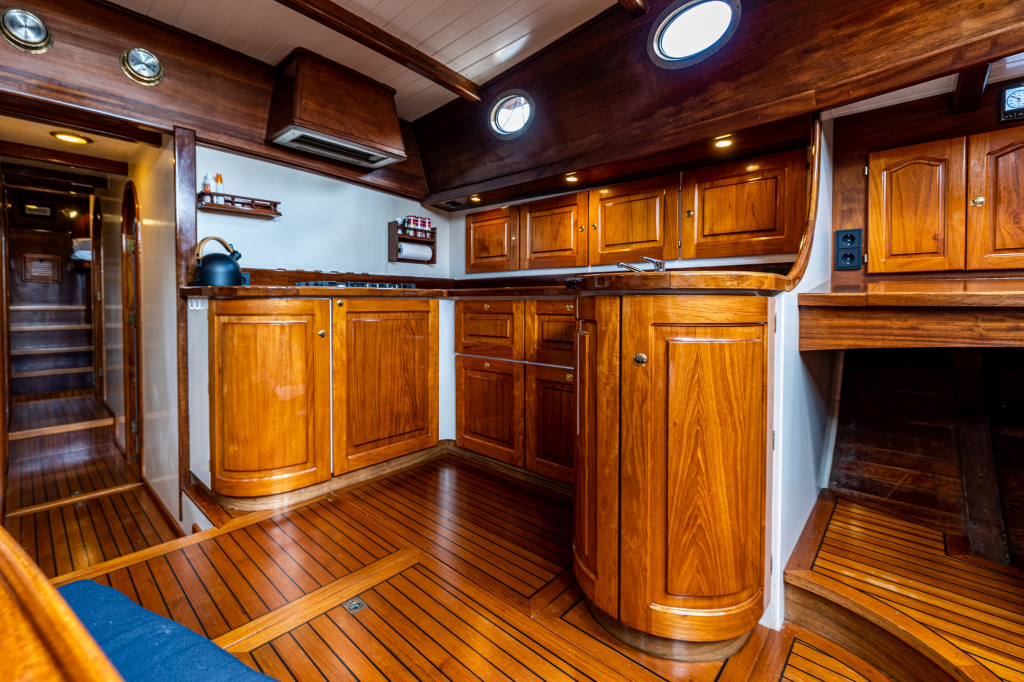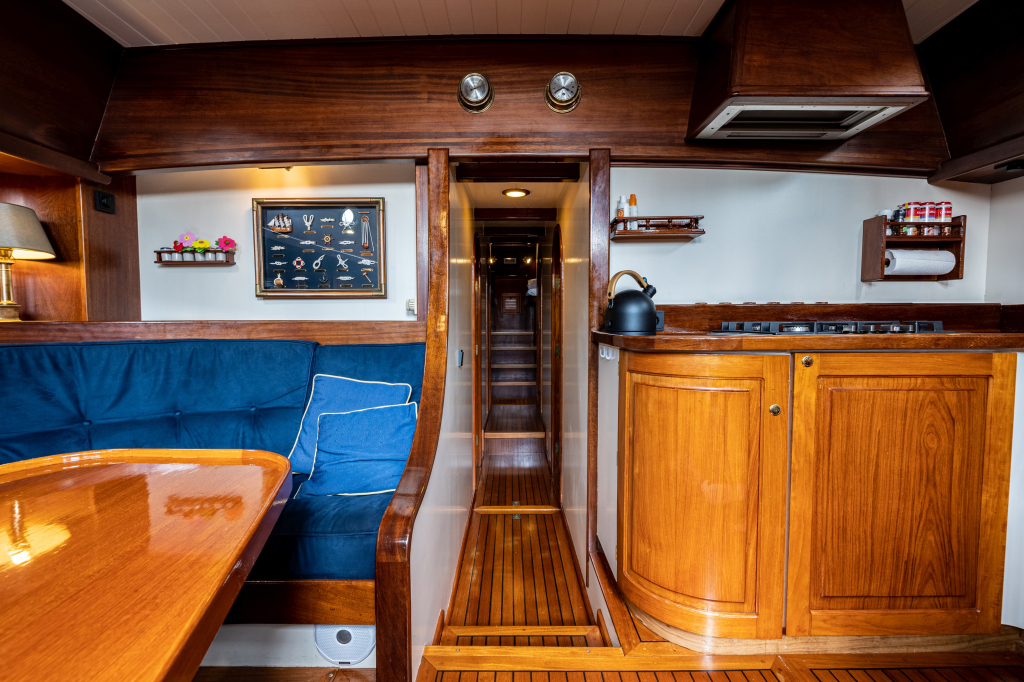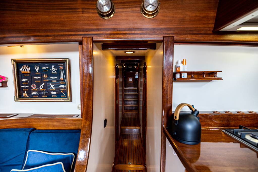 Een grote kuip, zeer ruime salon en kombuis en maximaal 10 slaapplaatsen zorgen ervoor dat de eigenaar en bemanning zowel tijdens korte tochten als langere reizen comfortabel kunnen verblijven. Zelfs met een kleine bemanning is het schip zeer gemakkelijk te zeilen en te manoeuvreren.
