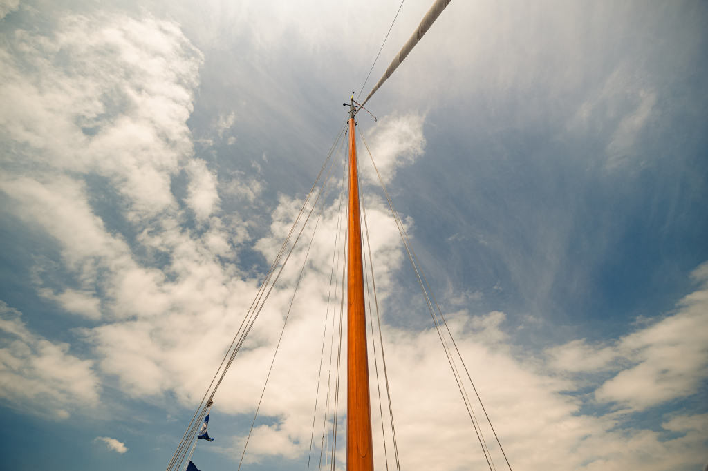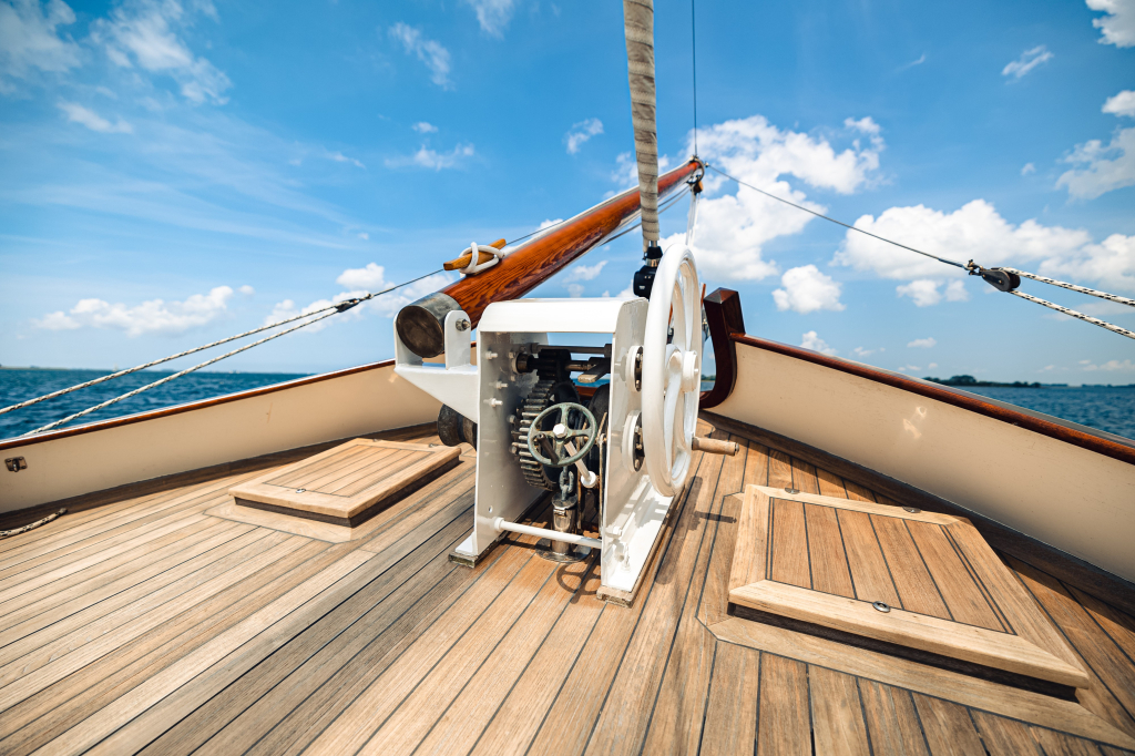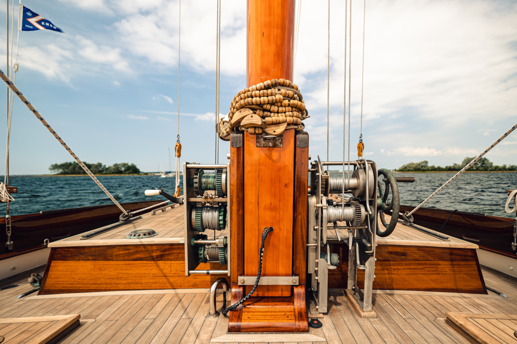 Grootzeilval en gaffelval kunnen worden gehesen via J.Y. lieren