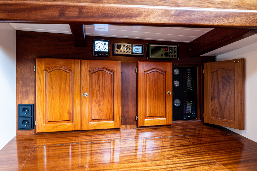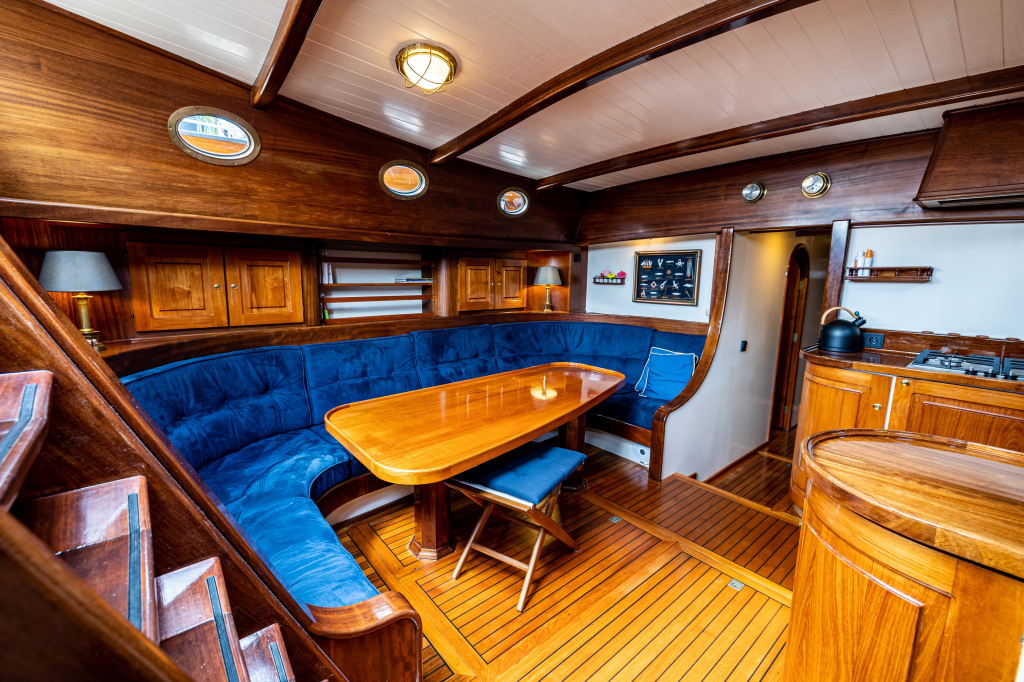 2023: nieuwe machinekamerverlichting, nieuwe houten (grijs geschilderde) vloerpanelen en nieuwe gasveren op het motorluik (in de cockpitvloer).