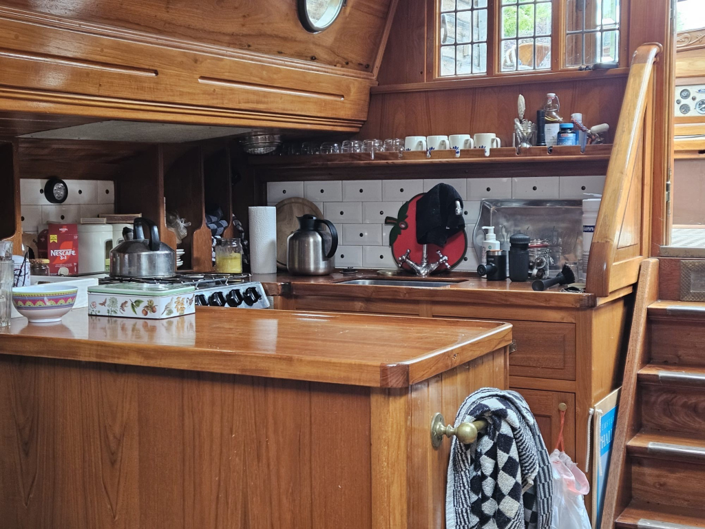De Halley (vernoemd naar de komeet) is een compleet en vaarklaar schip. Uitgerust met een Ford Lehman 96 pk diesel, gereviseerd in 2006. Het boordnet is uitgevoerd in 24 V. Met haar 14,53 m. lengte een fijn familieschip met voldoende privacy voor de opvarenden. Ook in de hutten is veel kastruimte.