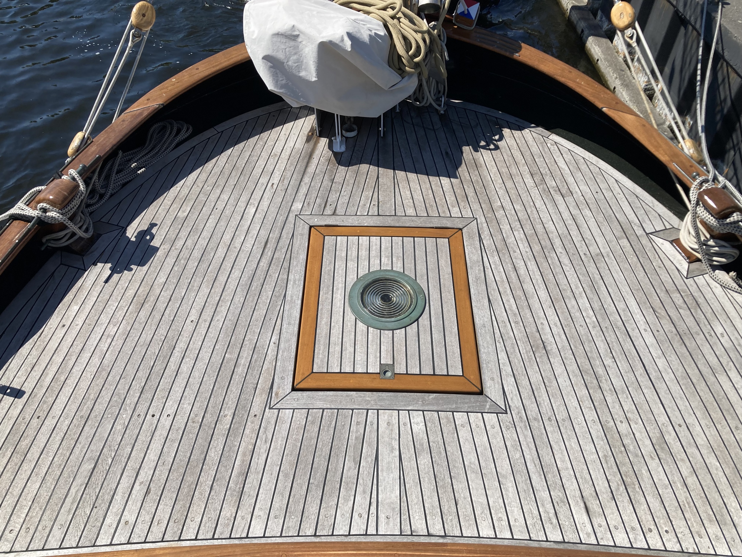 Het massieve teakdek is in 2021 voorzien van nieuw rubber en in 2024 is de opbouw geschilderd. In de kuip is in 2018 het teak langs de opbouw verwijderd en het staal opnieuw geconserveerd, daarna is er nieuw teak geplaatst.