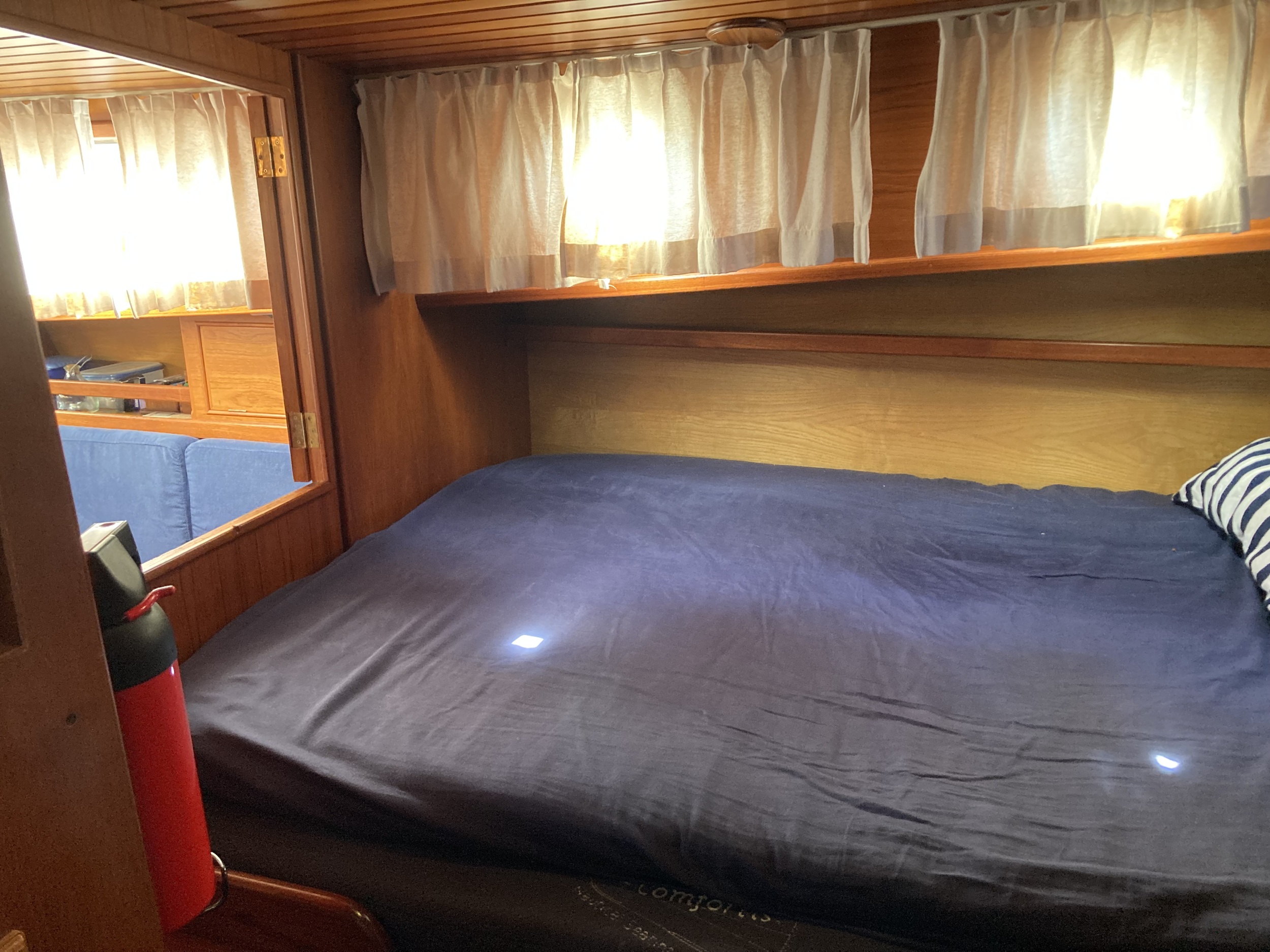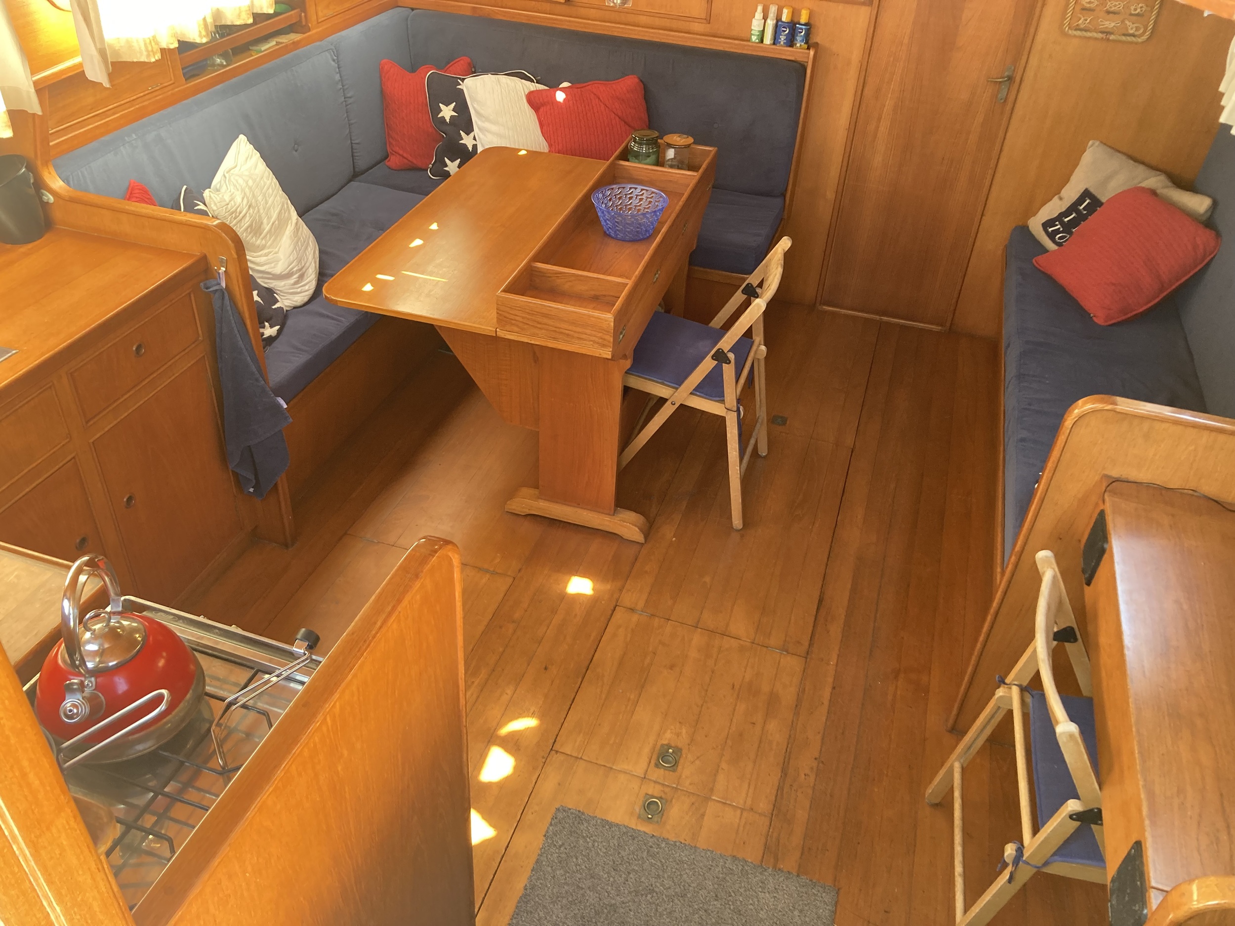 De aak heeft een sfeervol en praktisch ingedeeld interieur. Prachtige massief teakhouten vloerdelen, een kombuis met 3 pits gascomfort, een oven en grote koeling. De salon geeft zitplaats aan 6 tot 8 personen. In het voorschip is een mastercabin met 2 persoonsbed en hangkast. Er is aan stuurboord een elektrisch toilet met douche. In de voorkajuit is een gastenhut met 4 bedden.