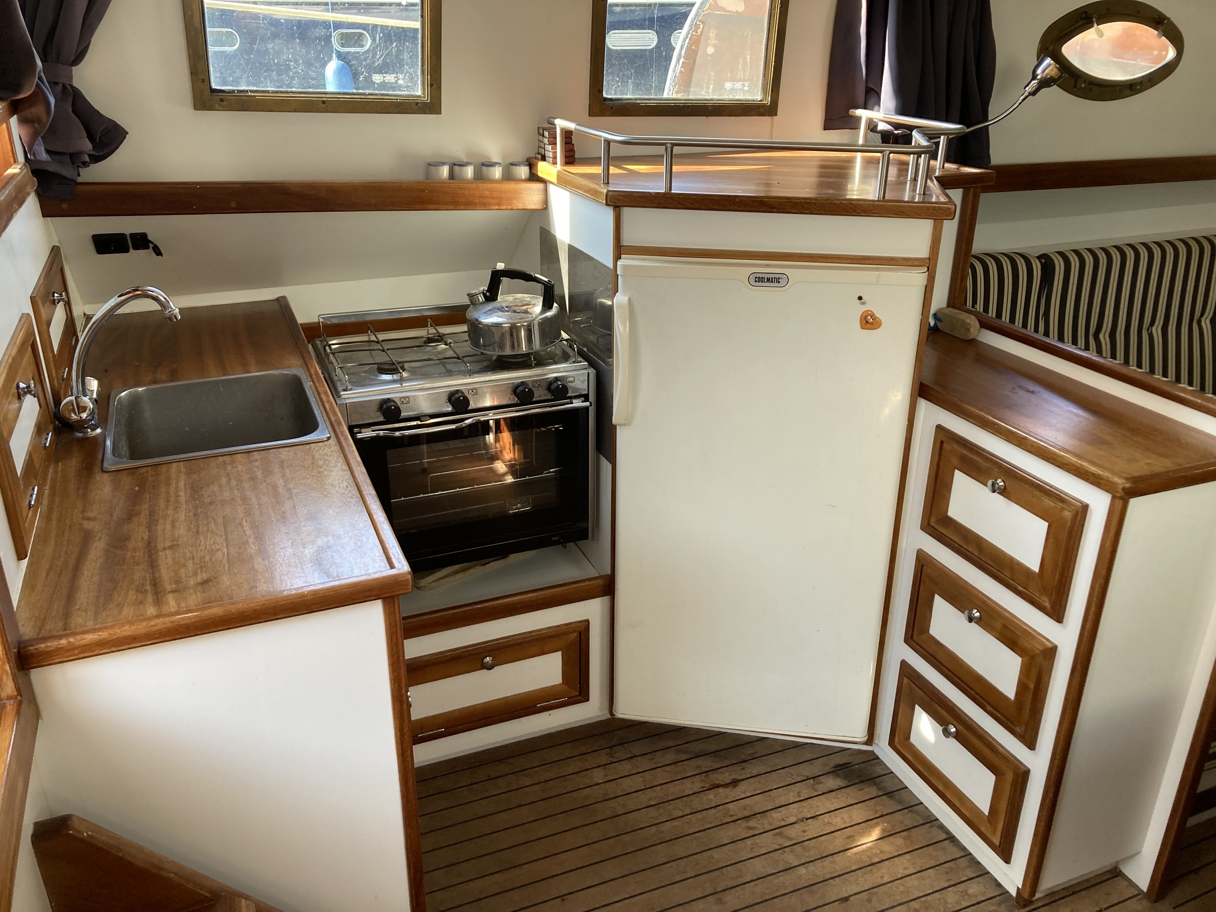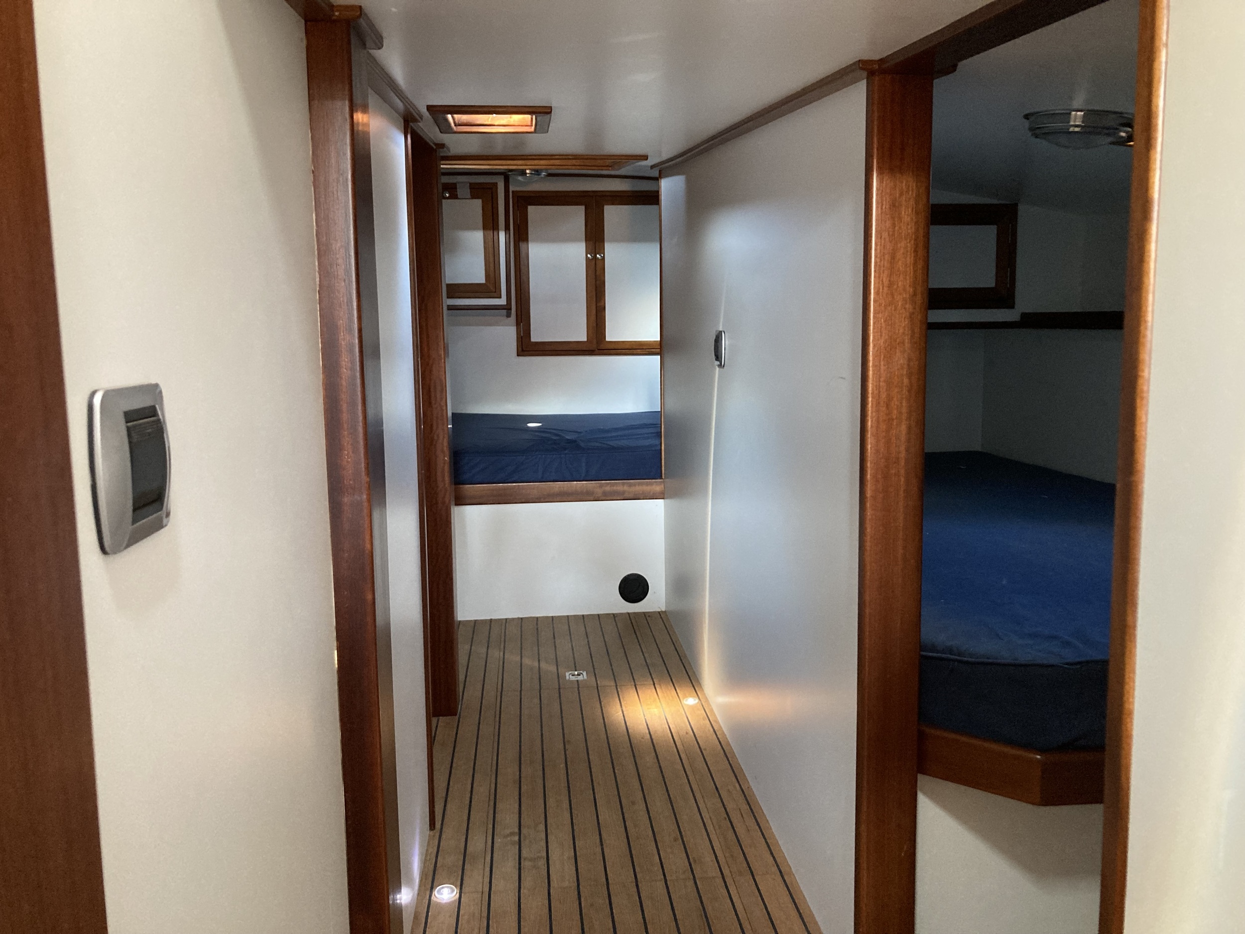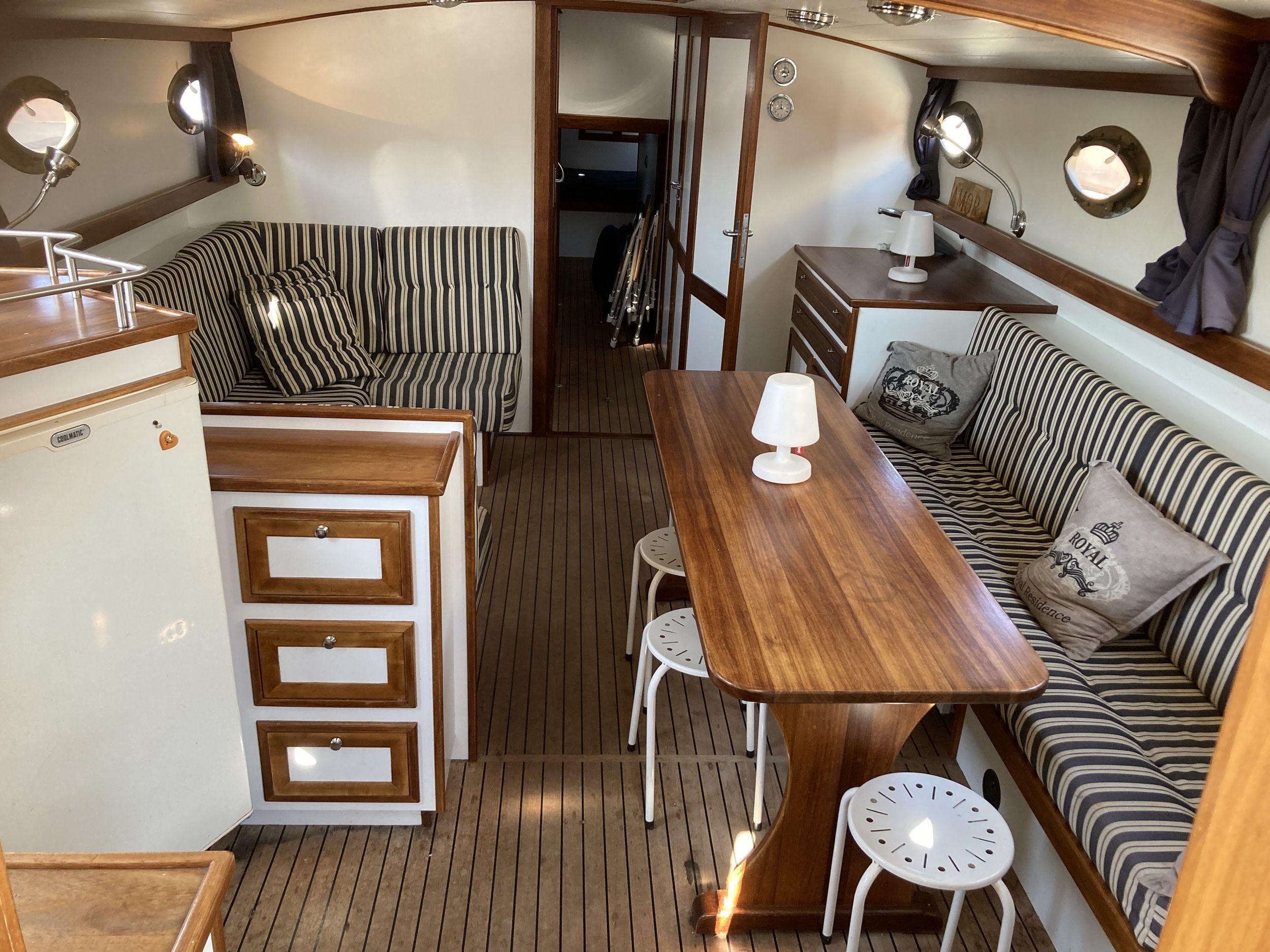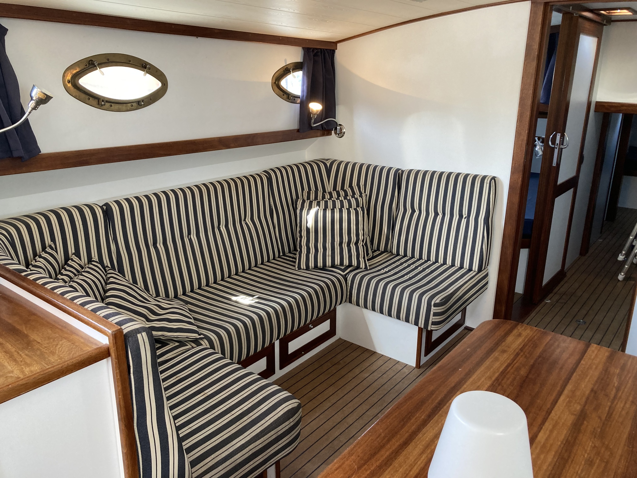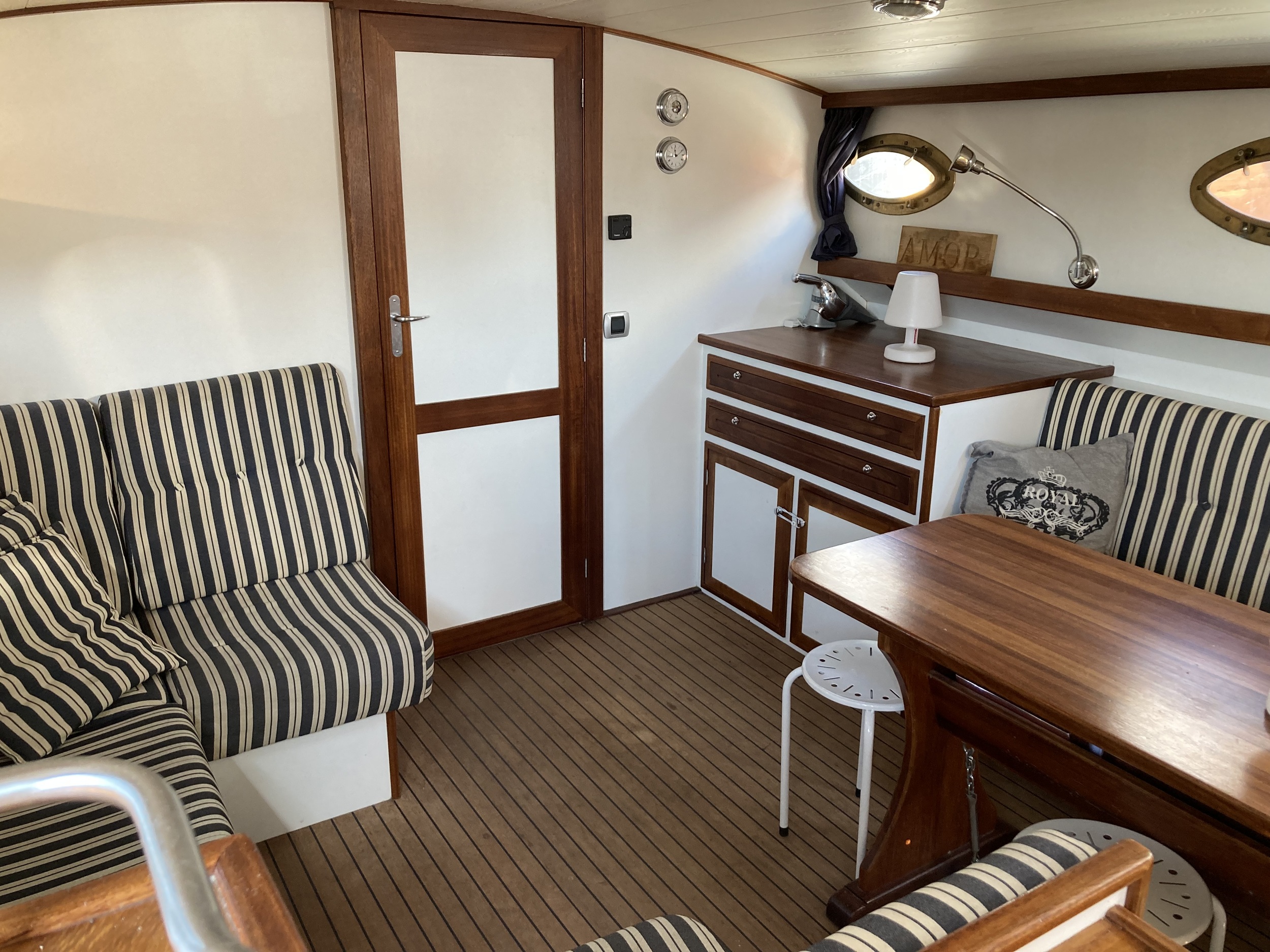 Zeer ruime en comfortabele Paviljoentjalk, casco herbouwd in 1998 en voorzien van een compleet nieuw interieur in de periode 2000/2005. Zij is voorzien van een centrale kombuis en een ruime en gezellige salon met eet- en kaartentafel, een “U”zitbank voor 4 personen en 2 hutten. Verder voorzien van 3 kooien voorzien van 2 douches en elektrische toiletten. De tjalk heeft van een CV installatie met radiatoren en stromend koud en warm water in de douche, toiletten, paviljoen en keuken.