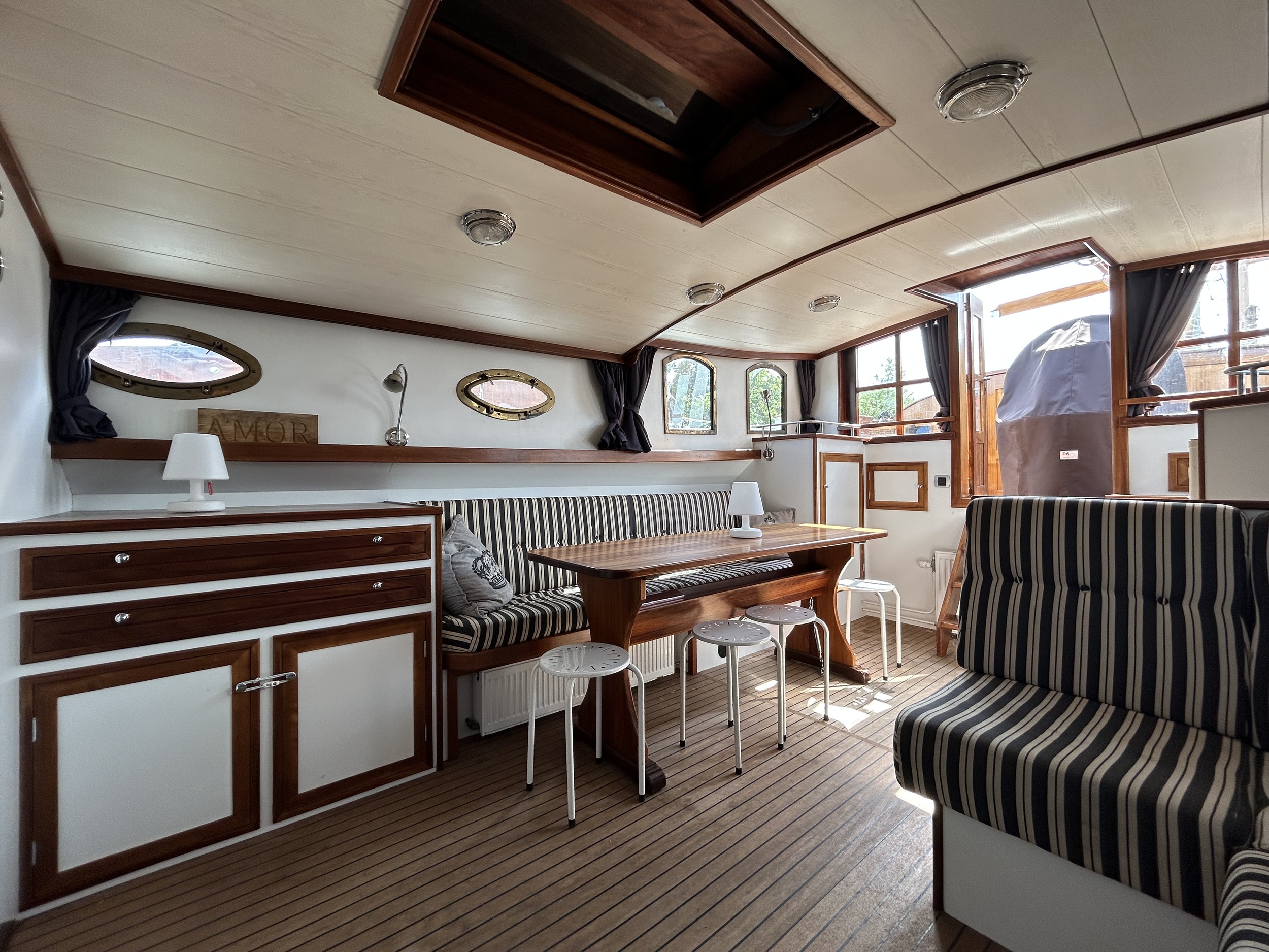 Sfeervolle Tjalk, geschikt voor lang verblijf of bewoning. Goed geïsoleerd. Nieuw opgebouwd in 2000/2005.