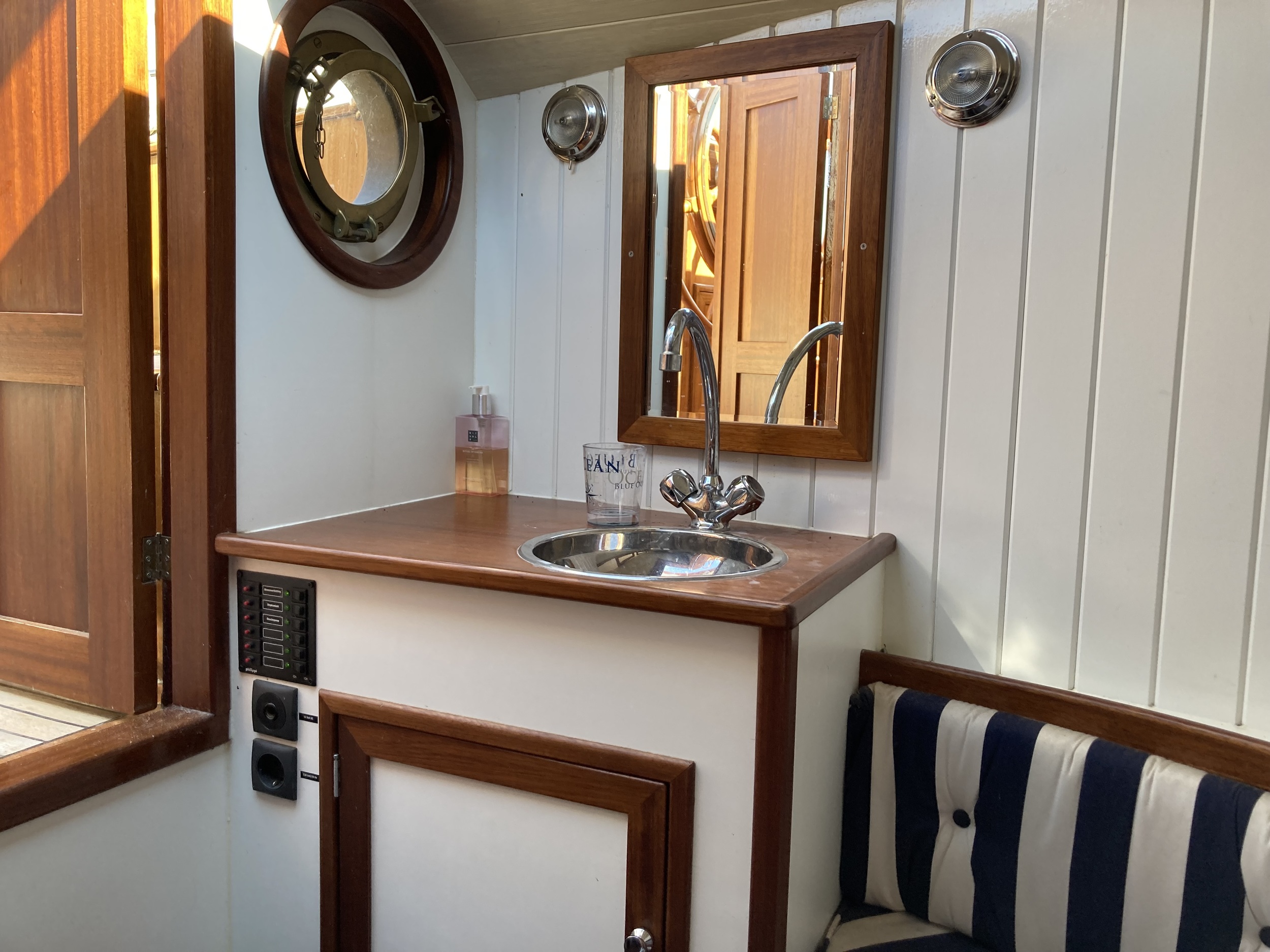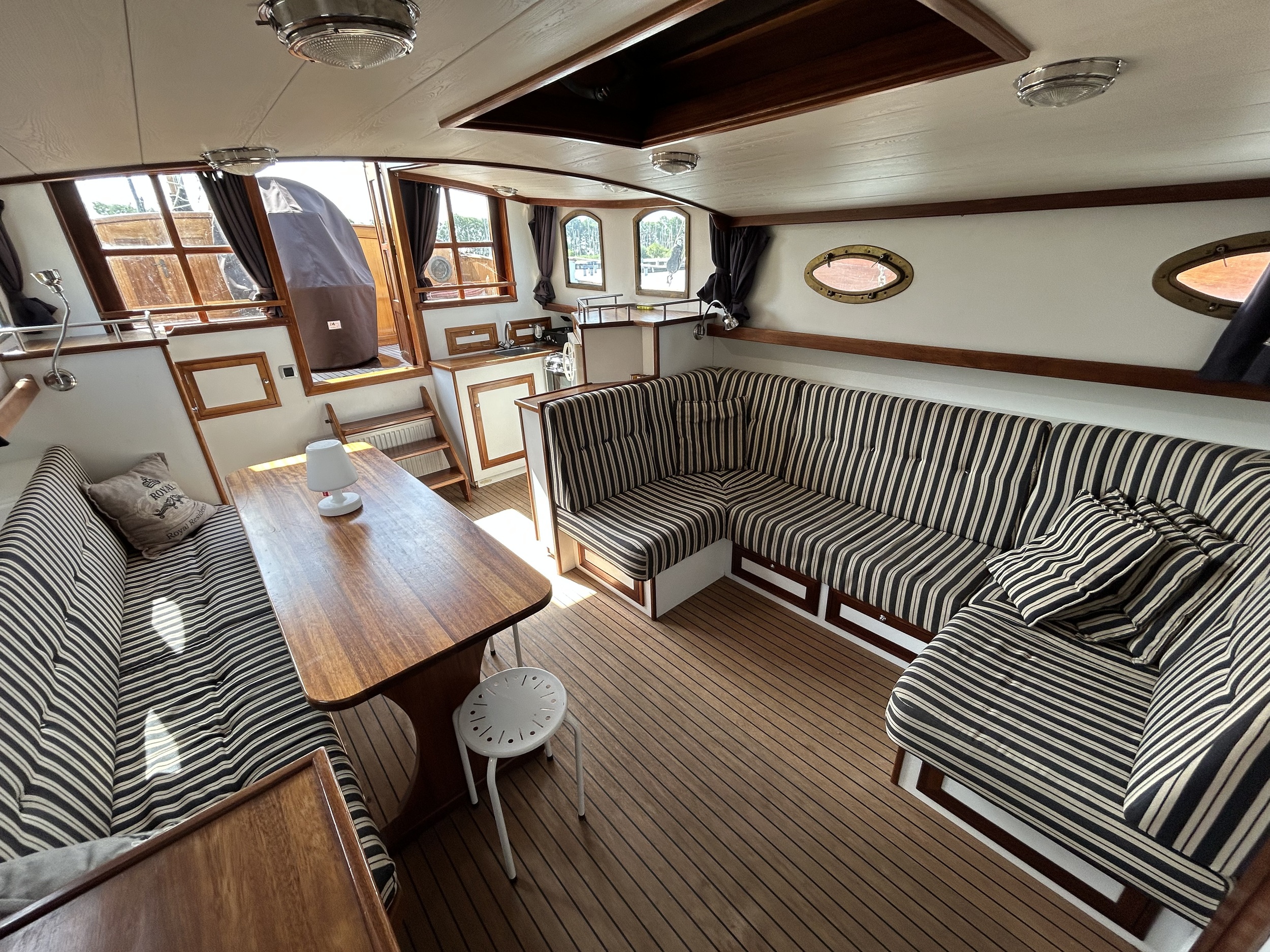 Met een handig tuigage systeem en de gering diepgang zijn de zowel de binnen- als buitenwateren eenvoudig toegangkelijk. Deze luxe Paviljoentjalk is comfortabel gebouwd en de binnenwanden zijn geïsoleerd, waardoor zowel een kort- als lang verblijf geen probleem is!