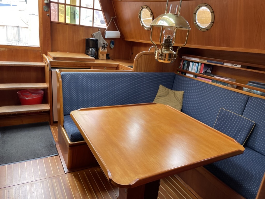 Roefaak met stahoogte in de hele roef. (1.95M) Het is een robuuste verschijning door de mat zwarte romp en blank teakhouten delen. Werkelijk prachtige roefaak van Blom uit 1993 met vele vernieuwingen. Het gehele schip is zeer goed onderhouden en verkeert in topstaat. Teak op dekken en in de kuip vrijwel als nieuw. Motorruimte ook als nieuw, met een Nanni Marine Diesel uit 2012 met slechts 825 uur! Bijzonder schip en in deze staat een buitenkans! Met 11,20 meter lengte en 4,10 breedte biedt de Tasser veel binnenruimte, met goede stahoogte (195 cm). Eigenaarshut is een grote master bedroom over de gehele breedte van het schip. Geen kleine kooien of stapelbedden voor opstappers, maar een 2 persoonsbed in de roef en een bijslaper in de master bedroom. Lattenbodems met Neptune matrassen. Ruime natte cel met toilet en douche. Kombuis compleet met Isotherm koelkast met vriesvak, 4 pits kooktoestel (gas) en oven. Webasto verwarming. Het schip is zeer compleet, met de vrijwel nieuwe Nanni met indirecte, gesloten koeling. Schroefas voorzien van Maxprop. Elektrische boegschroef. Compleet dekbeslag met Lewmar self tailing schootlieren, LVJ vallier en LVJ zwaardlieren. Handige Modea elektrische handlier voor de vallen en zwaarden. Stuurwielbesturing met mechanische overbrenging. Bijzonder mooie, volledig weggewerkte hydraulische maststrijkinrichting. Onmisbaar in een gebied met vaste bruggen. Dit vergroot het toch al grote vaargebied van een Lemsteraak.