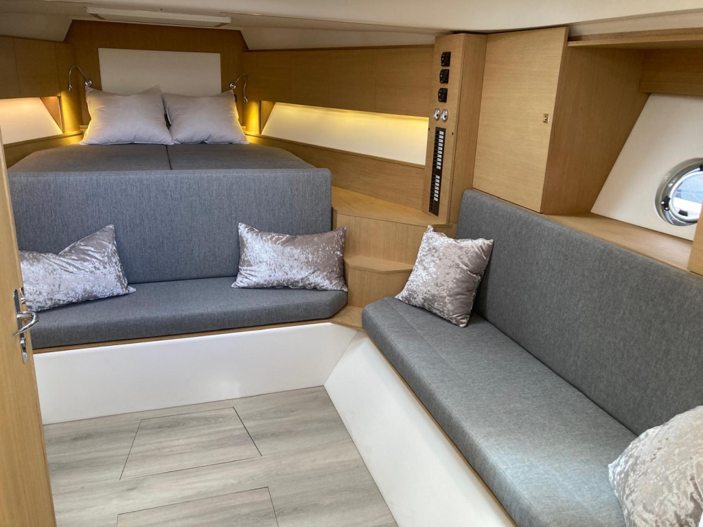 Aan boord geniet u van een slimme en praktische indeling die verrassend veel ruimte biedt. Het interieur is stijlvol afgewerkt en beschikt over vier volwaardige slaapplaatsen, waardoor deze boot perfect geschikt is voor meerdaagse tochten of vakanties met familie en vrienden.