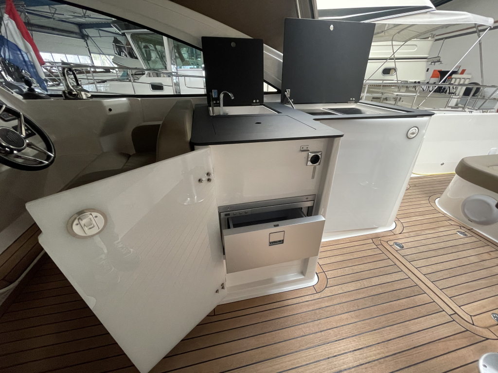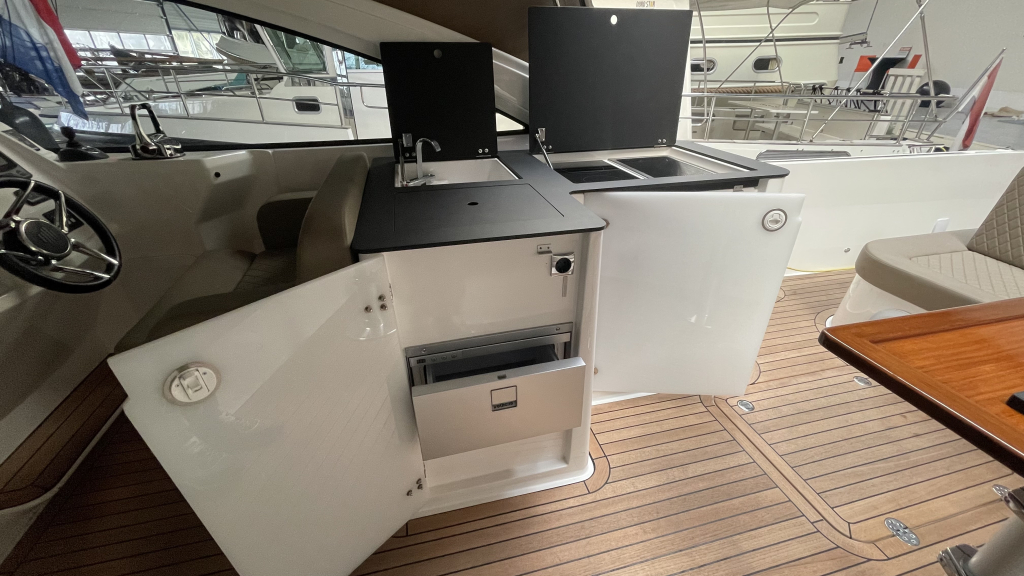Buiten vindt u een royaal zonnebed waar u heerlijk kunt ontspannen en genieten van zon en uitzicht. De buitenkeuken met grill maakt het mogelijk om aan dek te koken en te dineren – ideaal voor lange zomerdagen op het water.