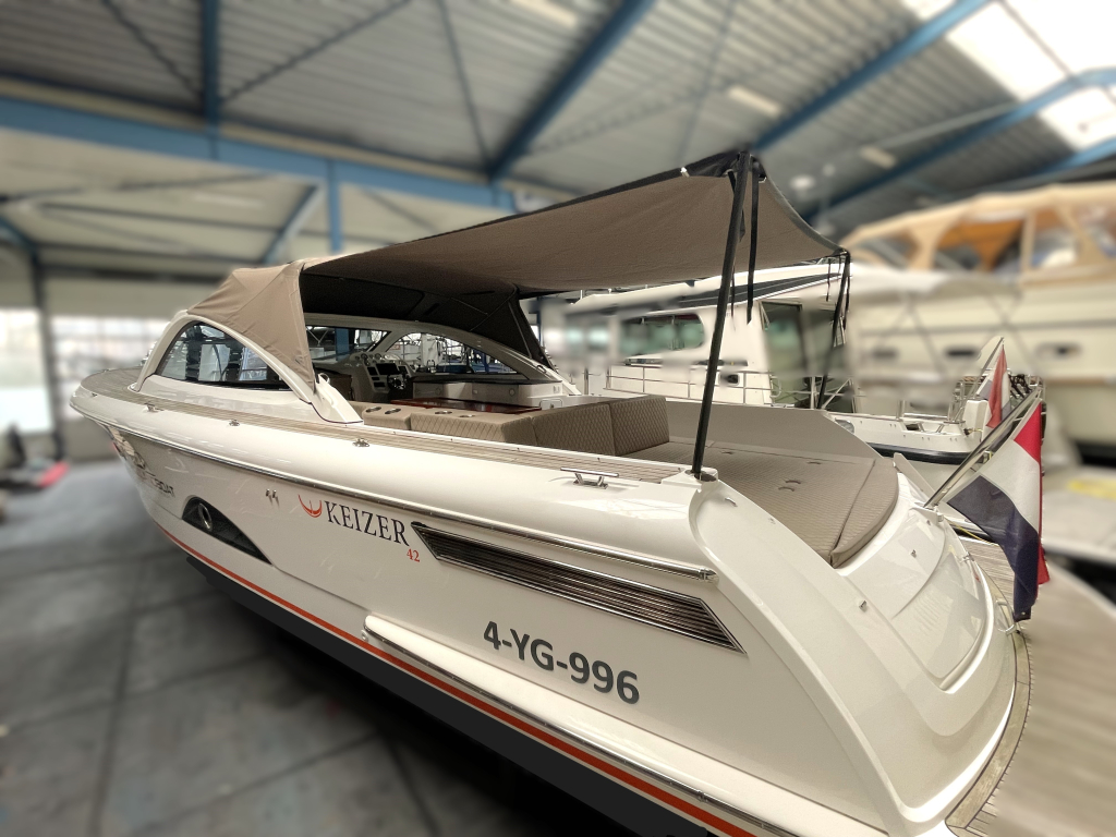 Deze prachtige Keizer 42 is een unieke en zeldzame verschijning die stijl, snelheid en comfort moeiteloos combineert. Met haar elegante lijnen en sportieve uitstraling trekt zij overal de aandacht – een echte eyecatcher voor de liefhebber die nét iets bijzonders zoekt.