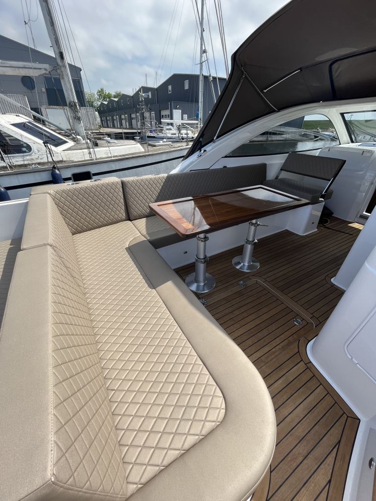Twee krachtige Yanmar V8 motoren met een gezamenlijk vermogen van maar liefst 740 pk zorgen voor indrukwekkende prestaties en een soepele, snelle vaart, ideaal voor zowel ontspannen tochten als sportief varen.