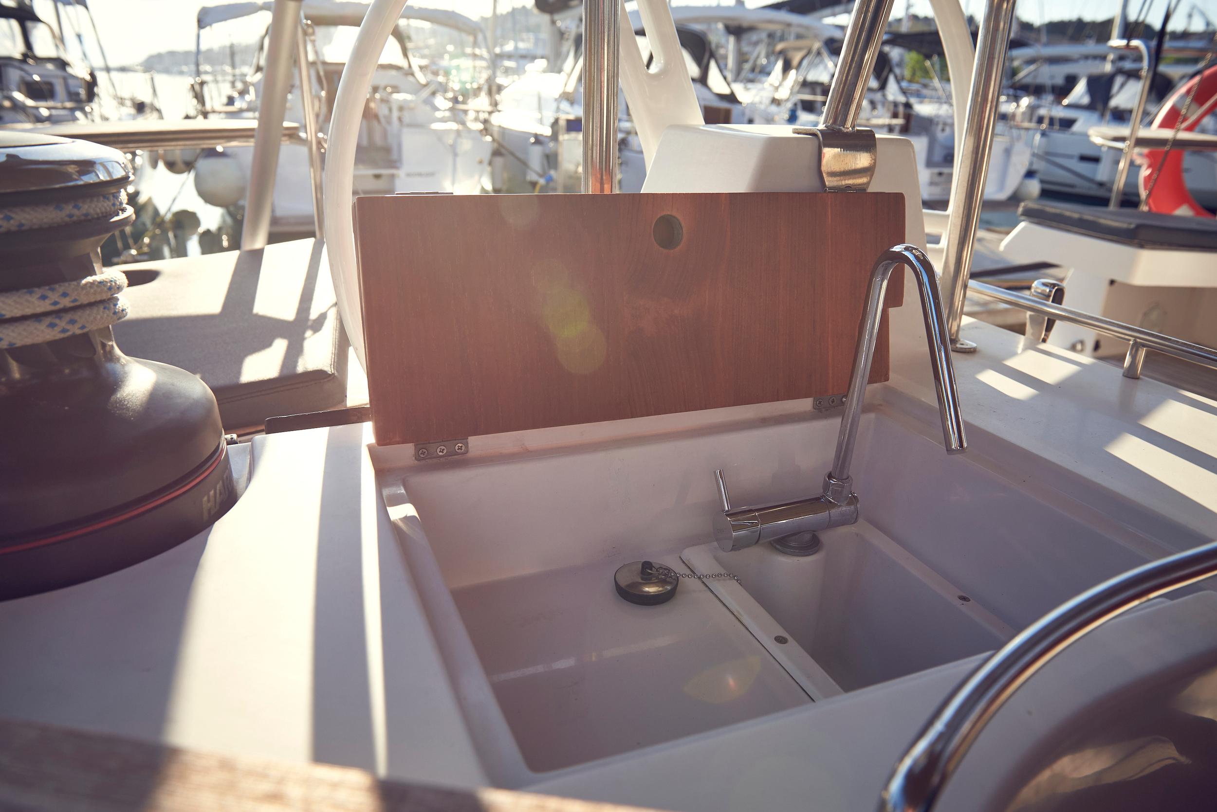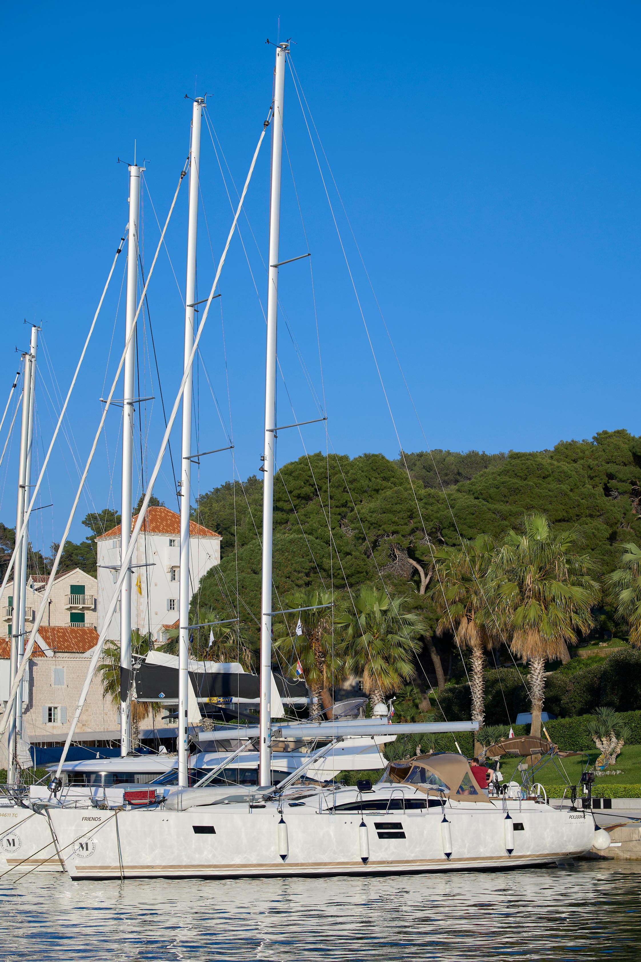 De Elan Impression 50 uit 2016 is een indrukwekkende 15,20 meter lange cruiser die luxe, ruimte en uitstekende zeileigenschappen combineert. Het ruime interieur, badend in natuurlijk licht dankzij grote panoramische ramen, biedt plaats aan vier hutten en een royale salon, perfect voor grote groepen of families. De kombuis is volledig uitgerust en ontworpen voor comfort tijdens langere tochten. Het ruime dek en de overzichtelijke kuip bieden voldoende plek om te ontspannen, met een groot zwemplatform als kers op de taart. De moderne romp en krachtige zeilen maken haar snel en wendbaar, terwijl ze ook stabiliteit biedt op open water. Een ideale keuze voor wie stijl en prestaties zoekt.
