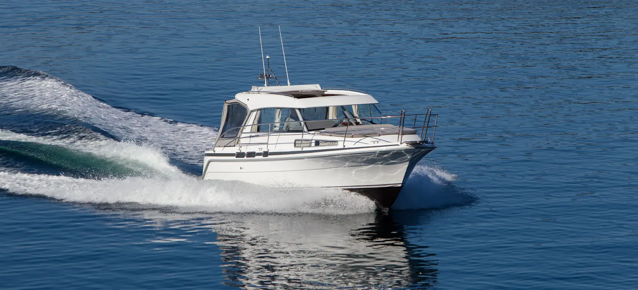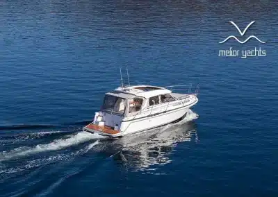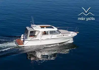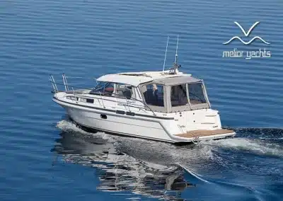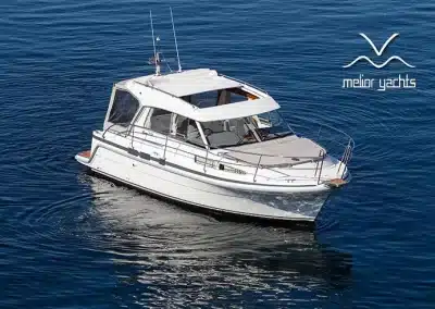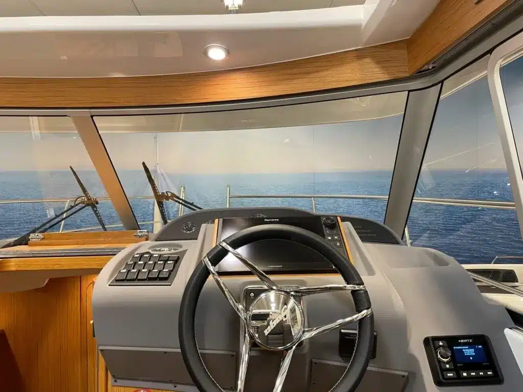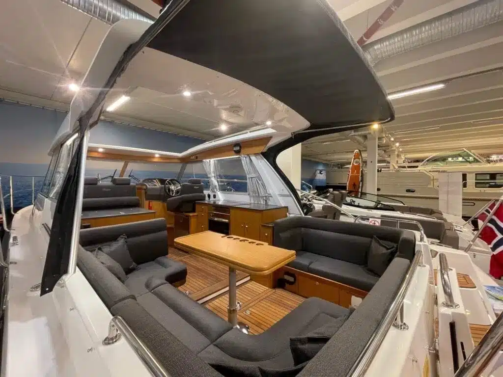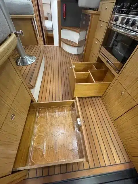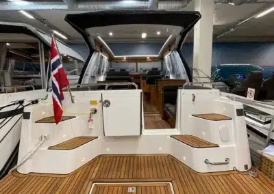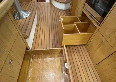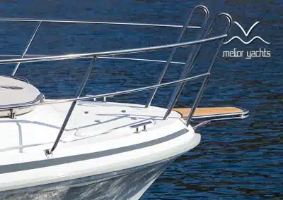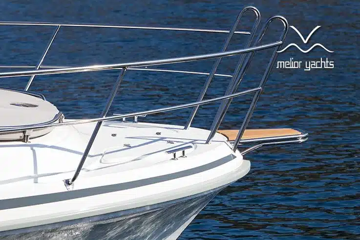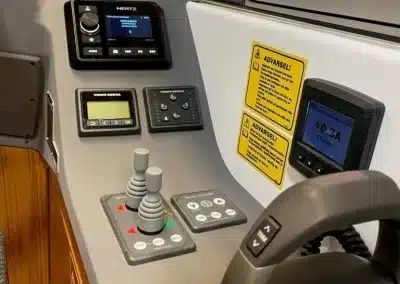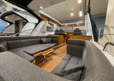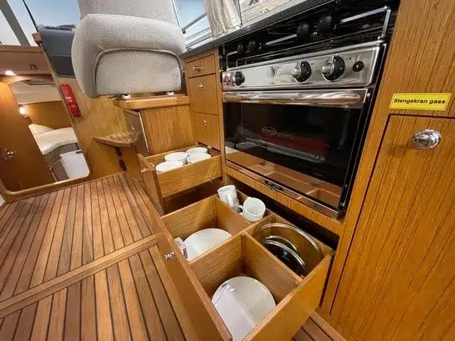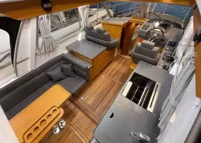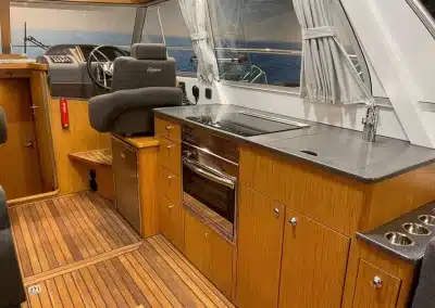 De nieuwe versie van de Saga heeft een nog fraaiere afwerking dan de voorgaande modellen. Het dashboard is ergonomisch gevormd en er is ruim voldoende plaats voor een volledige navigatie. De kuip is in directe verbinding met de salon. U kunt dit schip als een ergonomisch concept beschouwen. Dergelijke details vindt u ook aan dek zoals bijvoorbeeld een hoge railing.