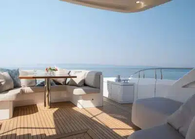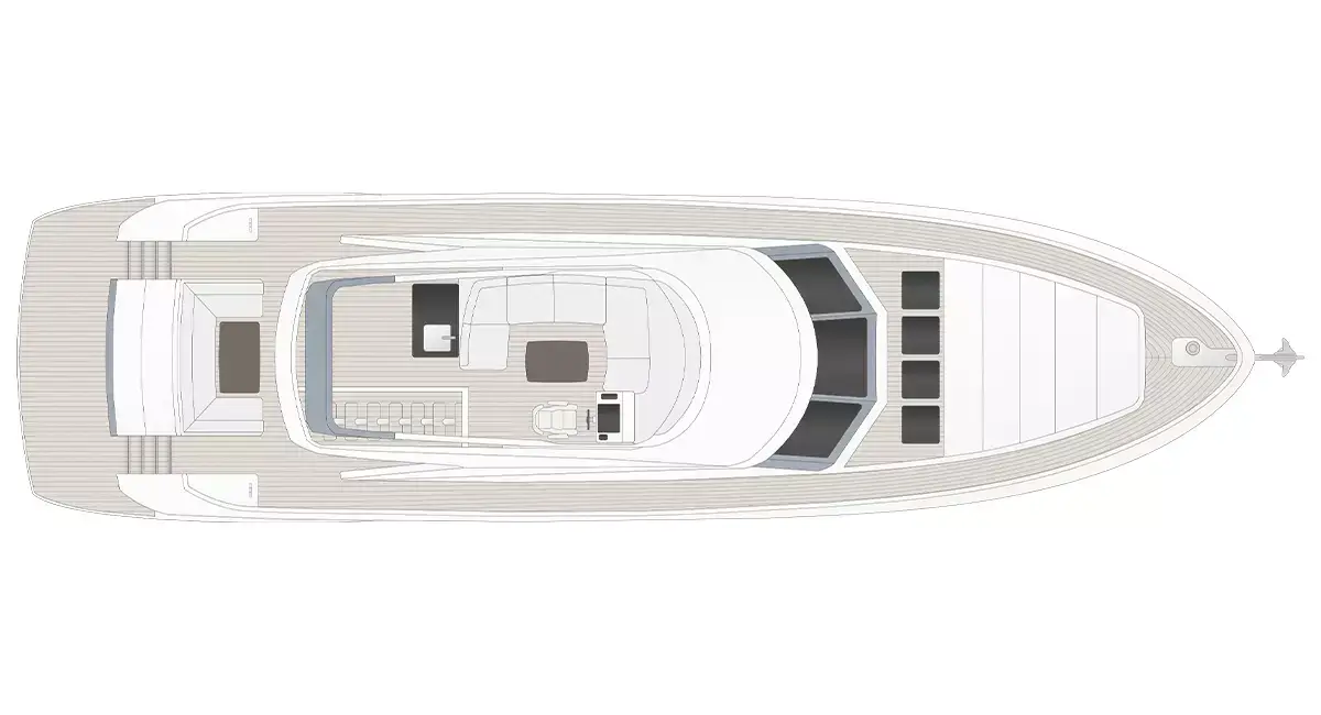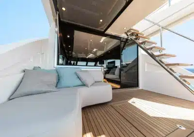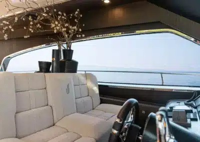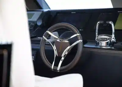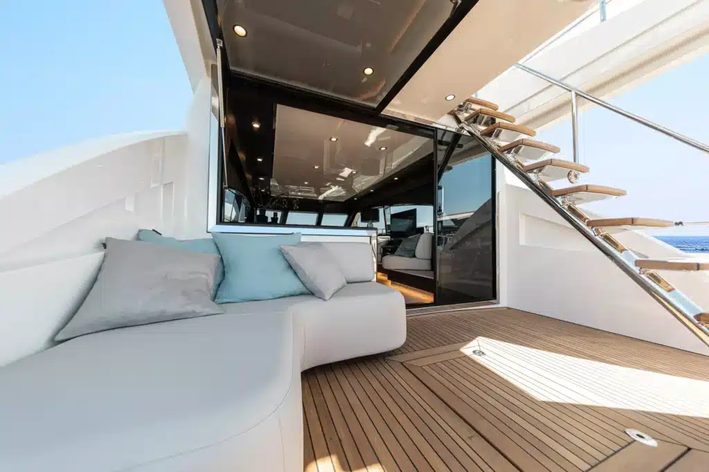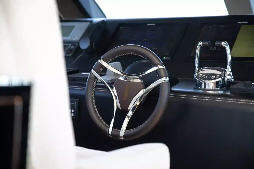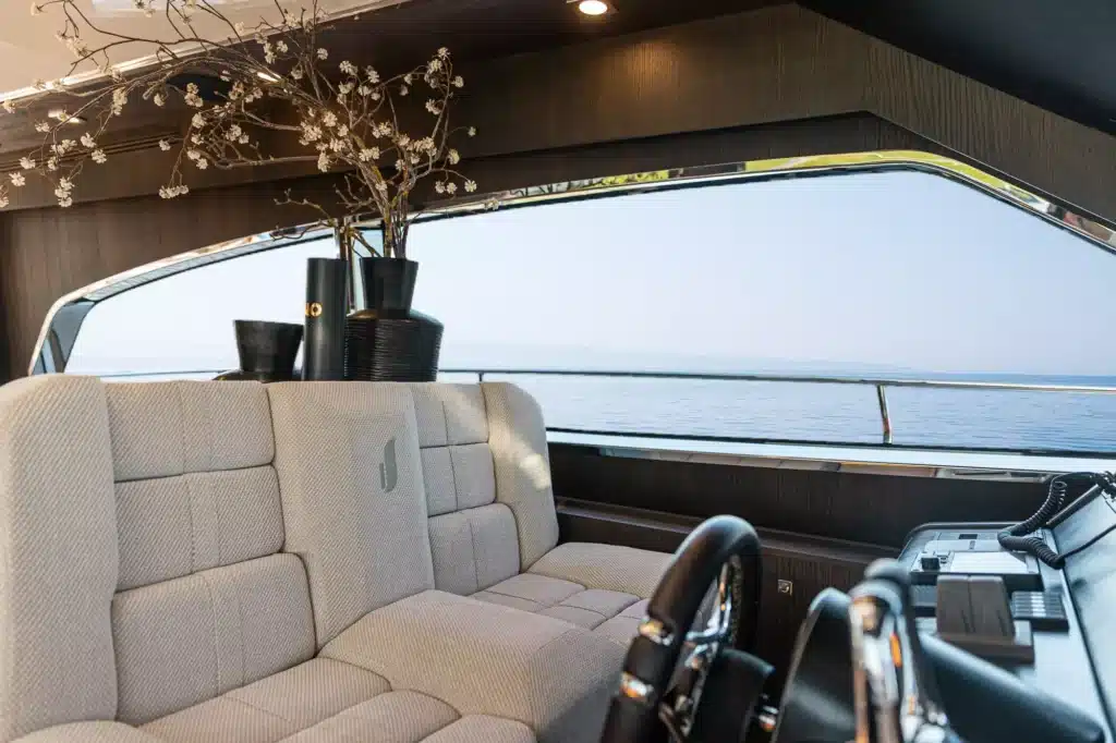 Een flybridge met besturing en een aparte kapiteinshut verzekeren zowel topservice als privacy.