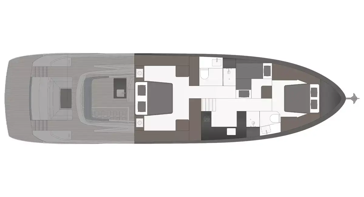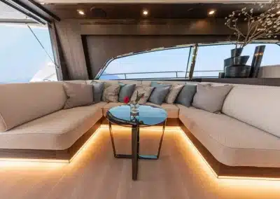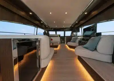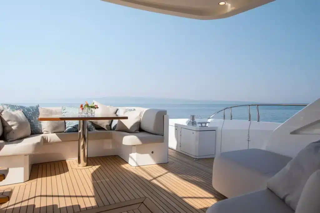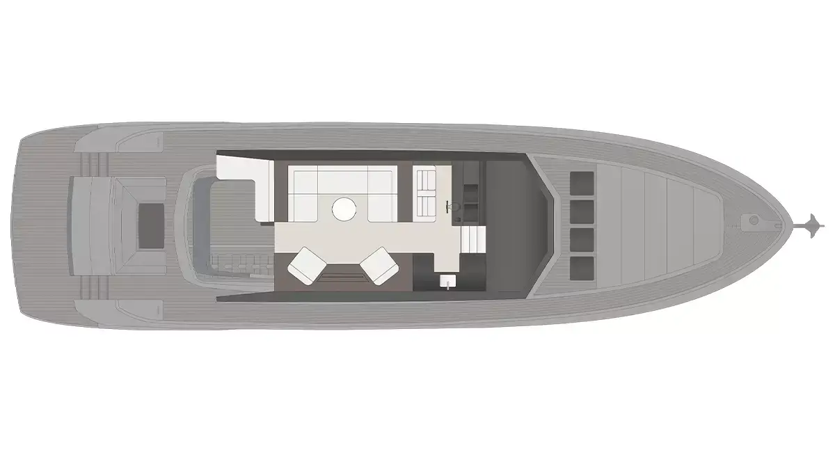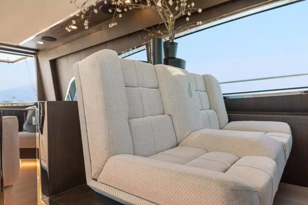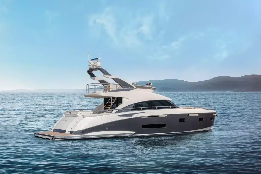 Een flybridge met besturing en een aparte kapiteinshut verzekeren zowel topservice als privacy.