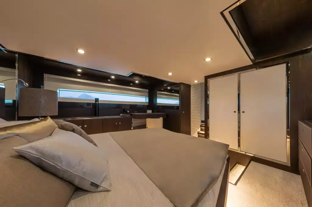 Tot zes gasten kunnen overnachten in twee grote slaapkamers en een hut met twee bedden. Het jacht kan maximaal 14 gasten ontvangen.