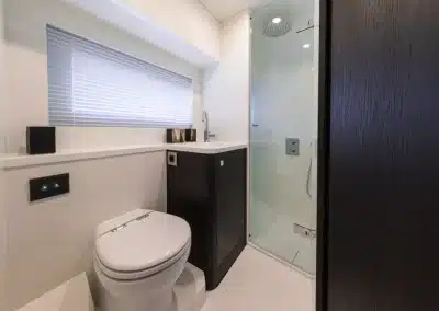Of het nu de joystickbesturing is die het jacht gemakkelijk en leuk maakt om te navigeren, de luchtcompressor aan boord om speelgoed en uitrusting op te blazen, of de privéruimte om u onderdeks op te frissen voordat u aan land gaat.