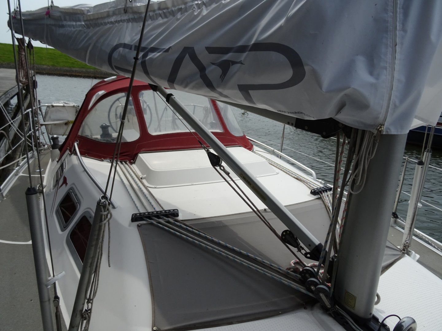 Rodkicker, spinakerboom, de zeilen zijn in nieuwstaat.