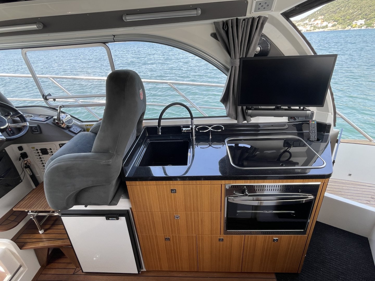 Uitrusting onder andere: Yanmar optimalisatie software tot 380 pk (controle unit) Roestvrij stalen anker Jambo 22 kg in gepolijst roestvrij staal incl. nieuwe fenders met textielhoezen. Nieuwe 16mm loodlijn 50m met markering (van werf slechts 13 mm). Volledig nieuwe generator sinds 2022 Paguro 4SY. Nieuwe 10000 BTU airconditioning voor salon, boegcabine en achterkajuit 2022. Hydraulisch gangboord sinds 2022. Hoogwaardige verwijderbare davits voor tender tot 150 kg. Achteruitkijkcamera met nachtzichtfunctie. Zoeklicht kan worden gedraaid en gekanteld met afstandsbediening. Nieuwe Simrad NSS3 12-inch plotter met spiegeling via Simrad APP op mobiele telefoon of iPad. Groot NMEA2000 netwerk W-LAN netwerk met 5G en W-LAN antenne.