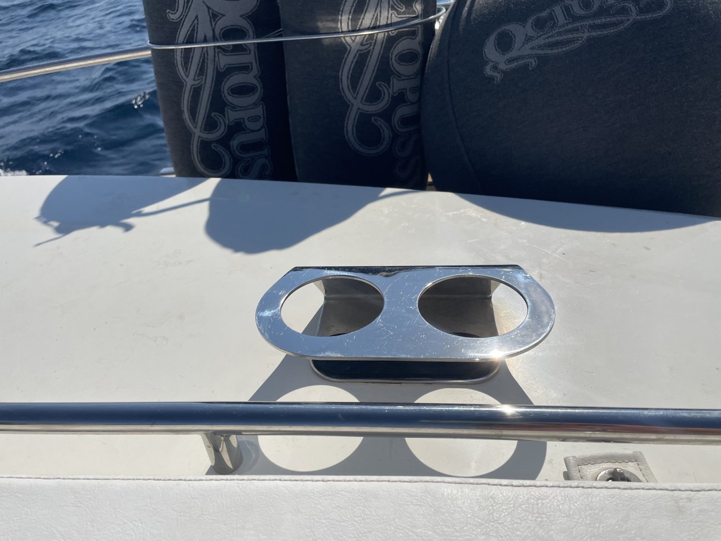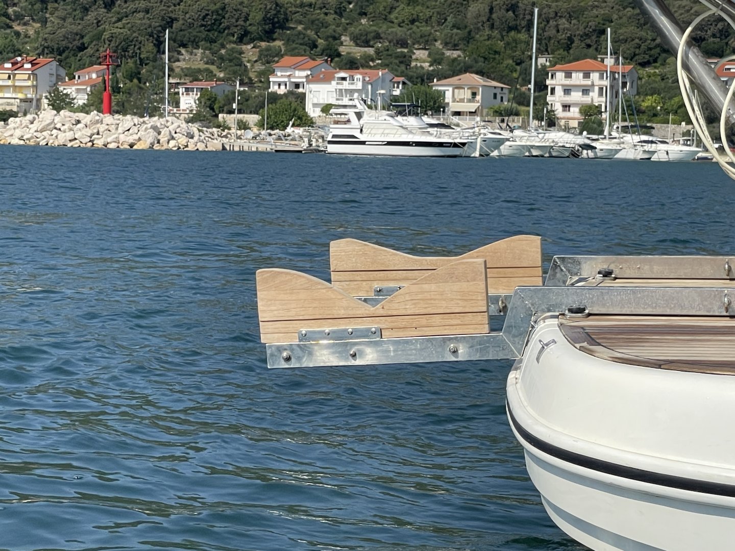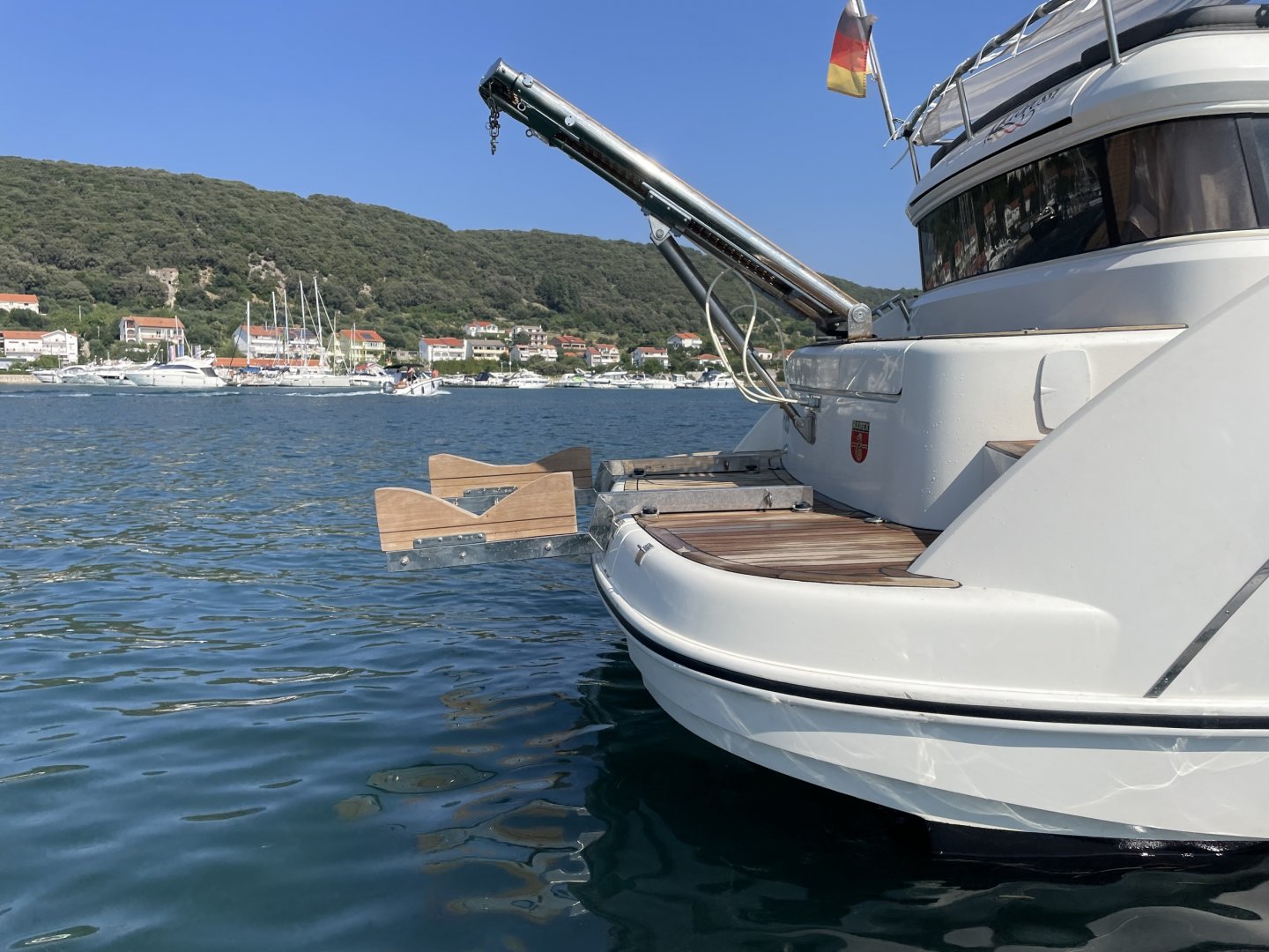 Dubbele zeerailing, zoeklicht zwekbaar/kantelbaar en met afstandbediening, rvs ophangsysteem voor bijboot tot 150 kg, hydrualische loopplank nieuw ingebouwd in 2022, onderwaterverlichting.