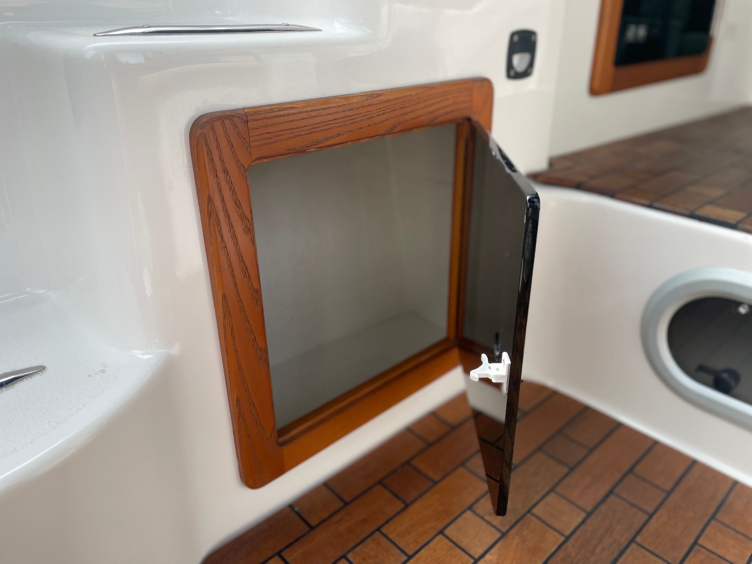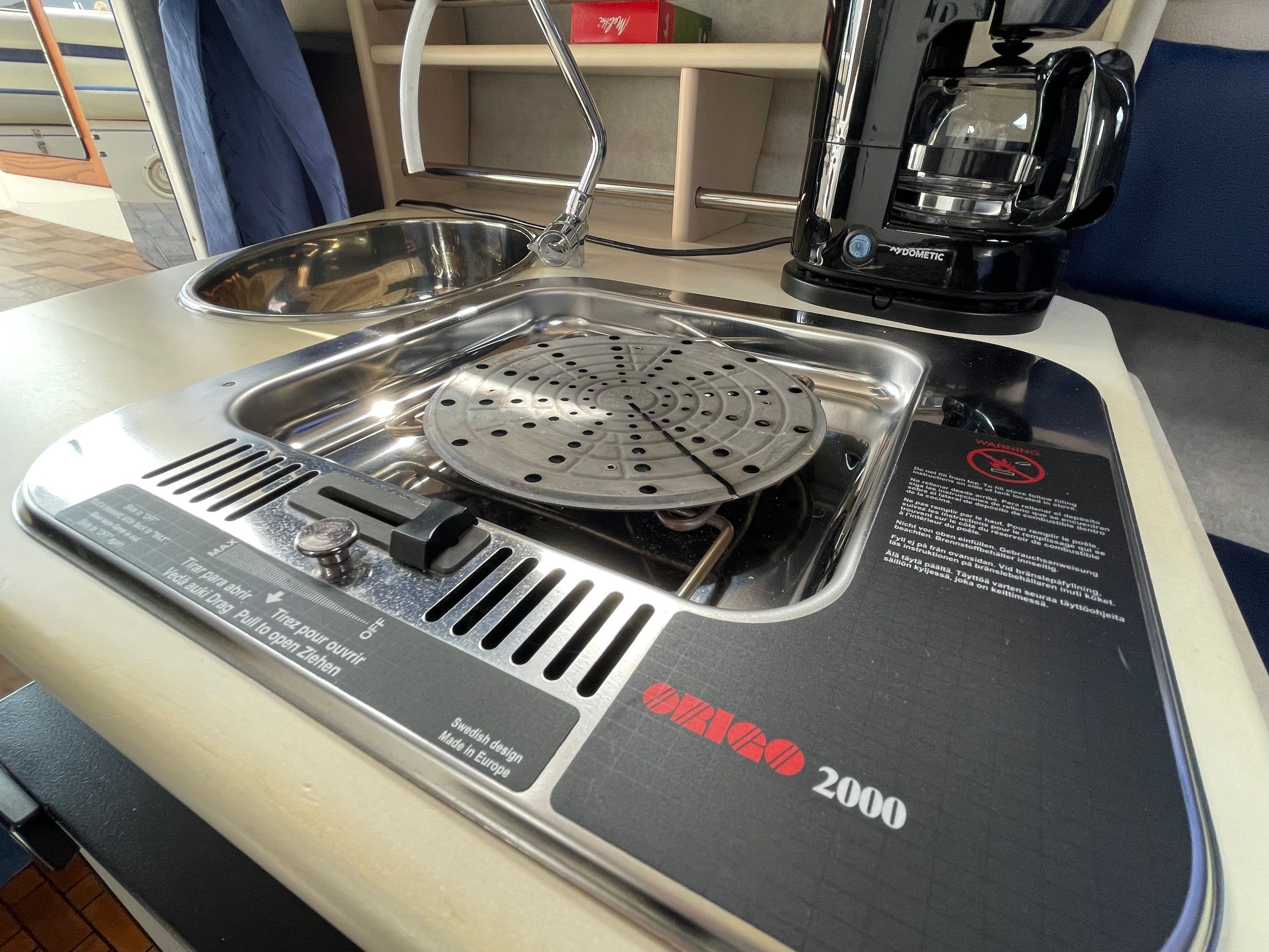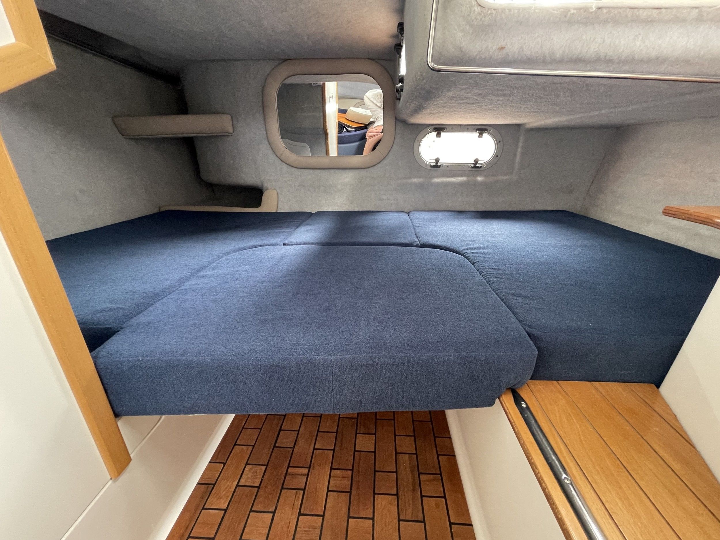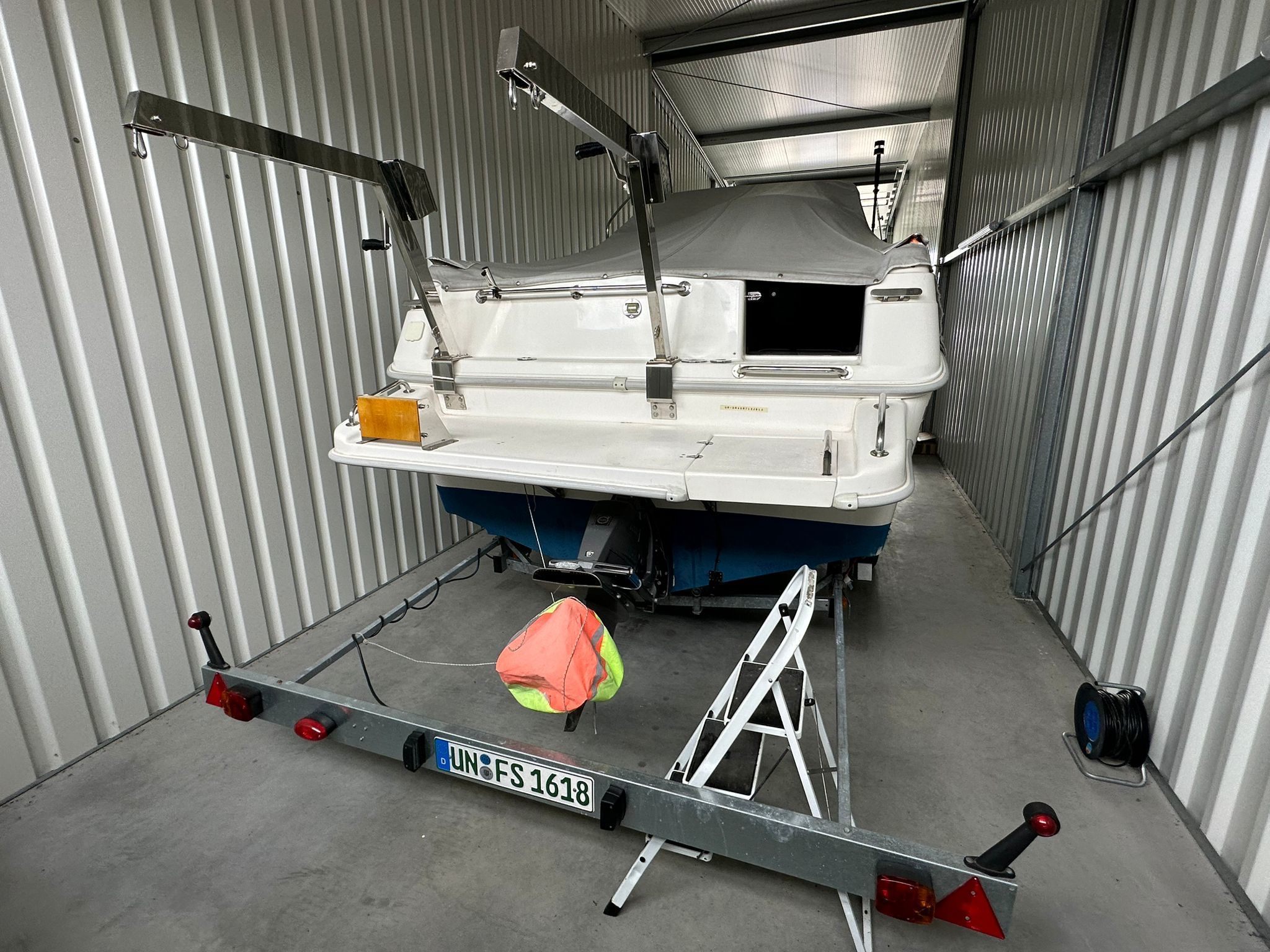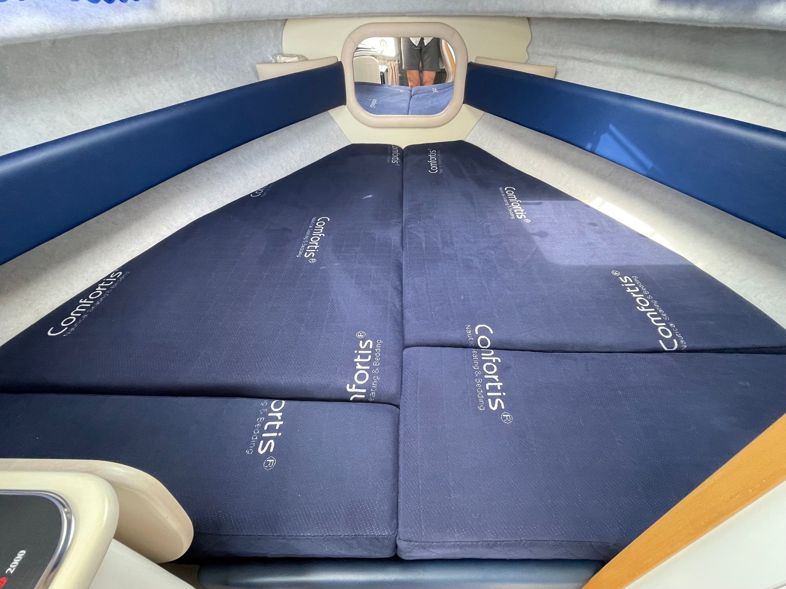 Transportzeil, handgreep over het kajuitdak VA, teakdek voor kuip en kajuit, drank- en flessenhouder, binnenverlichting in kuip en kajuit, veel bergruimte met kleppen of hoezen, verhoogde VA-zeerailing, 2 opklapbare VA-middenkikkers. Ladder voor luik en beugel, 2 fenderkorven VA voor. Speciale handgreep voor uitstappen met extra opstap linksbuiten.